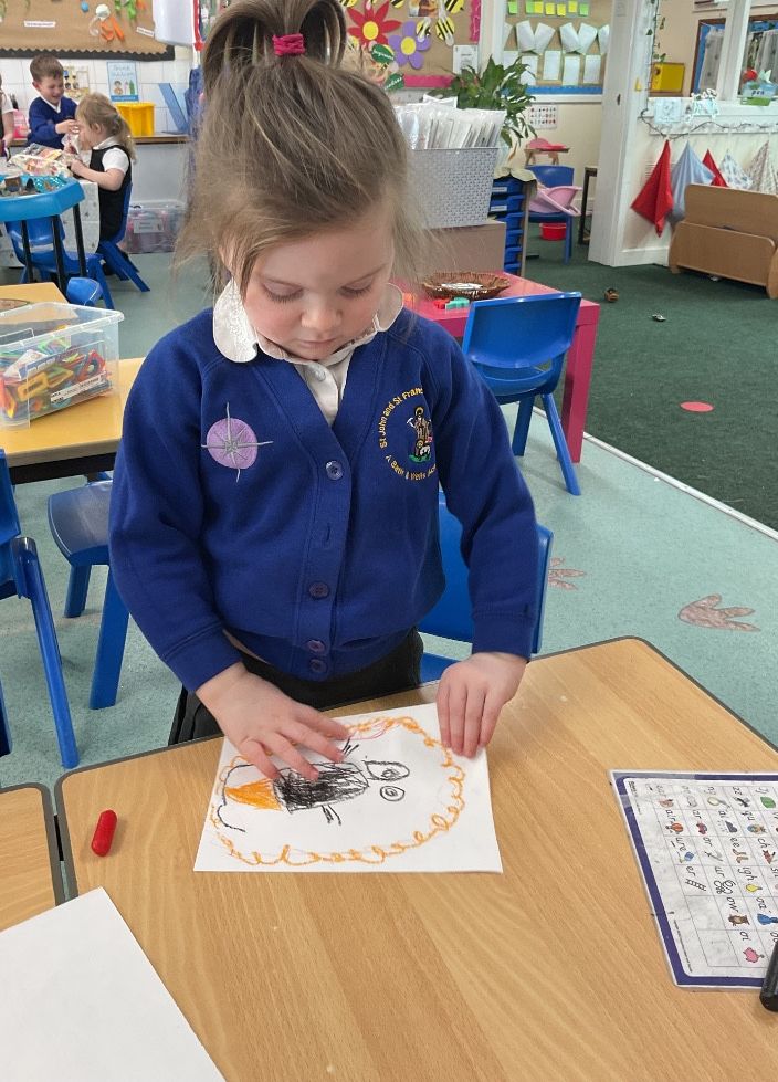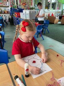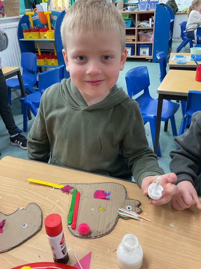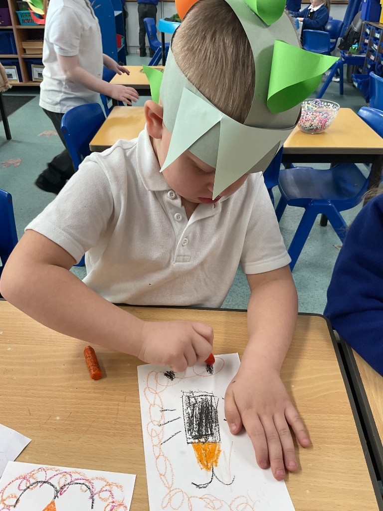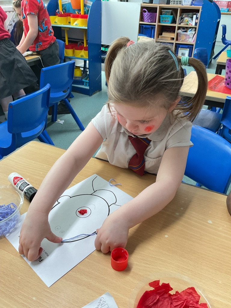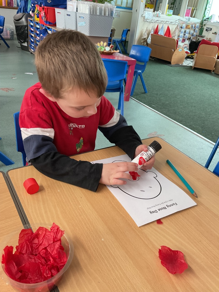 For Red Nose Day, the children enjoyed creating their own funny faces. They carefully added eyes, a bright red nose, and a mouth, then used colourful wool to design the hair. It was lovely to see their creativity and individual choices—some children added lots of vibrant hair, while others decided their funny face would be bald, choosing instead to include features such as a beard or moustache. The children were very engaged and took pride in their unique creations. What a giggle!