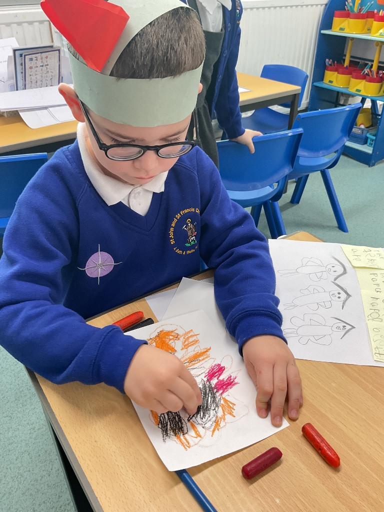 We have been thinking about how different emotions make our body feel and how it might change, for example, having a light fluttery feeling when we are excited or a hot and heavy feeling when we are angry.