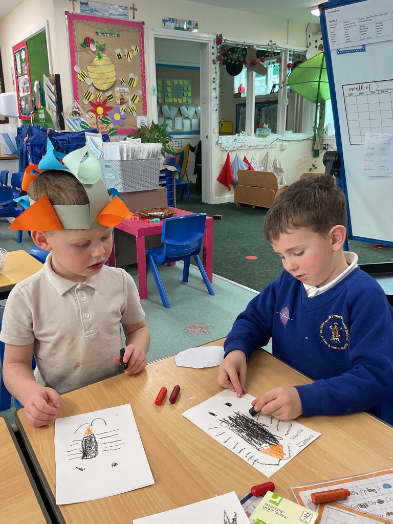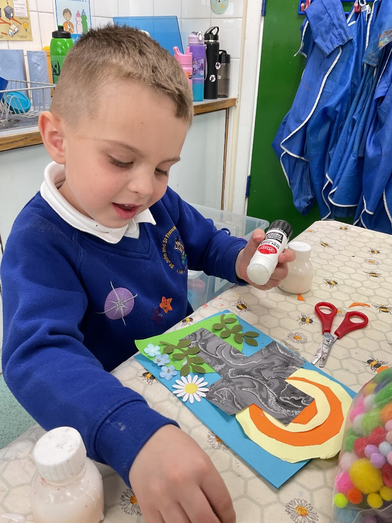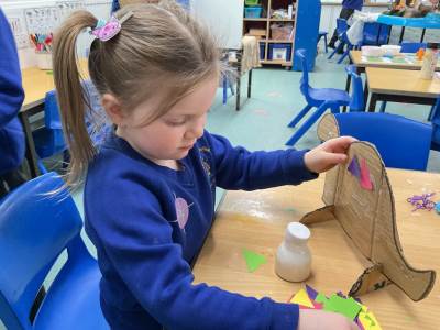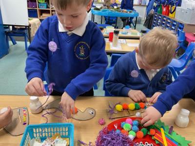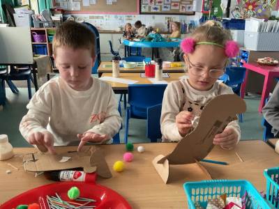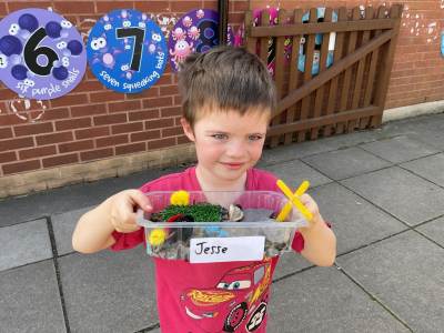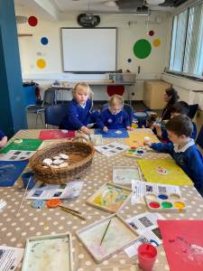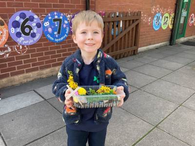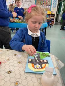 This morning we were very busy making our Easter gardens. We started by revisiting the Easter Story and then discussing what we would include in our garden so it would help us retell the story. Lots of us used soil in the base of our trays and then placed plant pots to represent the tomb and pebbles to represent the path leading to the tomb. Some of us placed crosses in our gardens as we knew that this symbolises Jesus, and spring flowers as we have learnt that Spring is a sign that Easter is on its way.