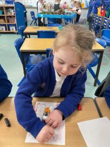 The children designed their very own Easter or spring celebration card. Each card is different and all of them look fantastic, whether a chick, bunny, egg or Easter cross. The children also wrote their own message inside, using their phonics to spell independently where possible. I’m sure they will have pride of place in your homes.