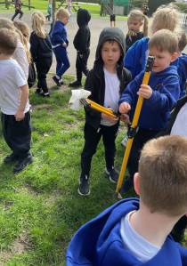 The children then went outside equipped with litter pickers to help tidy our school environment. They showed great enthusiasm and a strong sense of responsibility as they worked together to collect rubbish. Many children commented on how much cleaner the area looked afterwards and expressed pride in making a positive difference.
