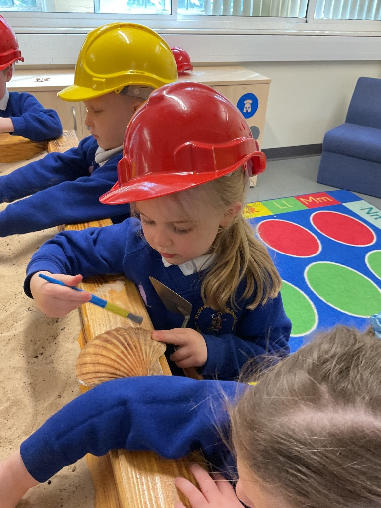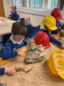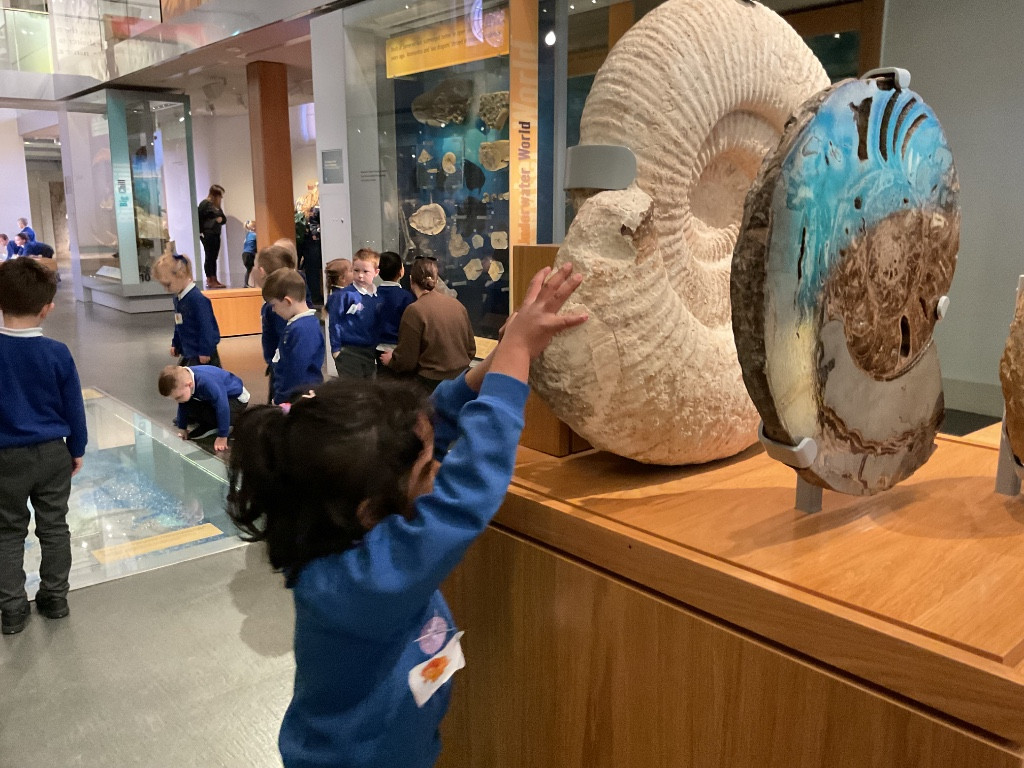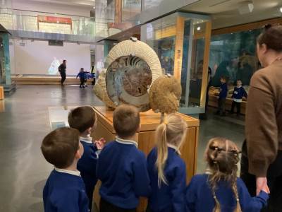 We have had a wonderful day visiting the museum, as a finale to our dinosaur topic. We found lots of different fossils as well as other artefacts such as old coins, swords, skeletons, stone sculptures from a church, an old fire engine and old bicycles, as well as much more! We also had the opportunity to take part in some workshops where we became palaeontologists, digging for fossils, and painted our own ammonite.