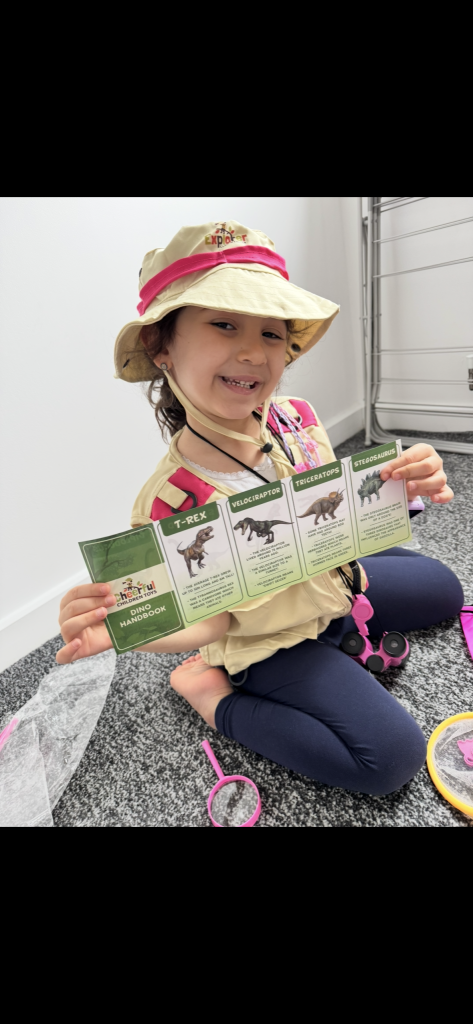 We quickly put on our detective hats and began investigating. The children carefully inspected the clues, looking closely at the footprints, the scattered resources, and the strange signs that something (or someone!) had visited us. After lots of discussion and some fantastic predicting, we came to an exciting conclusion… we think a dinosaur has been in our school!
