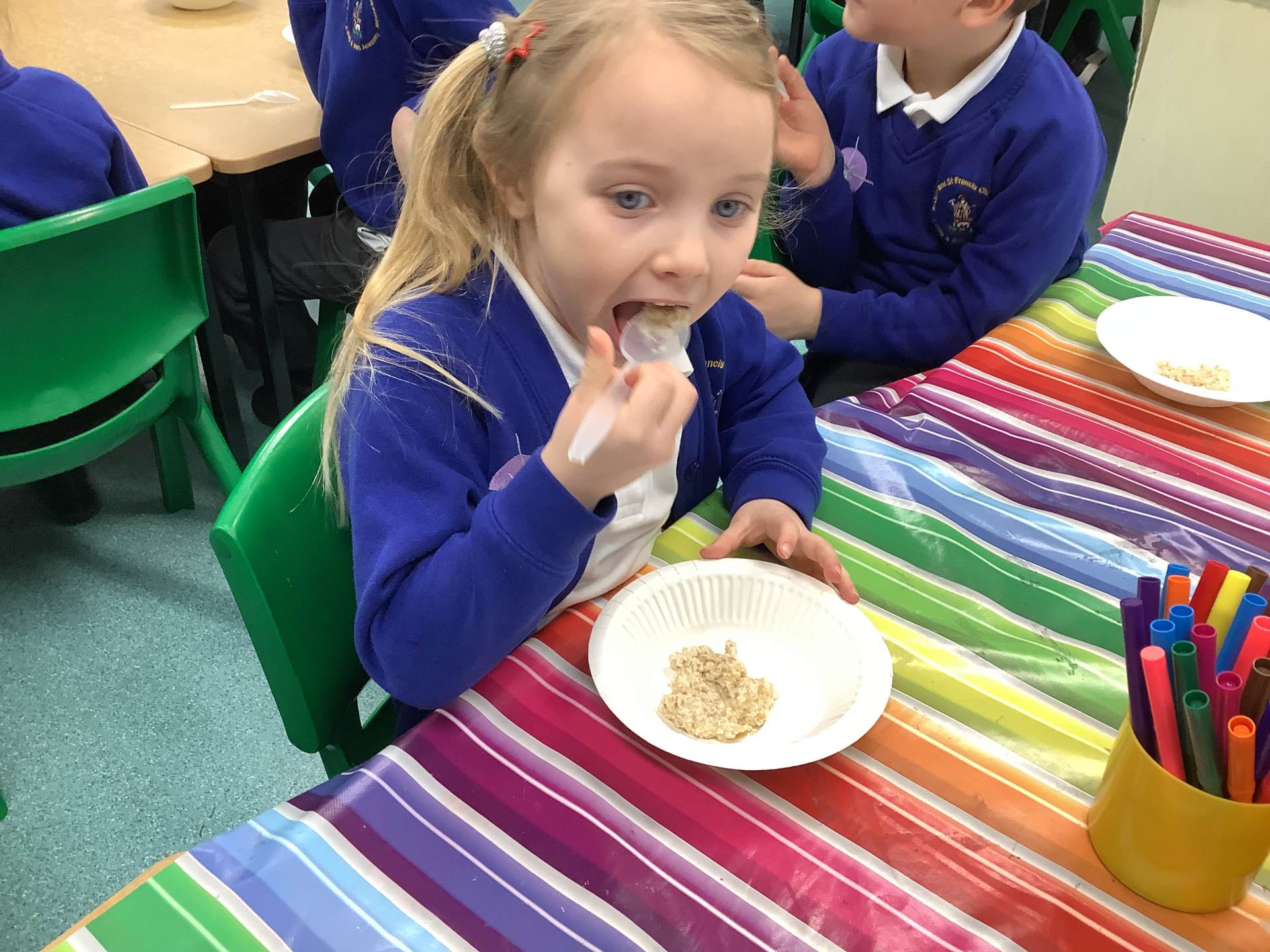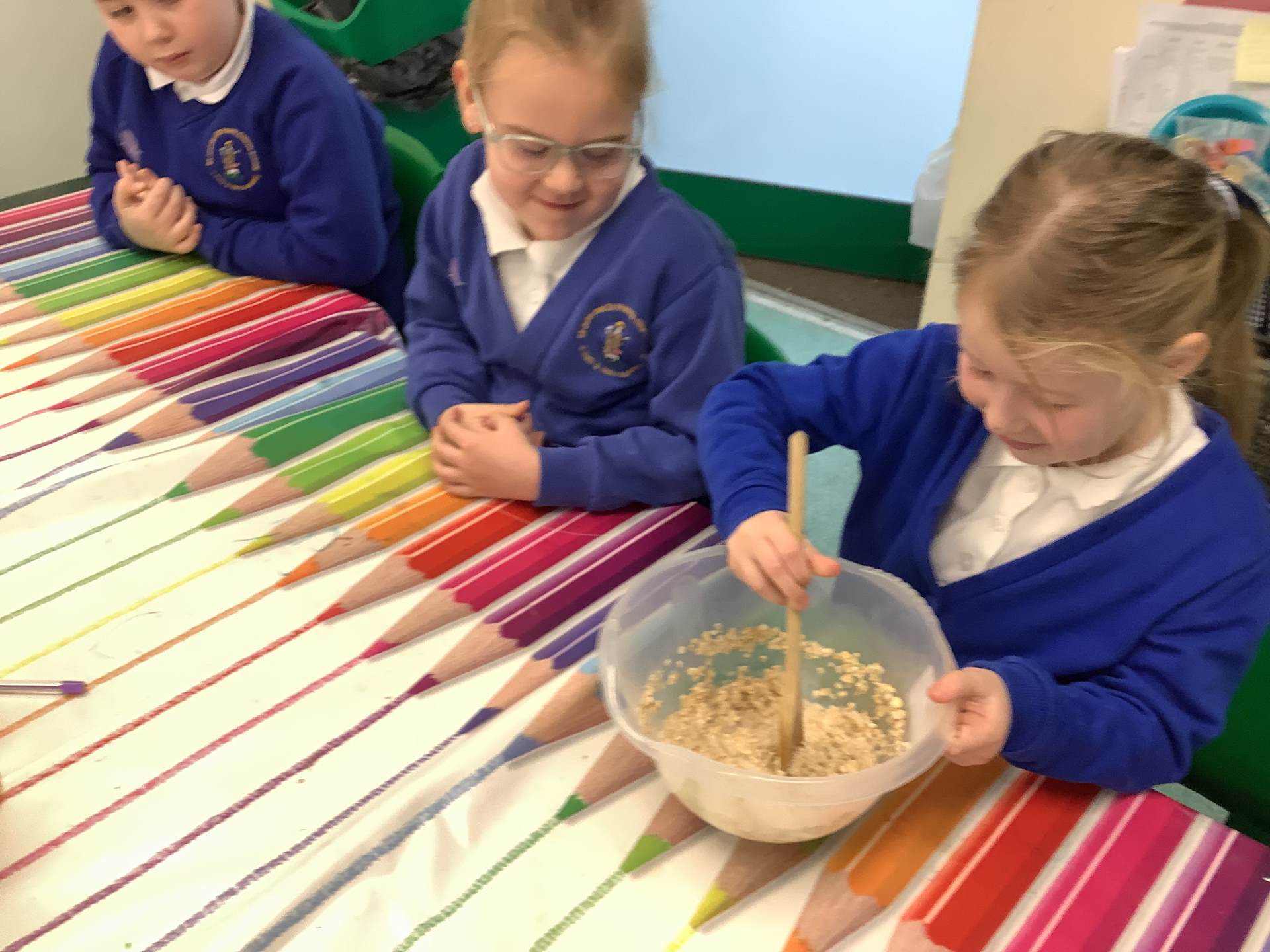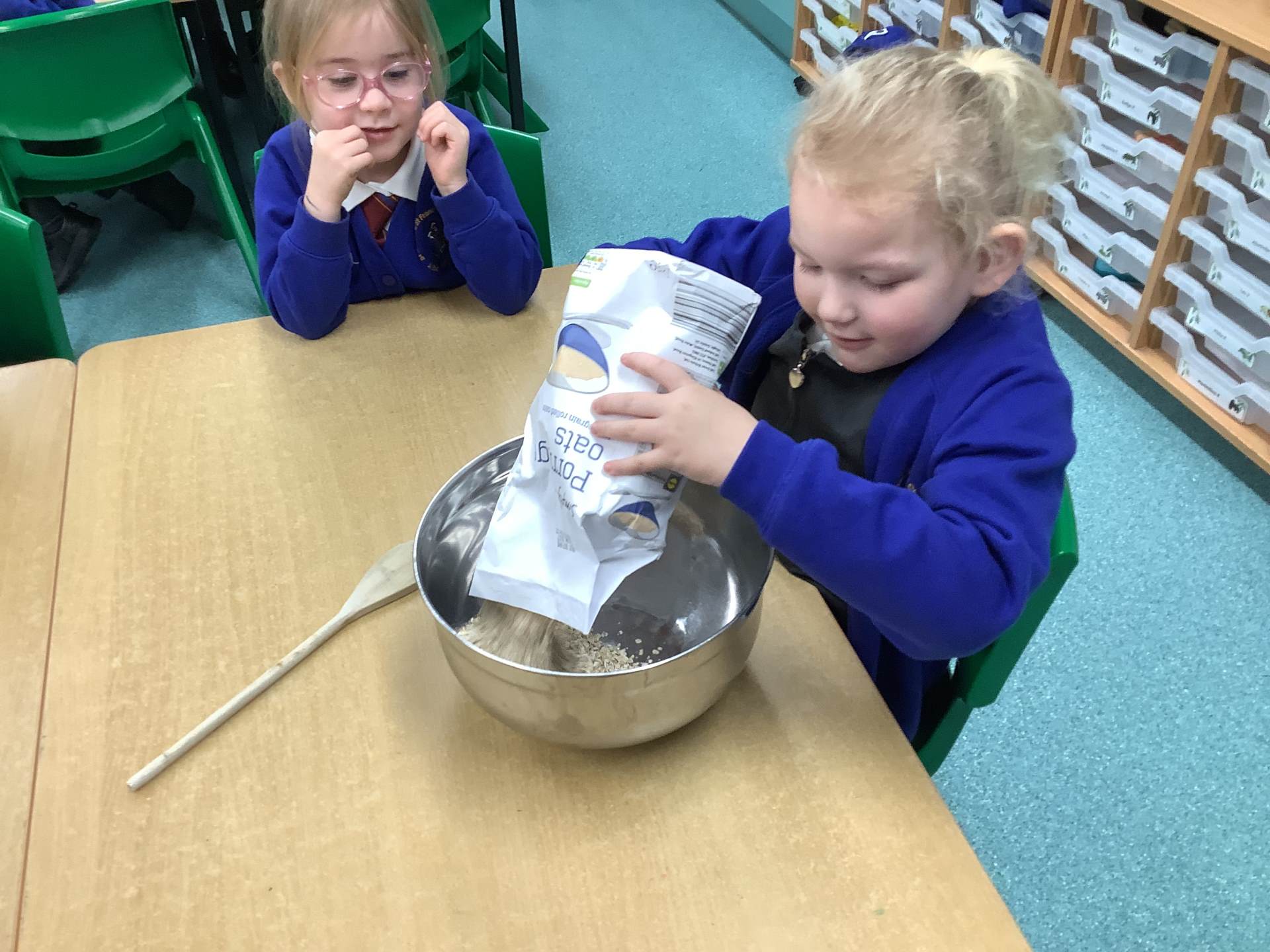 The children worked in groups to create their porridge. They even got to taste it at the end!
