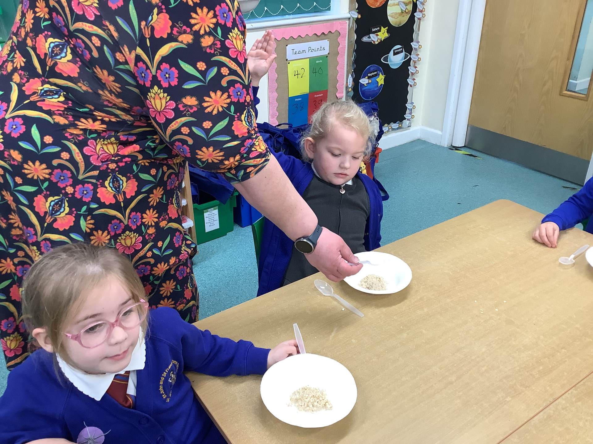 Today Sparrow and Blackbird Class made porridge! The children were able to follow and explain the instructions step by step. We read the instructions together and added sign and gesture to support our retelling. We discussed the layout of an instruction text and discussed why they are important.