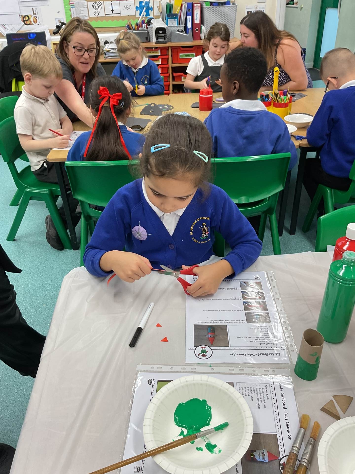 As part of our Oracy focus we have been looking at character descriptions across the school. In year 1 we focussed on George the giant in the story of The Smartest Giant in Town. We either described George before he got his lovely new smart clothes or after when he was really proud of how he looked. Today we worked across KS1 and EYFS and had the chance to read our descriptions to the other children and to see if they could guess which George we were describing. We also had the chance to listen to EYFS's descriptions of different dinosaurs and Year 2's descriptions of either a goat or a troll from the story- The Three Billy Goats Gruff. What a lovely time we had visiting differnt classes and working with different children.
