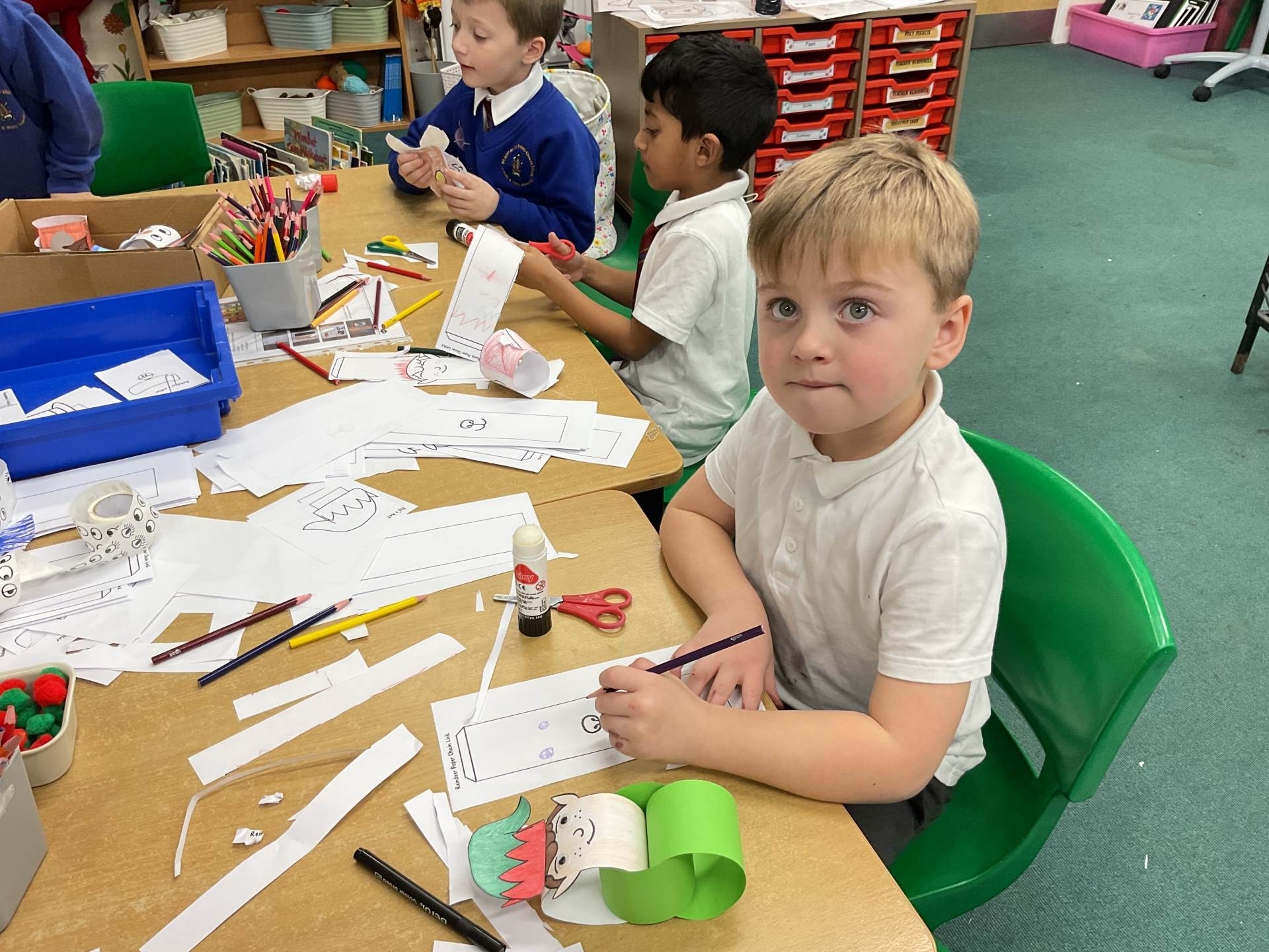 Today we listened to the story of Where the Wild Things Are. We then looked at some pictures of different cartoon monsters and agreed that a monster was quite unique and could have all kinds of different features. look at the fantastic monsters that we have created today using recyclable materials.
