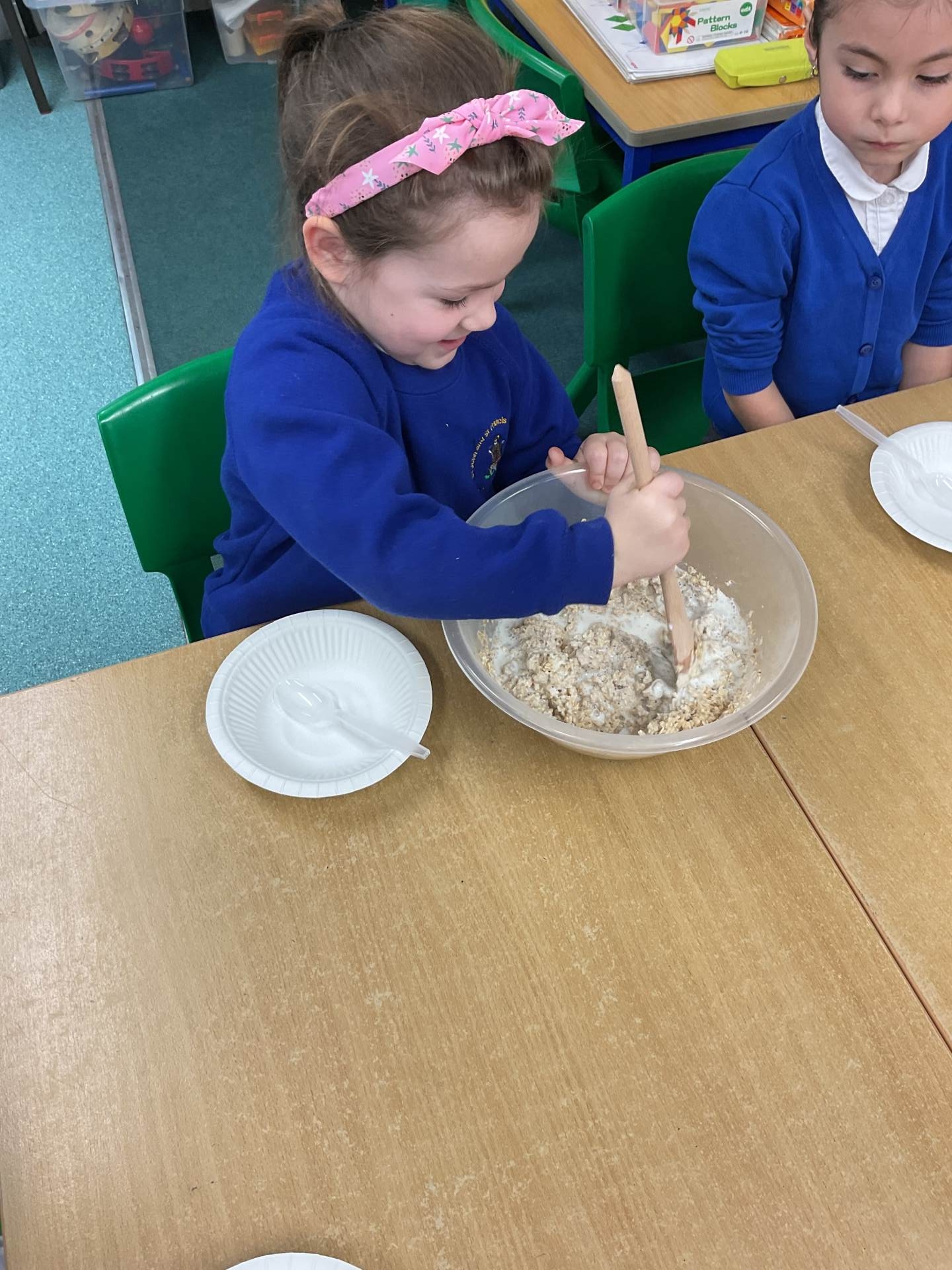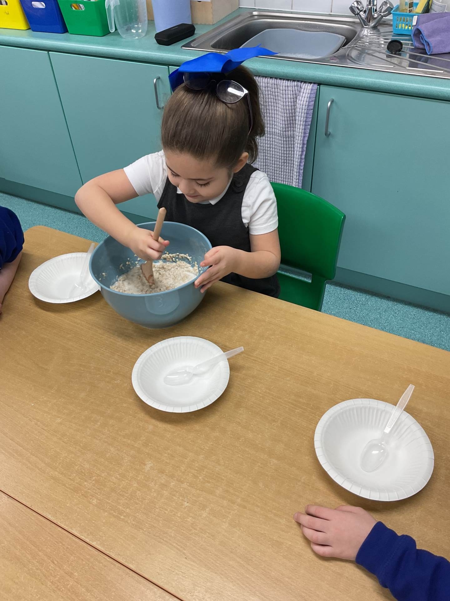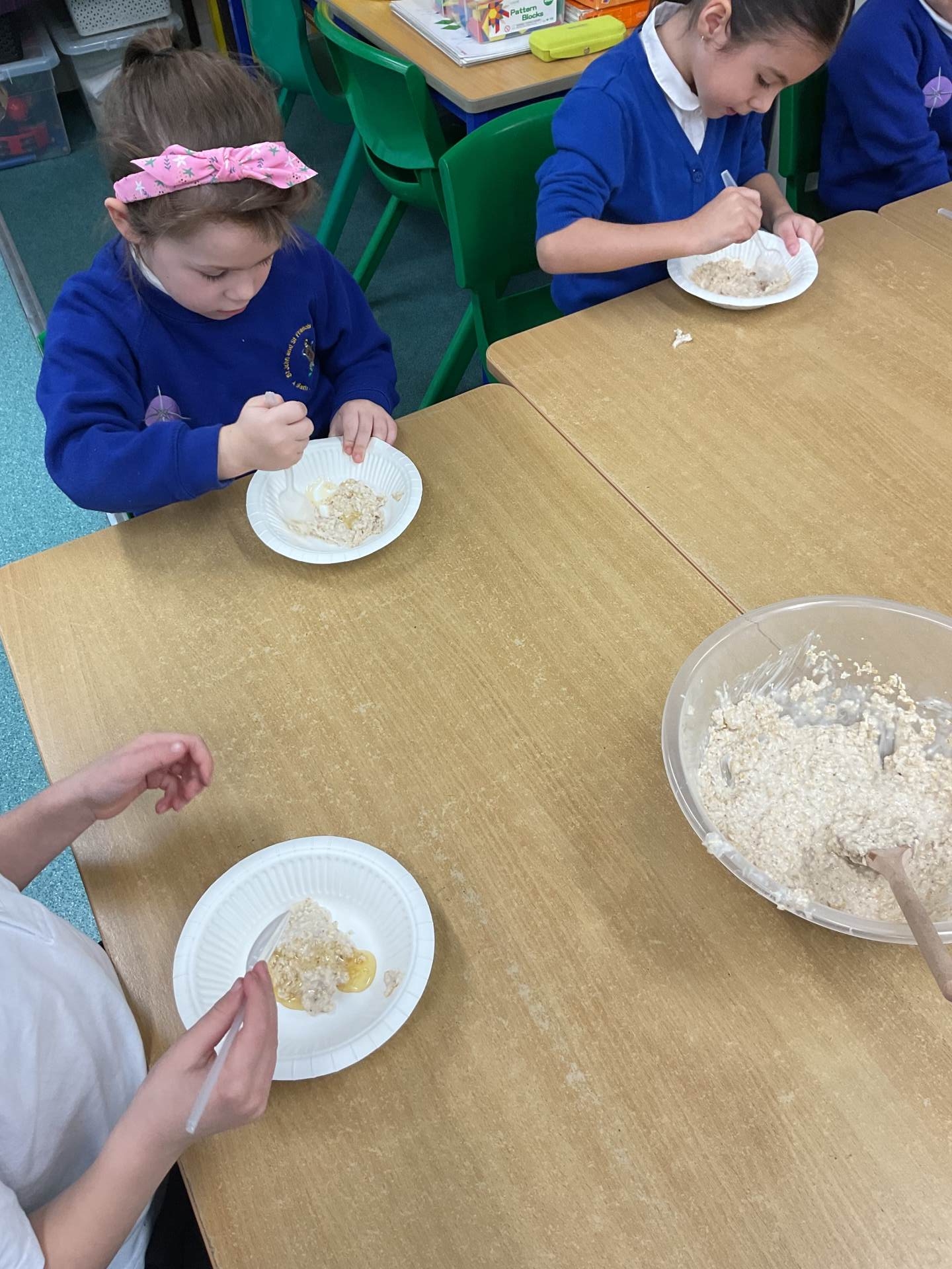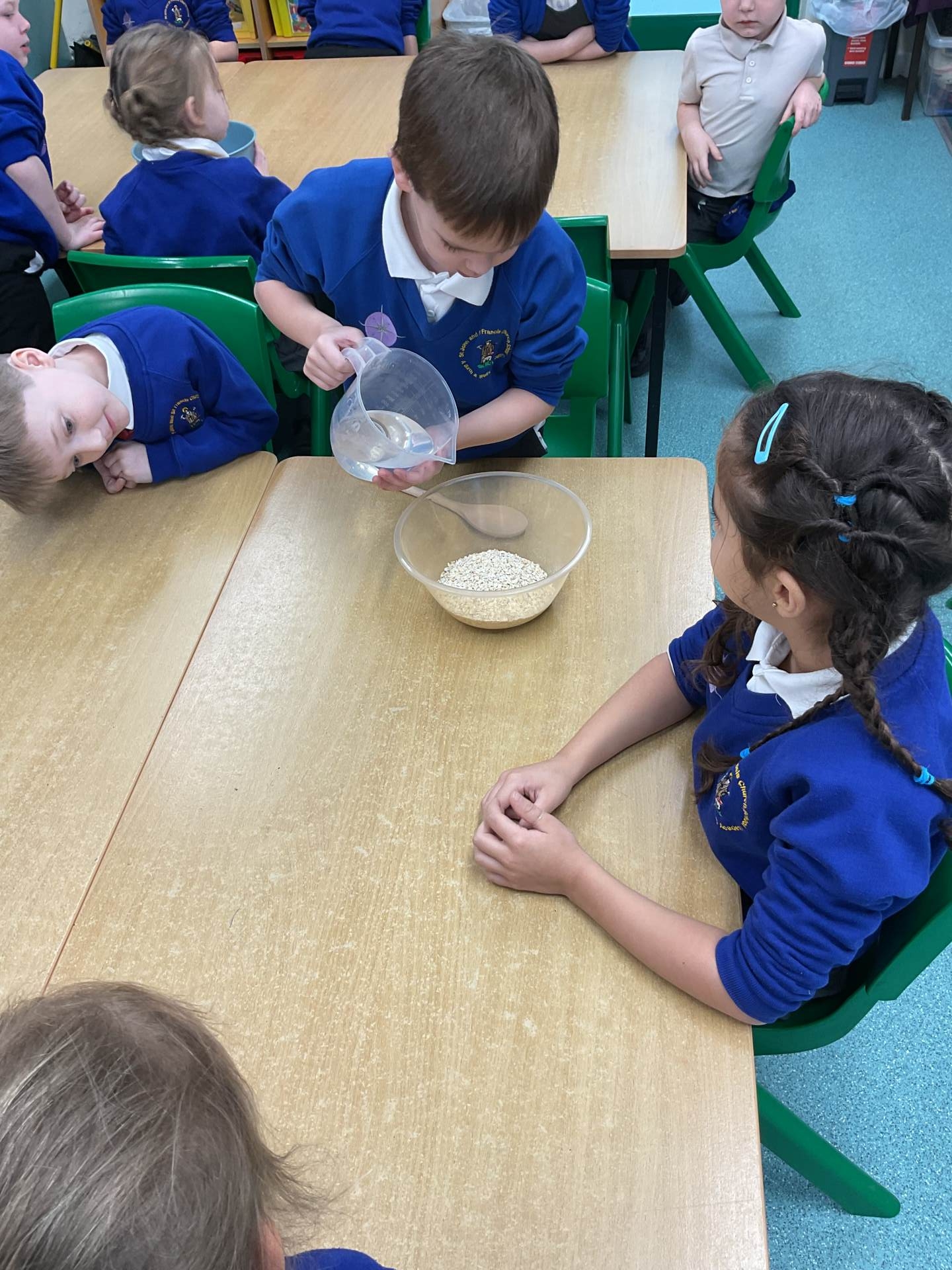 The children worked in groups to create their porridge. They even got to taste it at the end!