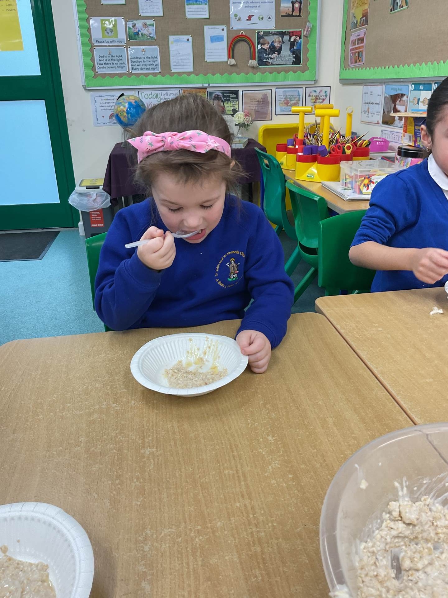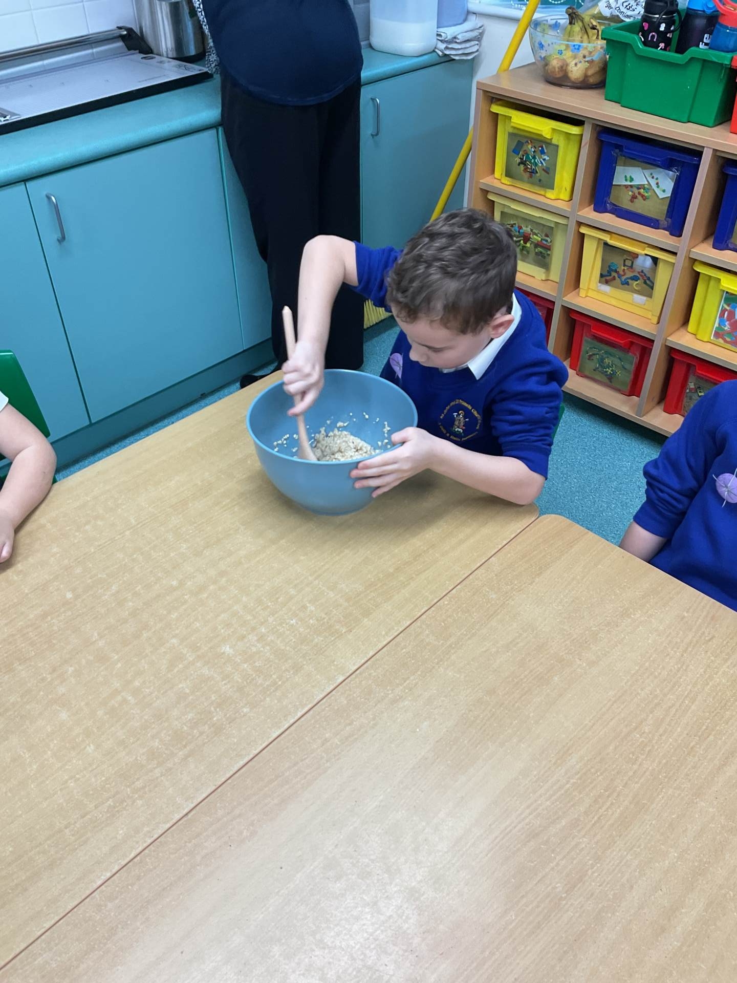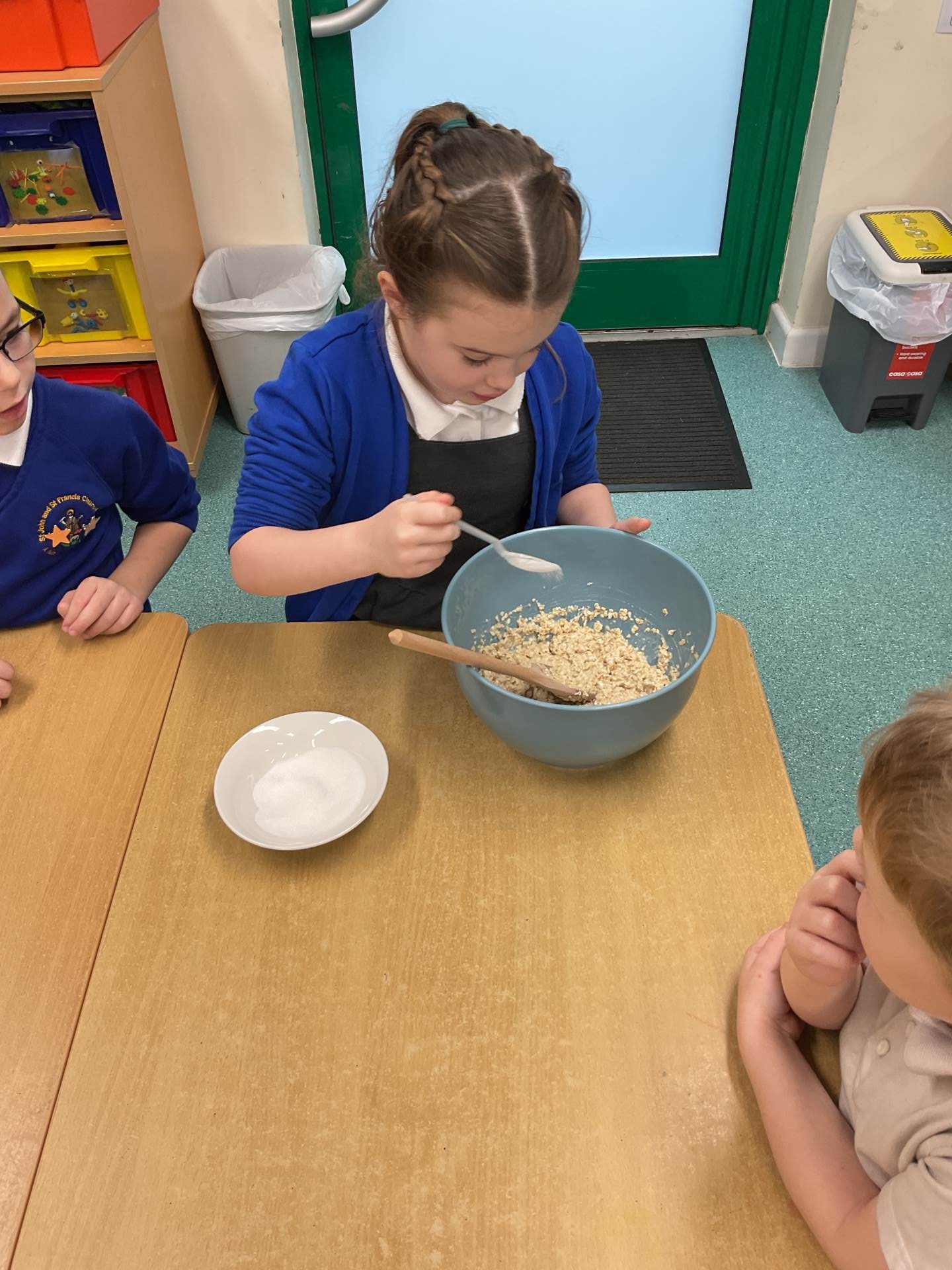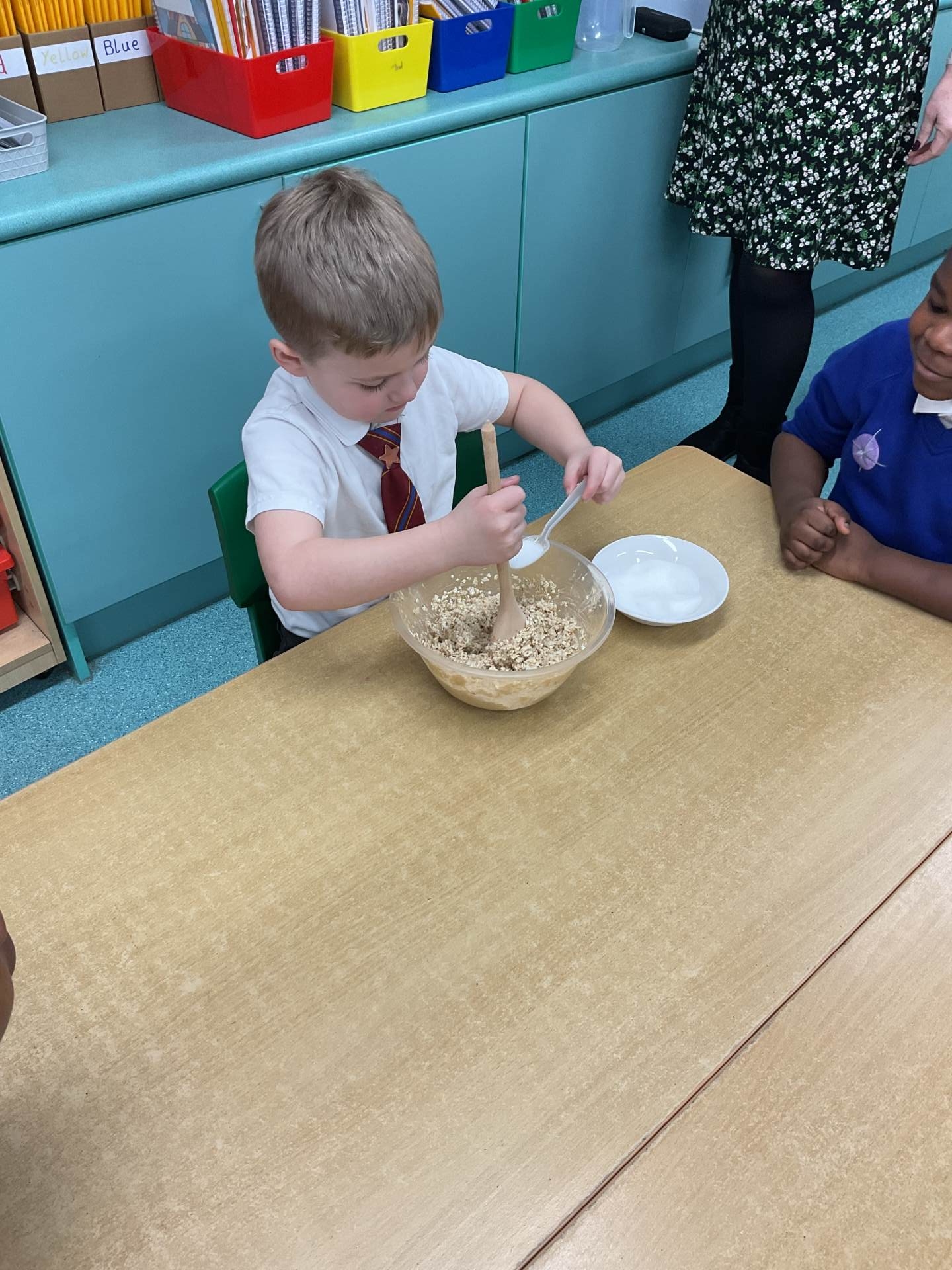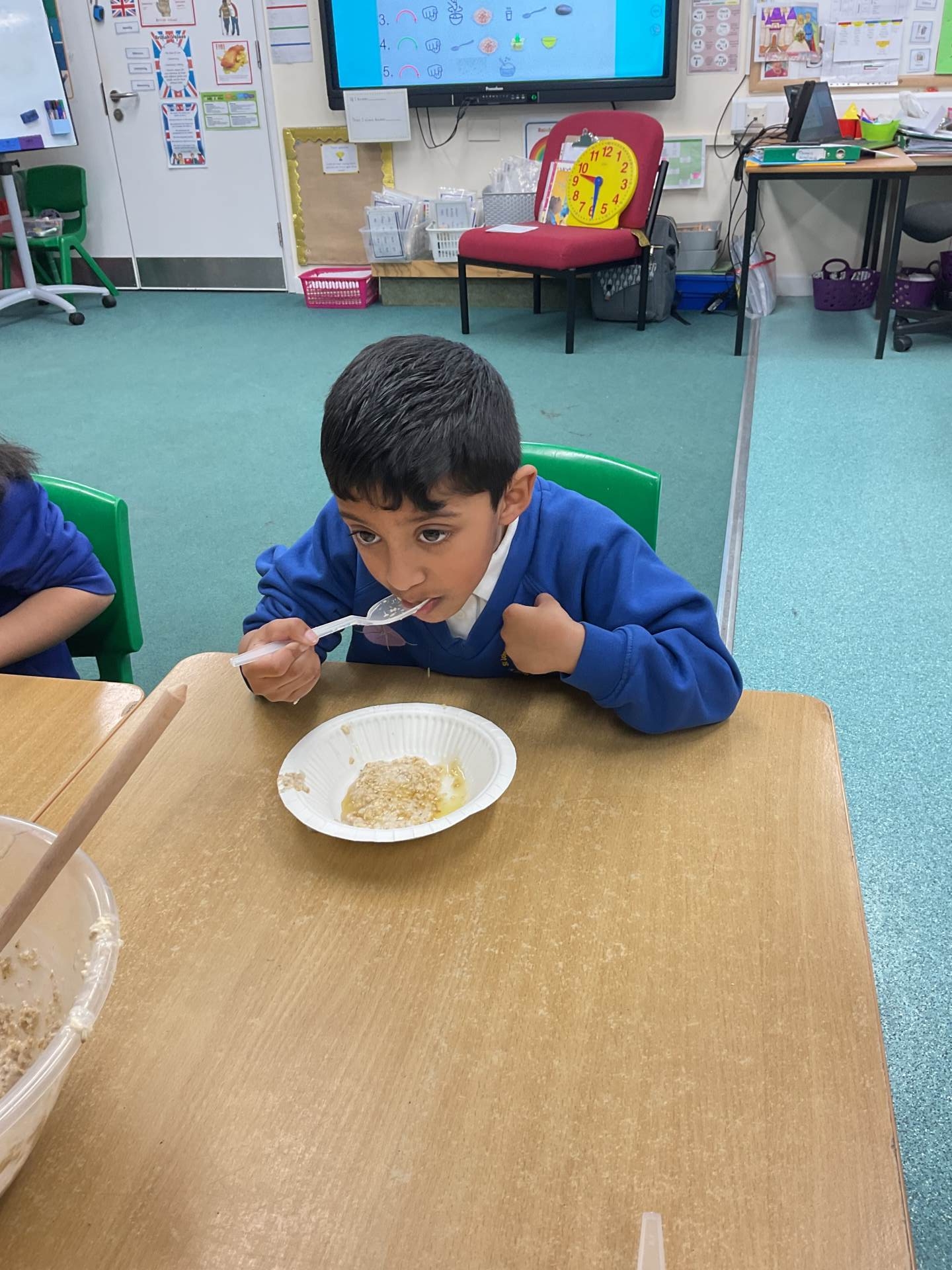 The children worked in groups to create their porridge. They even got to taste it at the end!