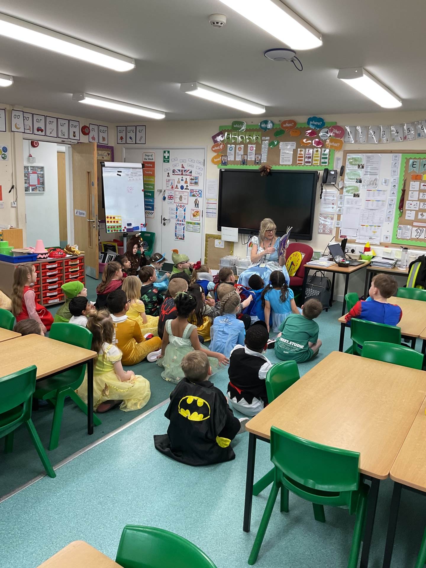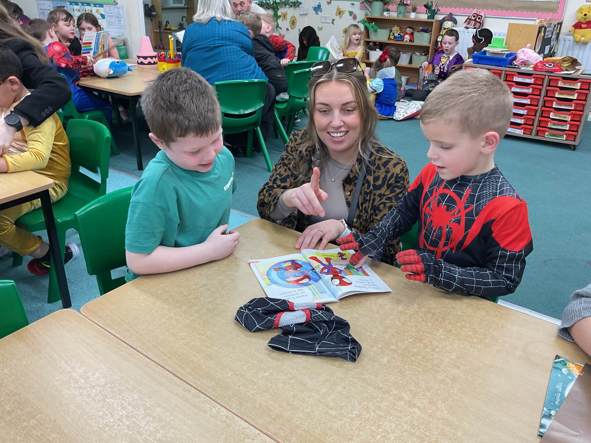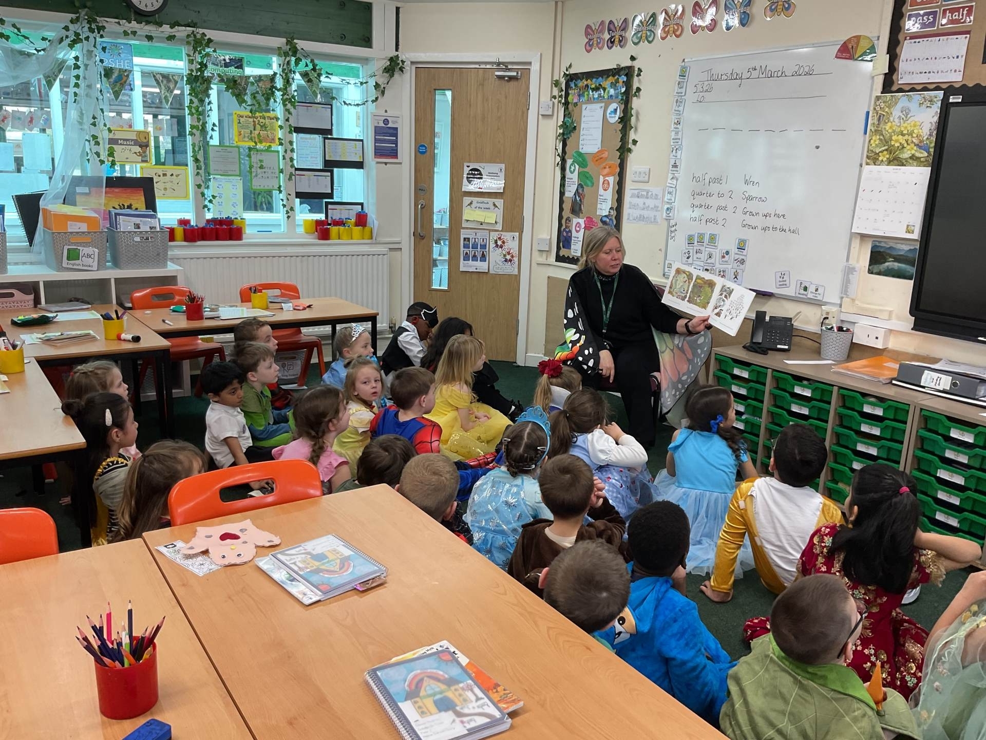 Here are some pictures of our amazing World Book Day. We have had a great day. We talked about our favourite stories and shared some of them in our own classes. We then went to other classes and had stories with other teachers. We even shared some of our favourite stories with some of our parents and family members who came into school. We do love stories in Sparrow class!