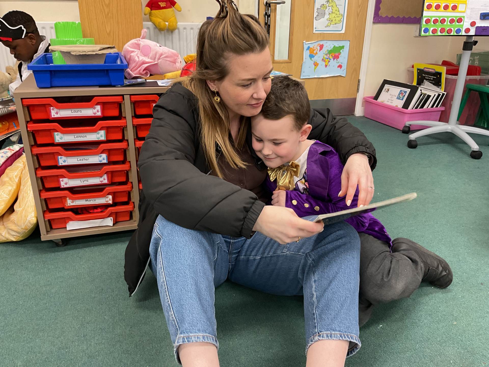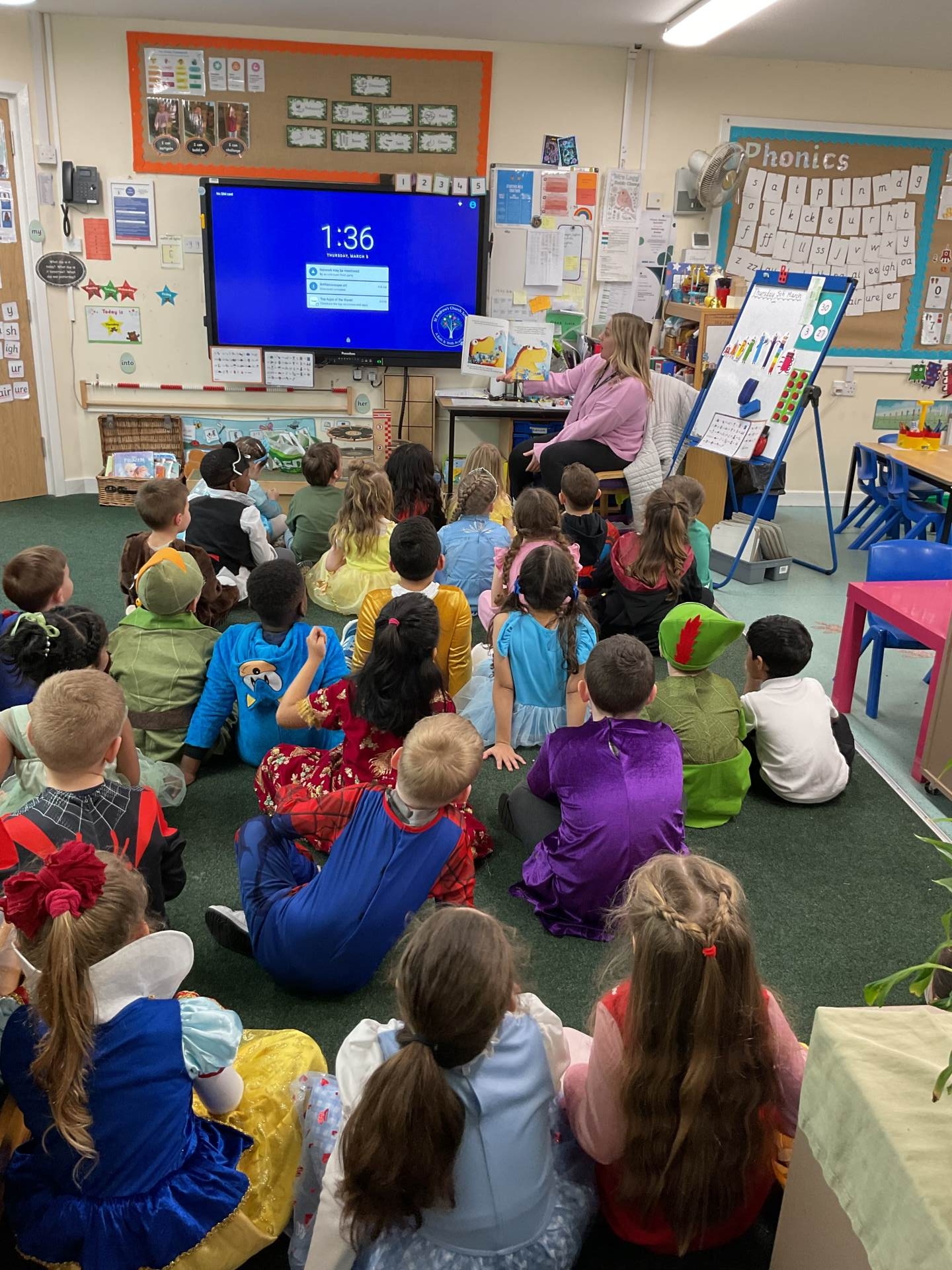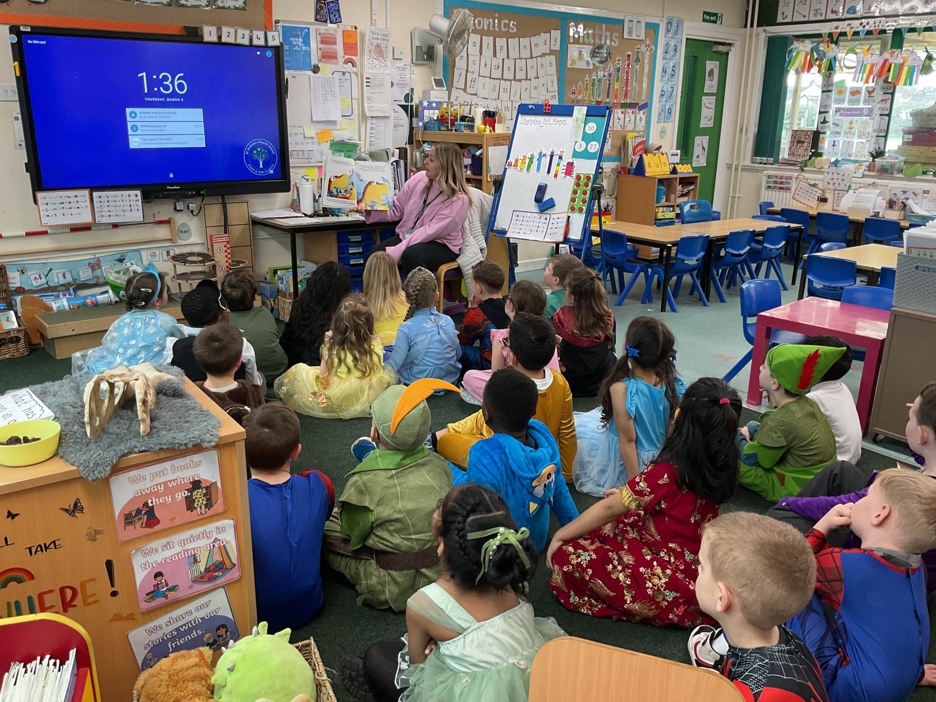 Here are some pictures of our amazing World Book Day. We have had a great day. We talked about our favourite stories and shared some of them in our own classes. We then went to other classes and had stories with other teachers. We even shared some of our favourite stories with some of our parents and family members who came into school. We do love stories in Sparrow class!