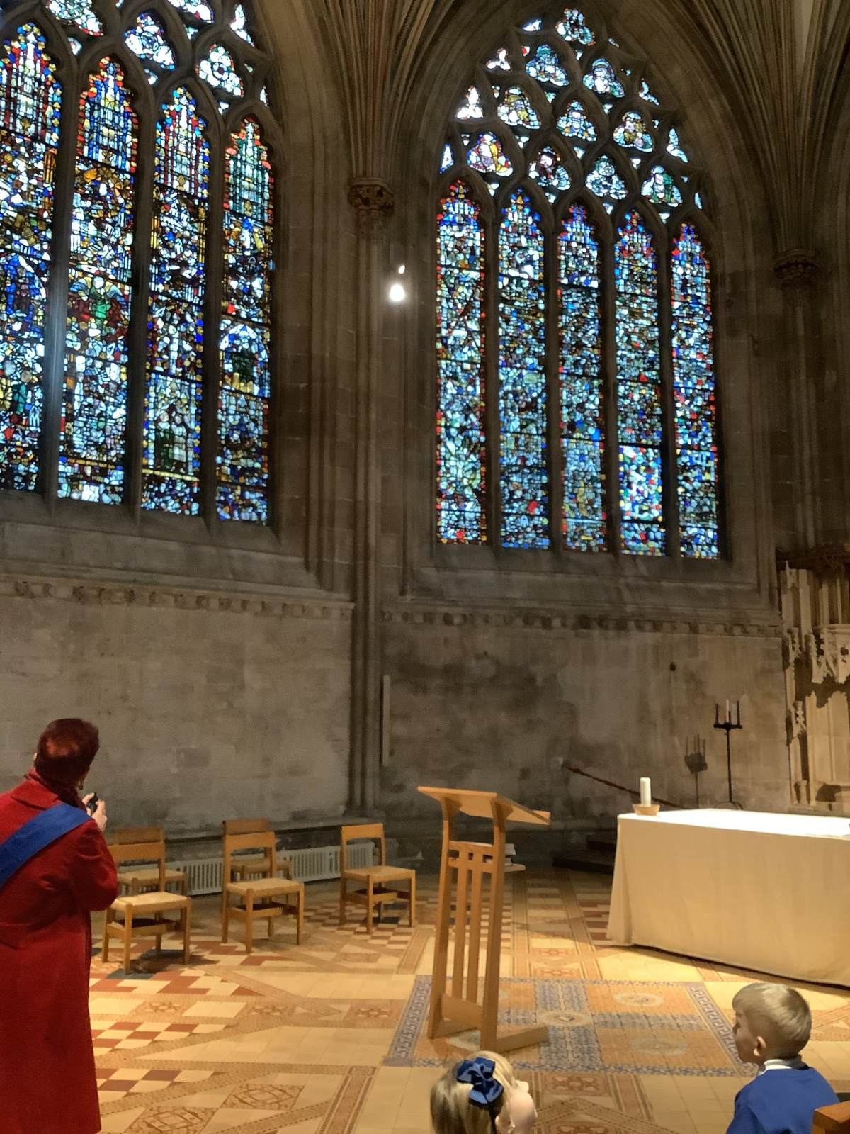 We have had a wonderful day at Wells Cathedral. The Christmas trees looked beautiful and we learned a lot about the building. Did you know it was built 900 years ago? We looked at the fabulous stained glass windows. Our guide told us that some people couldn't read or write all that time ago so stories from The Bible were told in pictures in the stained glass. She also told us that some soldiers came, a long time ago, and broke the windows. The glass broke and instead of throwing it away the windows were made again but not in the right order. These are called the 'jigsaw windows'.