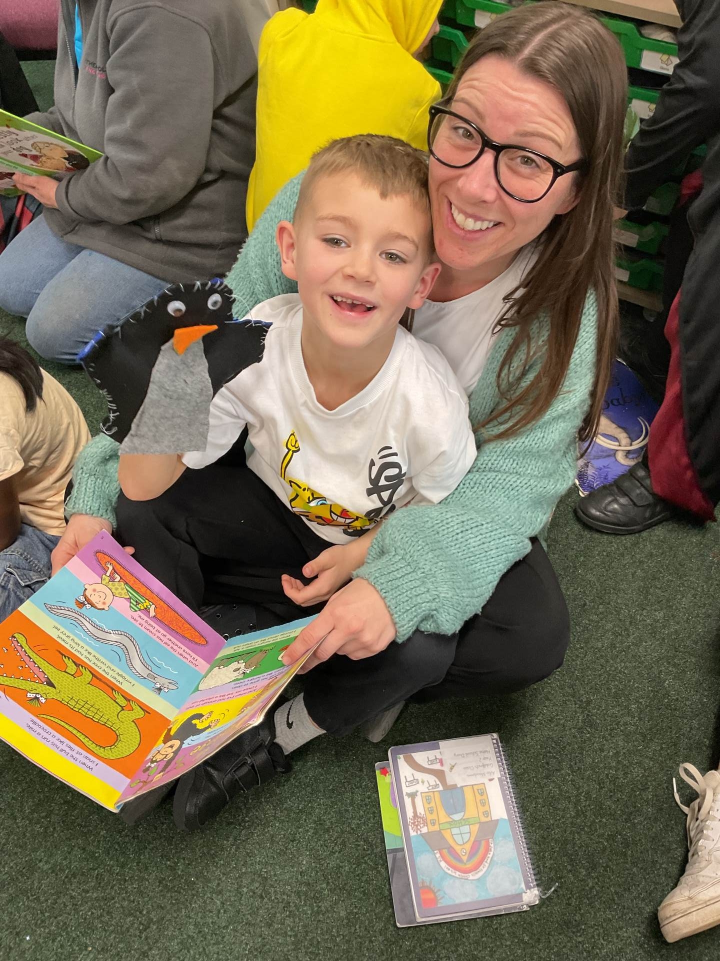 We also invited our grown ups into school to share books with them. We even used the puppets we had made in our DT lessons and read books to them!