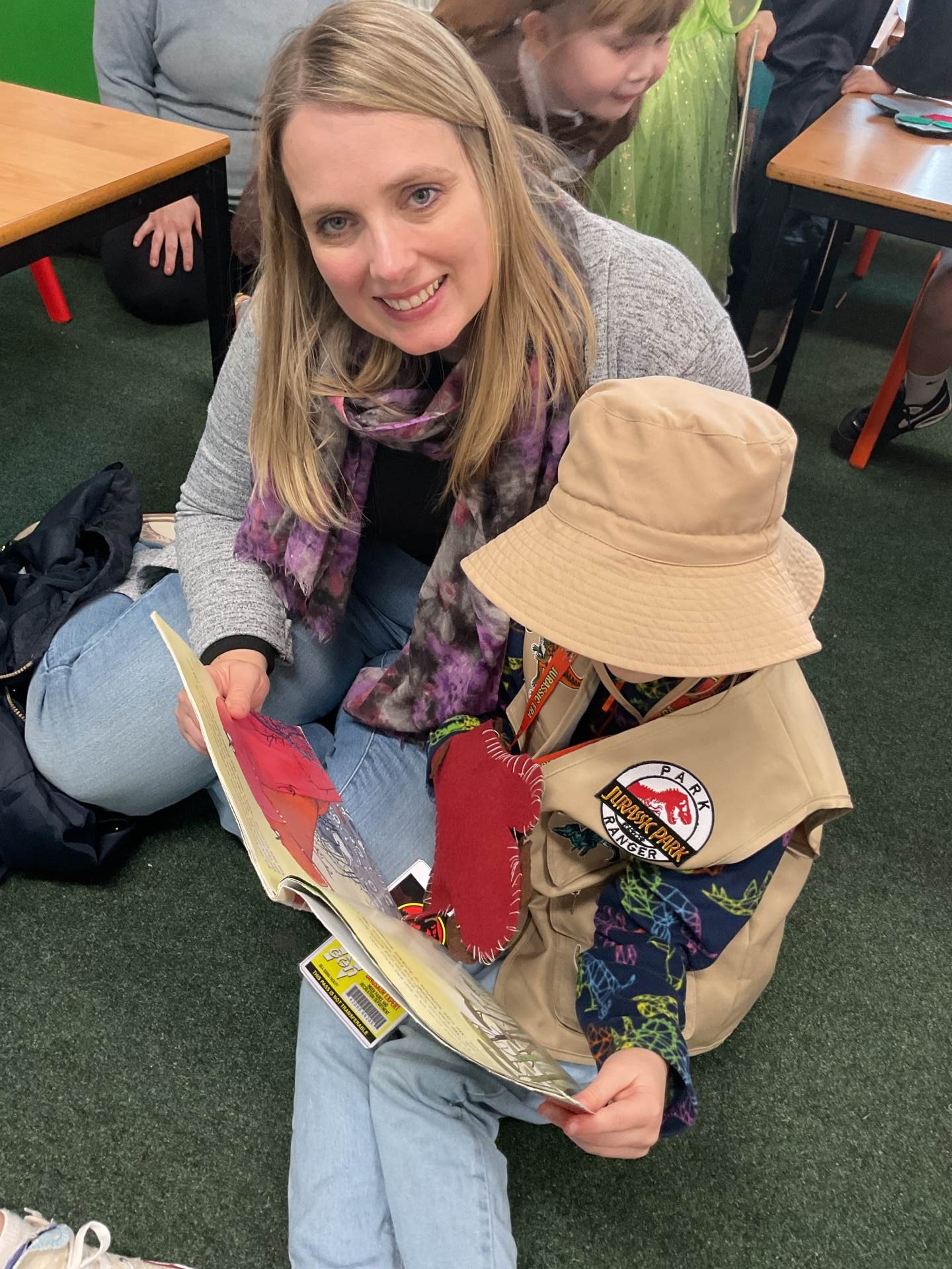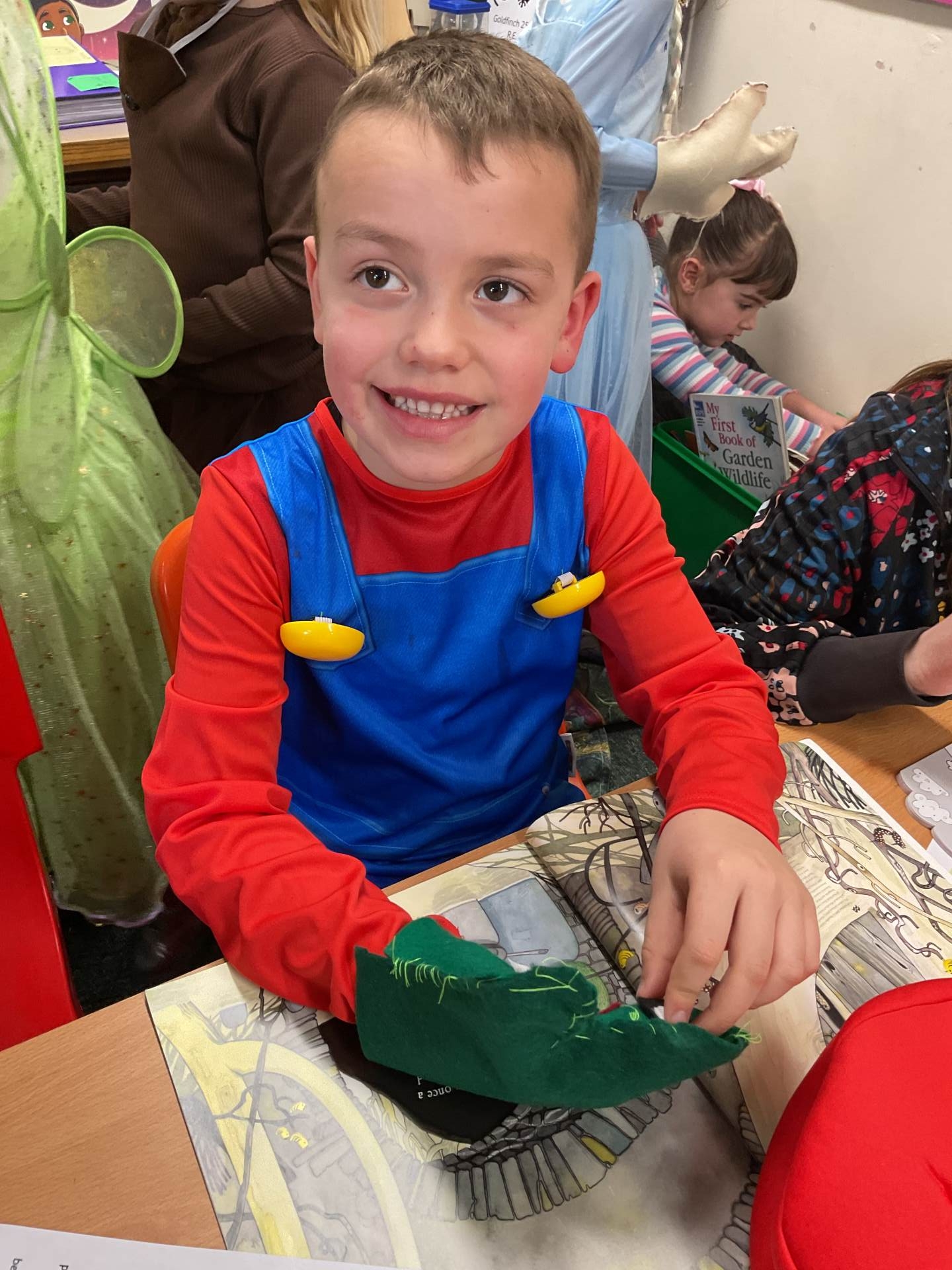 As part of our World Book Day KS1 and EYFS got together to share their character description writing. Year 2 had written about the goats and troll from The Three Billy Goats Gruff story. Year 1 wrote about giants from The Smartest Giant in Town story. EYFS described dinosaurs. The children had to use the clues from the descriptions to work out the characters. Some children worked in Mrs Leach's or Mr Butt's classroom so please look for more photos on their page.