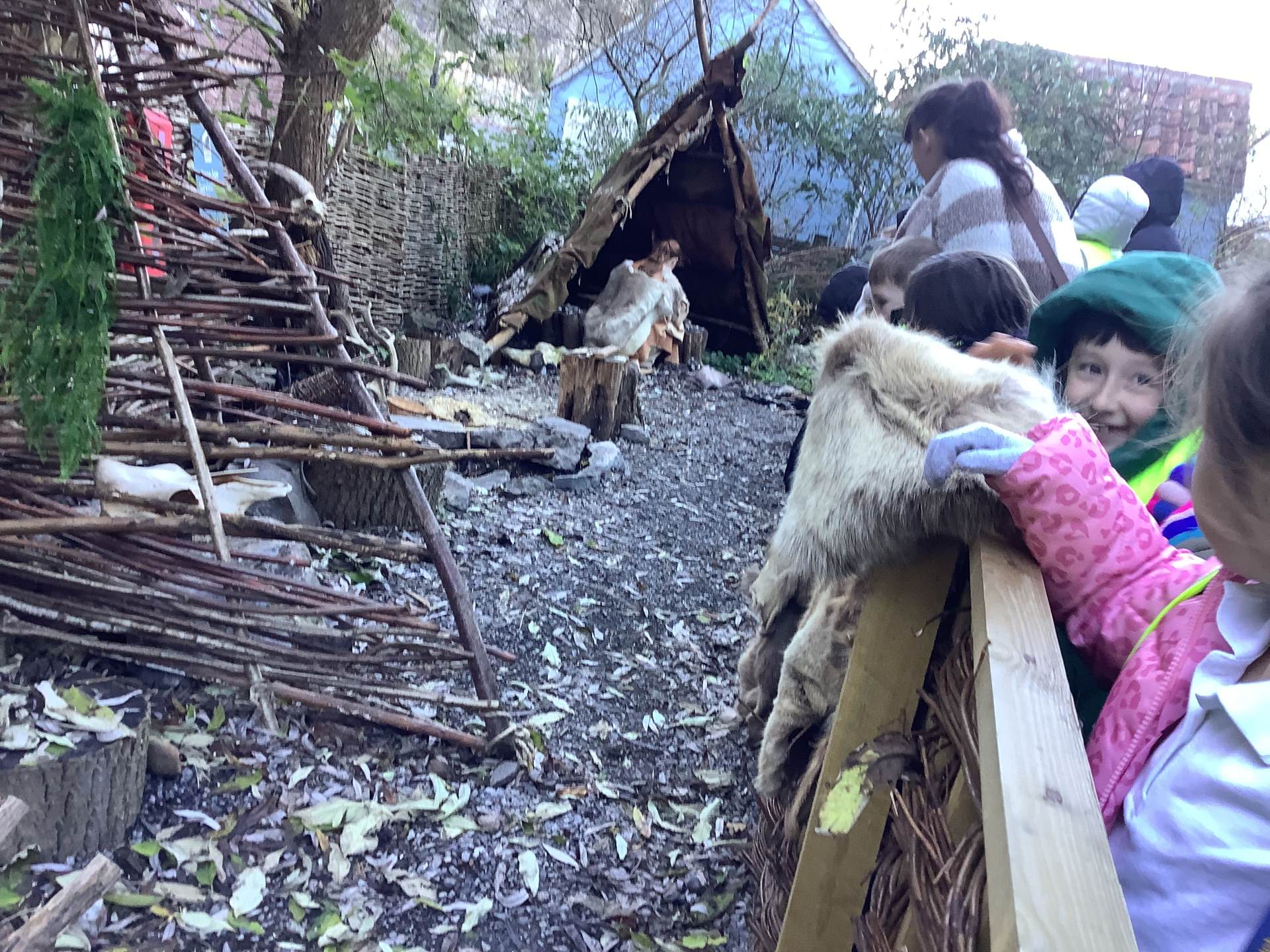 Today we spent the day as Stone Age people dressed in costume and experiencing life like they would have done 3 million years ago. In the morning, we used natural materials to create paintings, made sparks for a fire using flint stones and crafted clay pots. Because it was so cold outside, we had to have hot chocolate and marshmallows to warm us up when we came back inside! During the afternoon, we pretended we were inside a cave by going under the tables and drawing on the 'cave roof', we also made a fruit stew-it tasted delicious. Next week, we will be writing the instructions for how to make fruit stew in our English lessons.