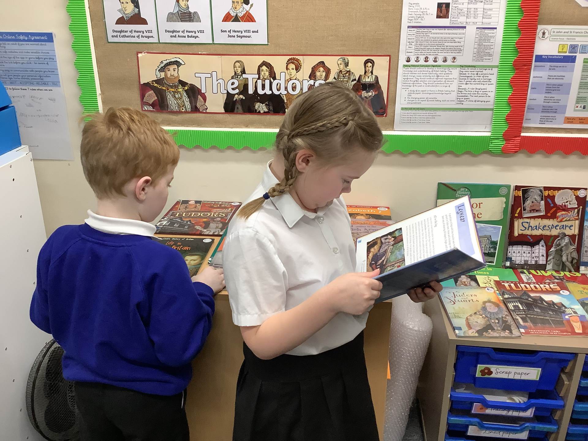 We shared our costumes and spoke about our characters, shared our character descriptions with Year 3 and used non-fiction texts to read for information learning more about the Terrible Tudors.