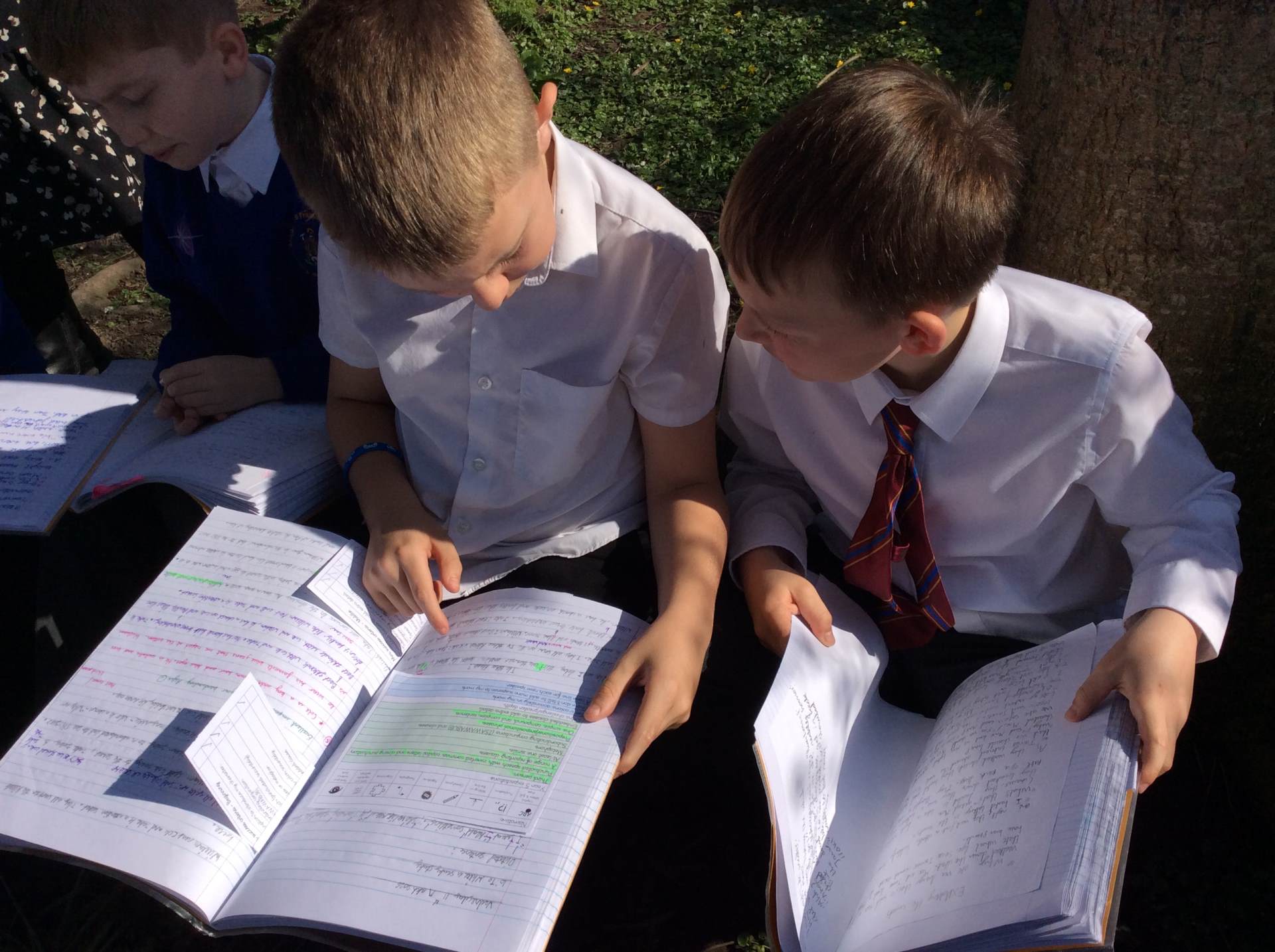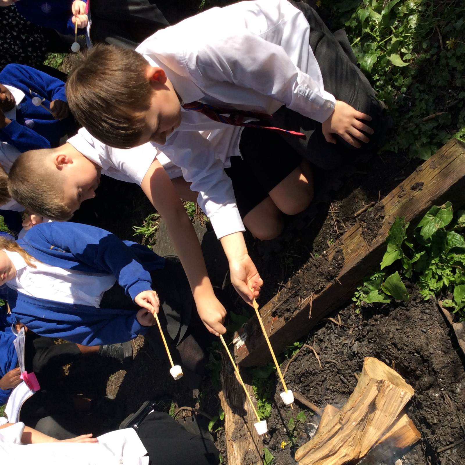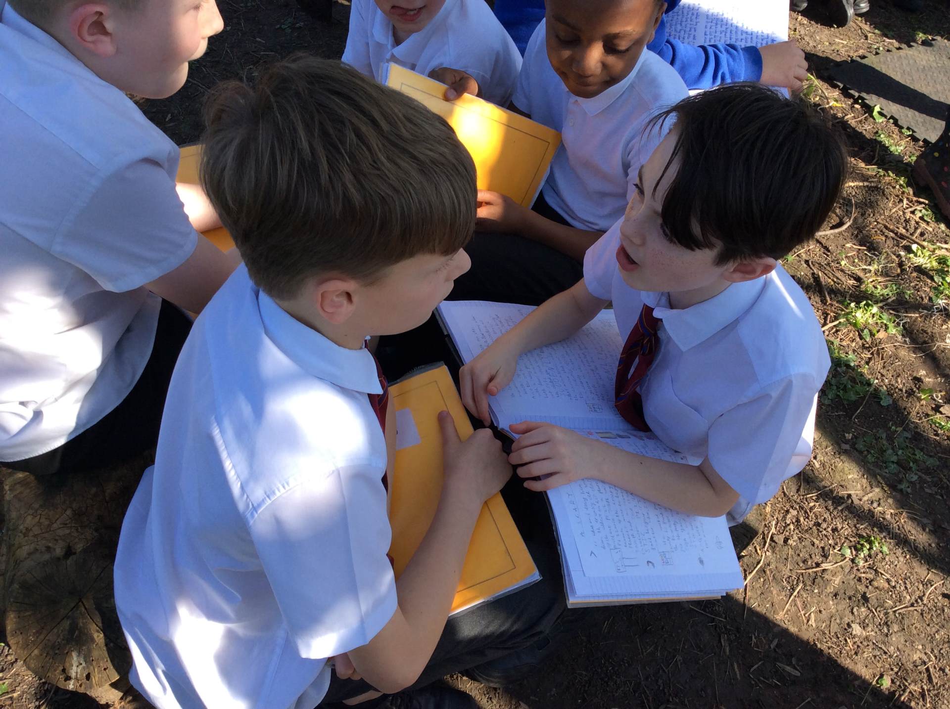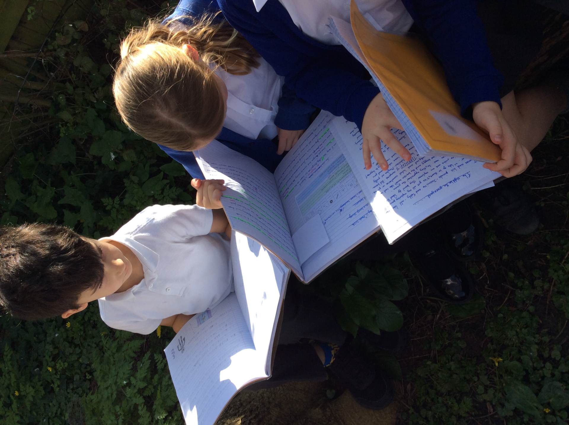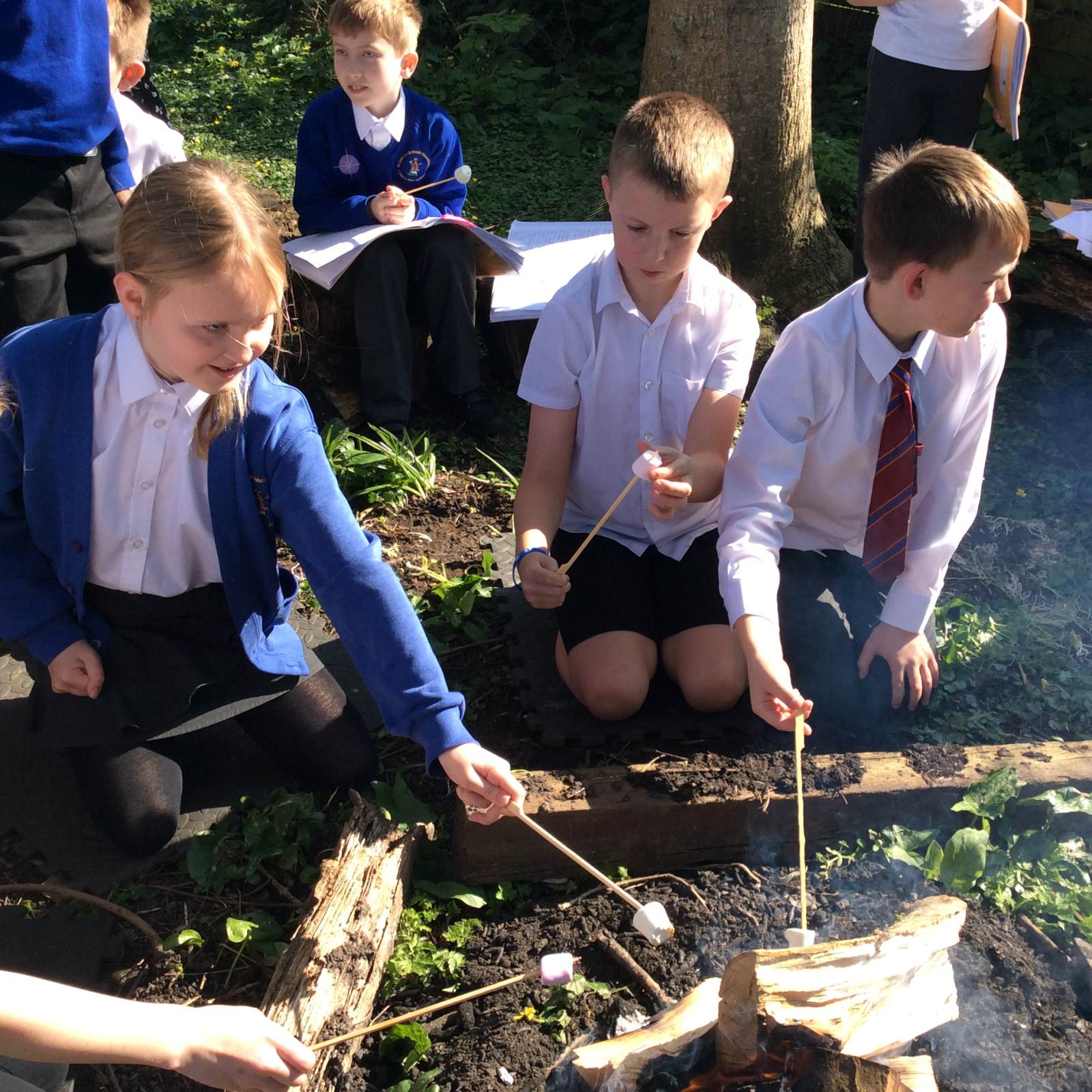 We headed out to our Forest School area, where the children gathered around a crackling campfire. Surrounded by nature, the setting created the perfect atmosphere and ambience for storytelling. In pairs and small groups, the children bravely read aloud their “scary stories,” using expressive voices to build suspense and keep their audience on edge!