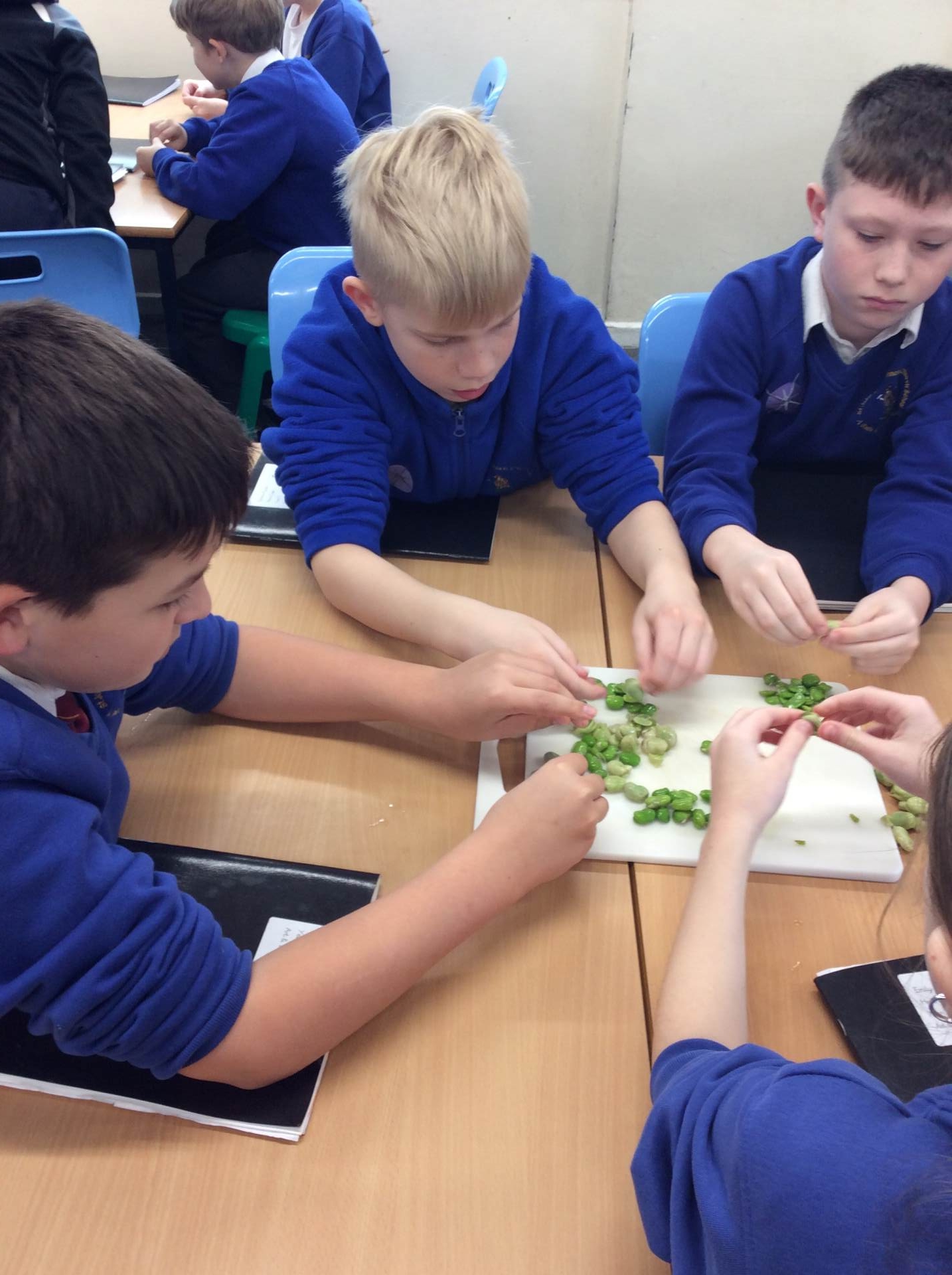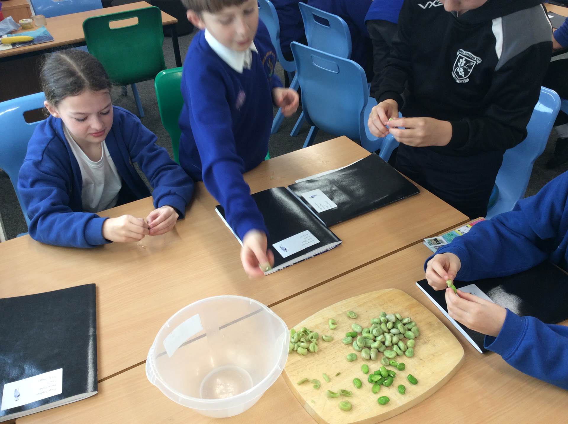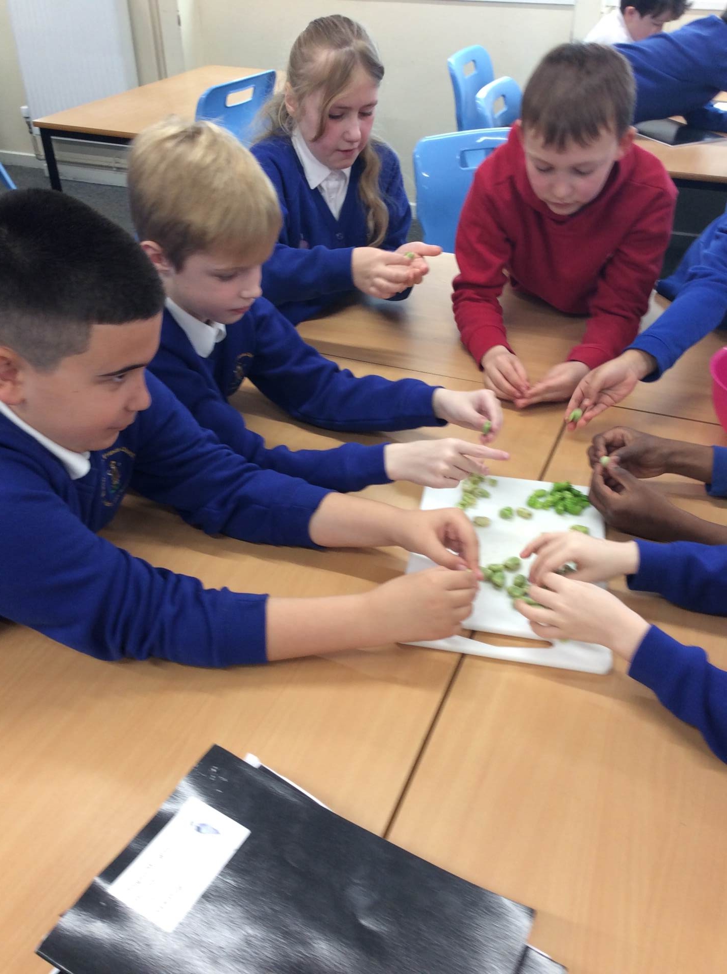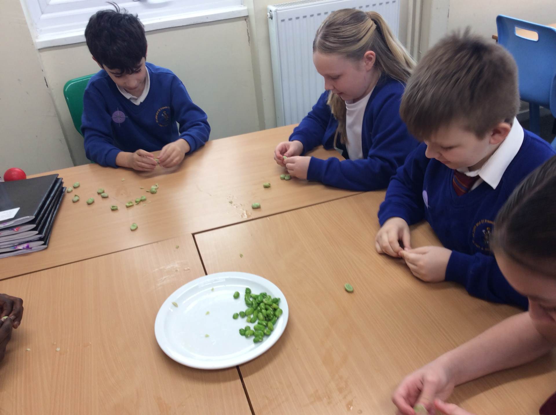 This week, the children took their first hands-on steps in the project by experimenting with broad beans themselves. They carefully shelled the beans, discovering how the soft green seeds hide inside their tough pods.