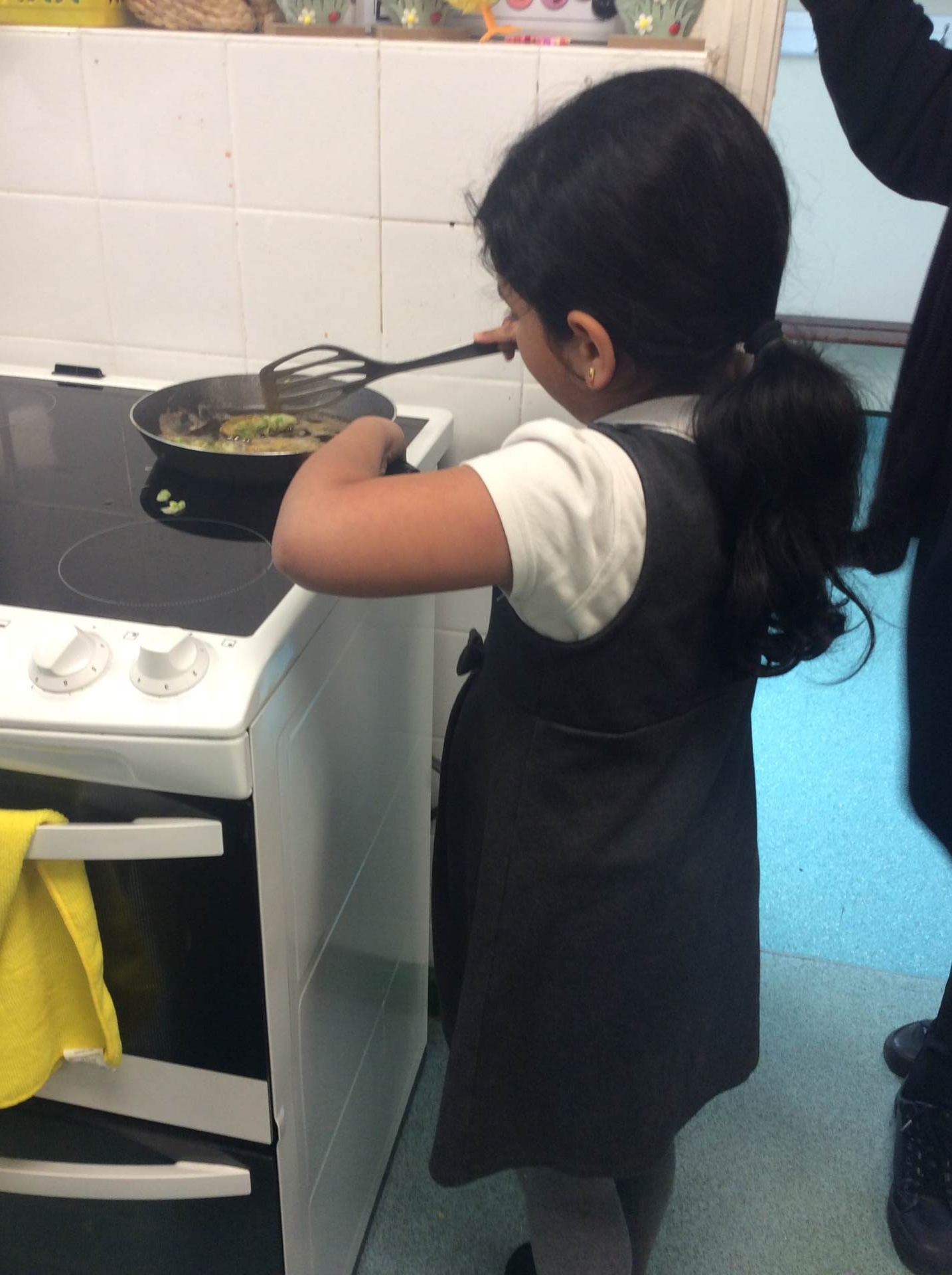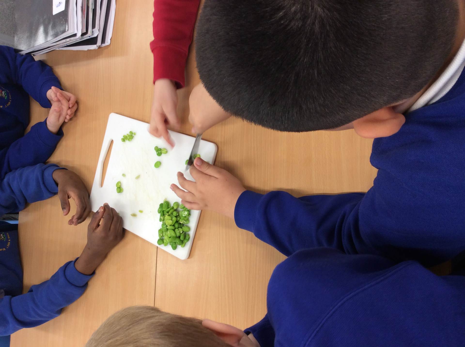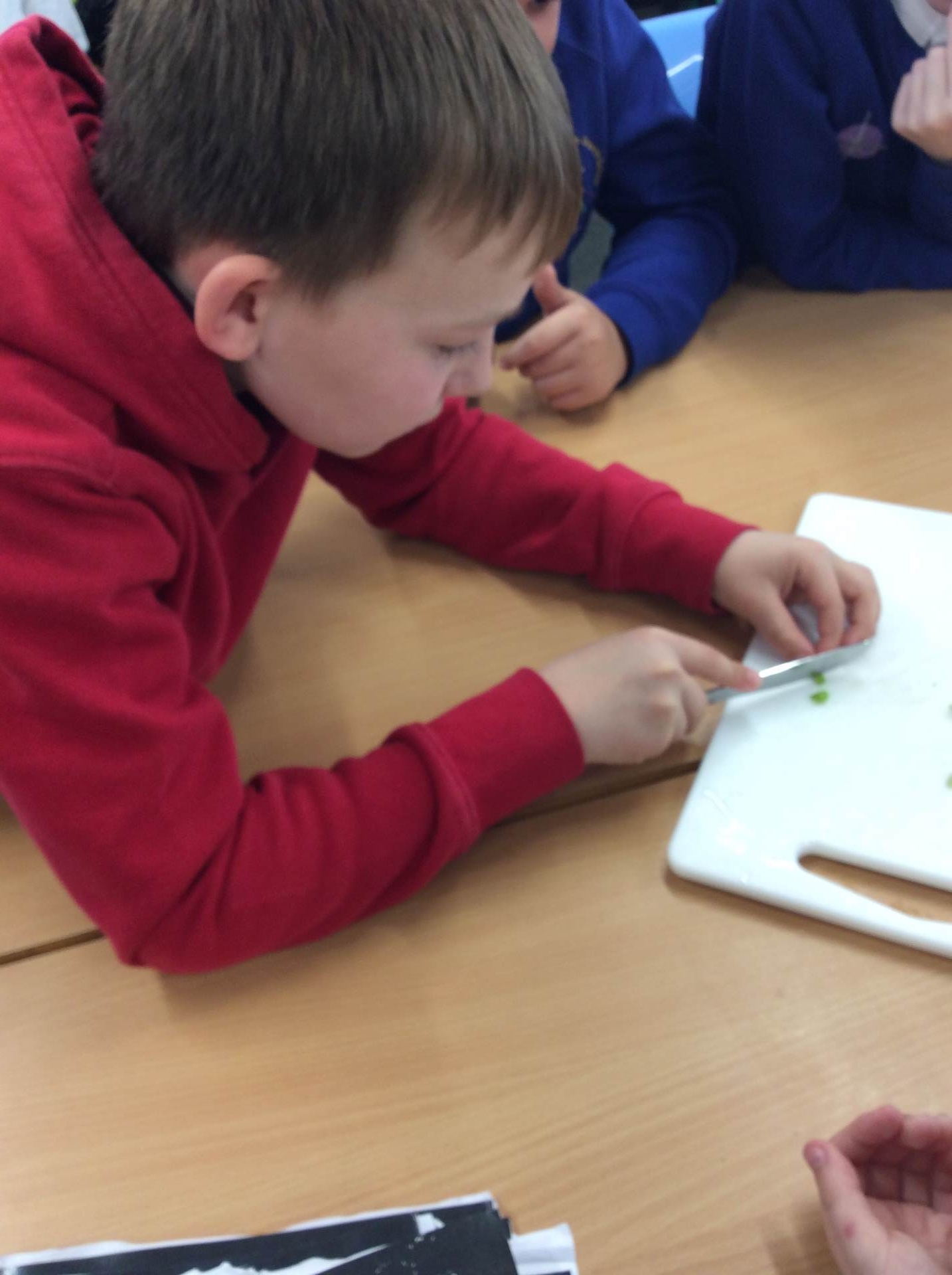 Next came the chopping stage, where they practiced safe knife skills and explored textures and shapes.