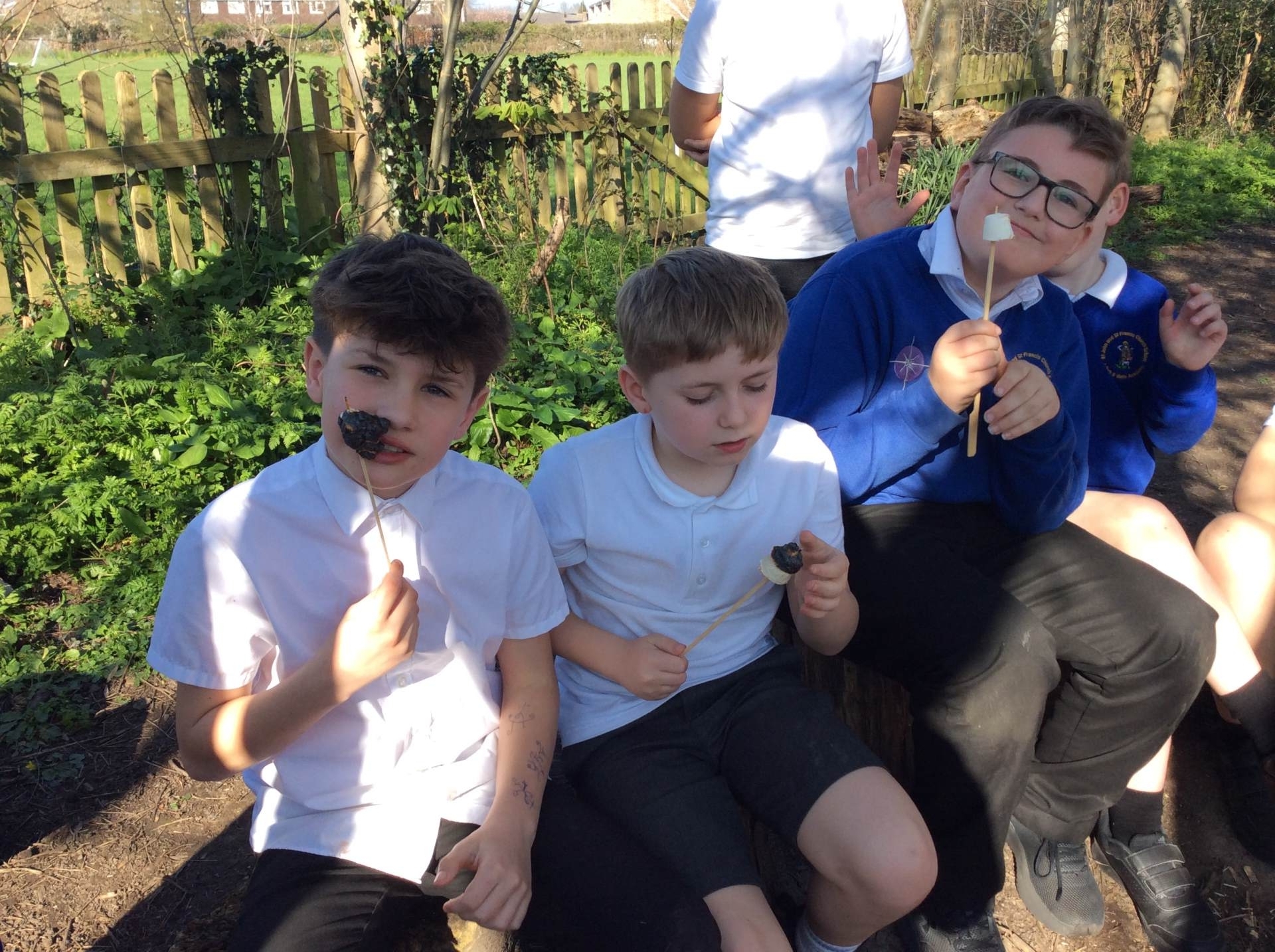 We had a blast connecting with nature and learning new skills. We had a go at whittling, carefully carving sticks into magic wands. We then worked on building rafts. We used sticks, string, and other natural materials to create floating creations. The children got their hands dirty with clay, crafting little faces and creatures that they then attached to the trunks of trees. These clay faces added a magical touch to the forest school area, giving the trees personalities and turning them into whimsical works of art.
