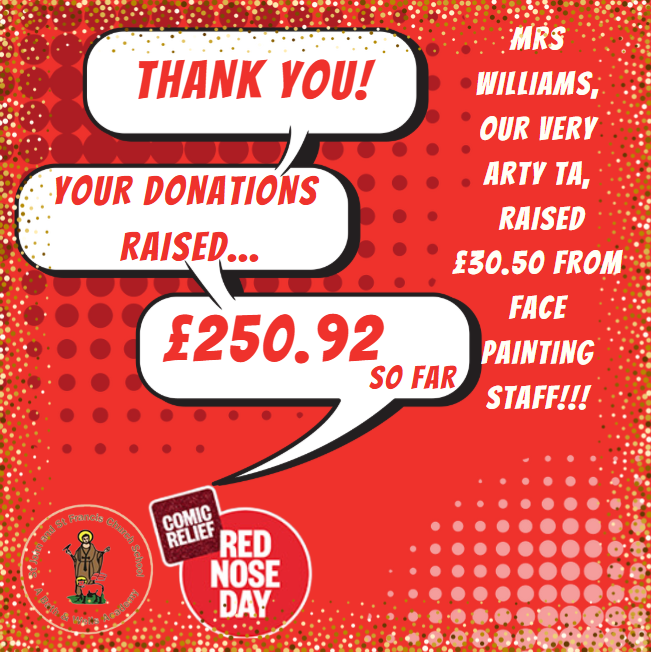 Our children, staff, parents & carers raised over £250.00 by wearing red, sparkly clothes, which included staff having their faces painted by Mrs Williams, Teaching Assistant!