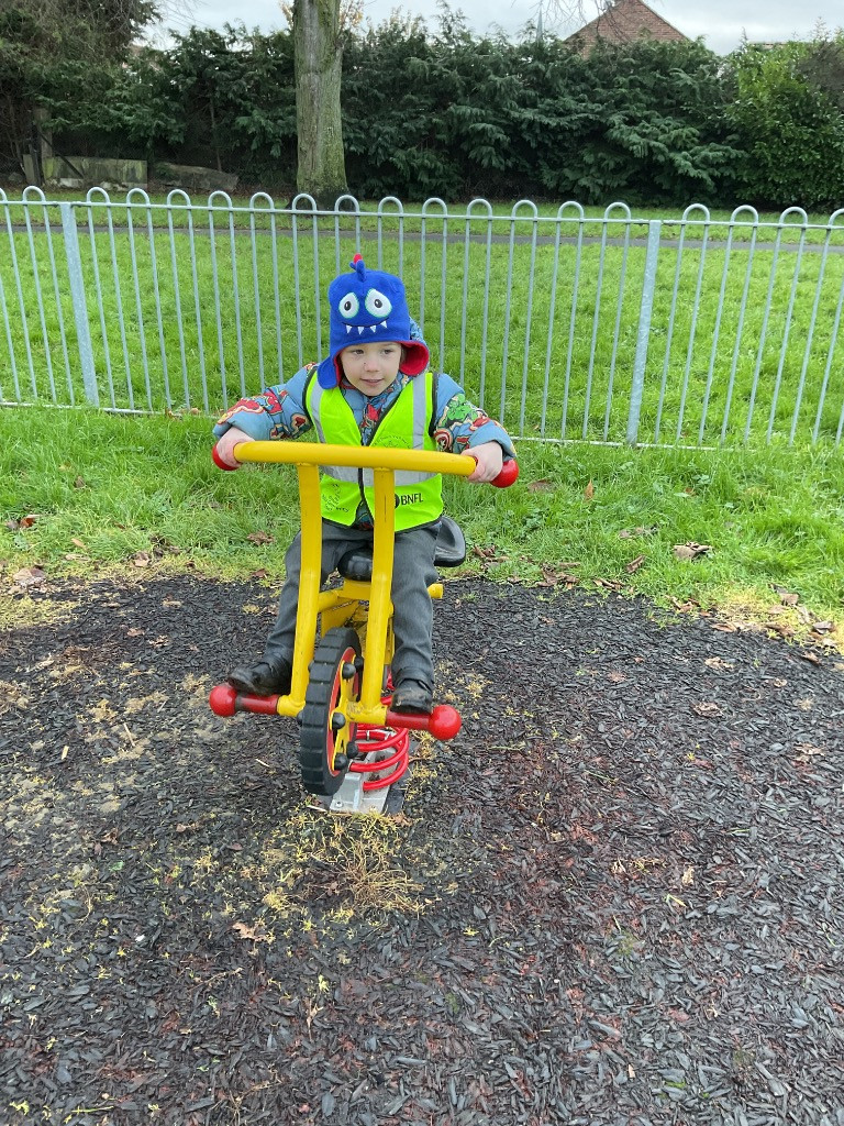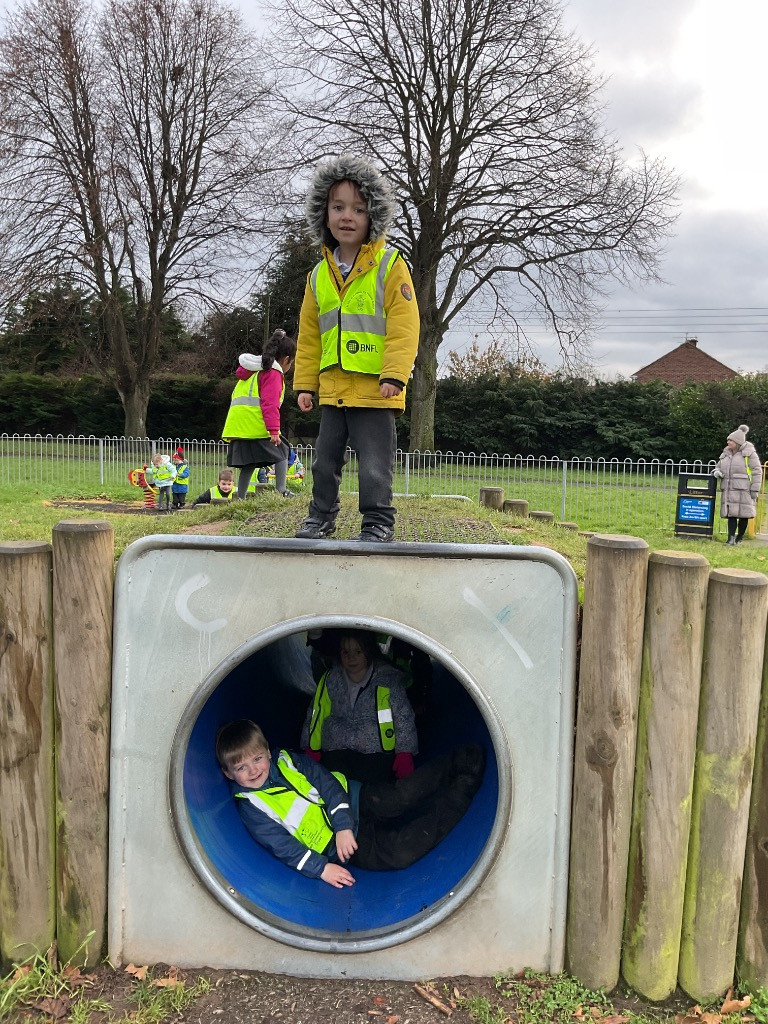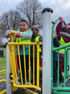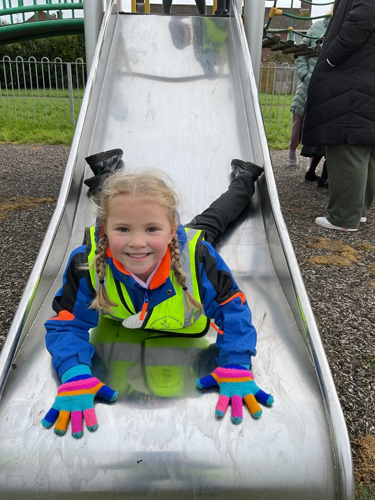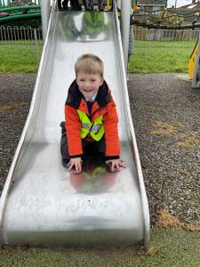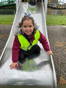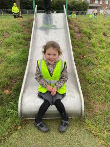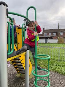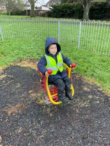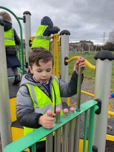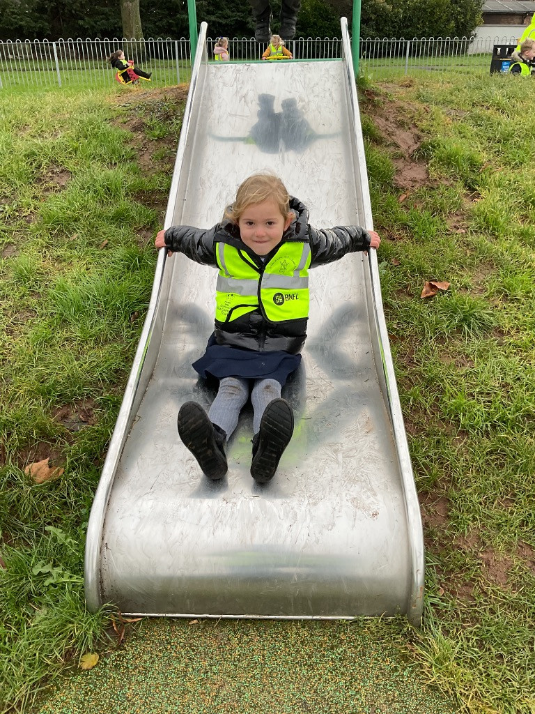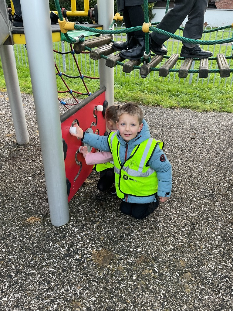 This afternoon, we had a trip to the park! We spotted some familiar landmarks such as the zebra crossing, the tall Christmas tree and St Francis Church. Once at the park, we were able to play on the equipment, demonstrating how we could use our gross motor skills to climb, slide and balance. It was a little bit muddy! (apologies for muddy clothes and shoes but we had so much fun!).