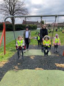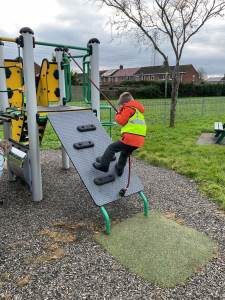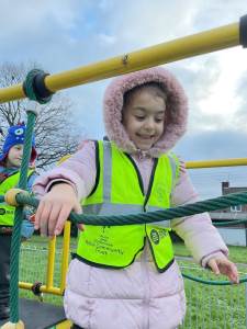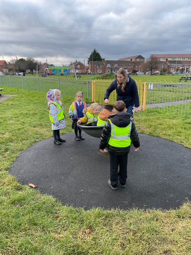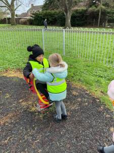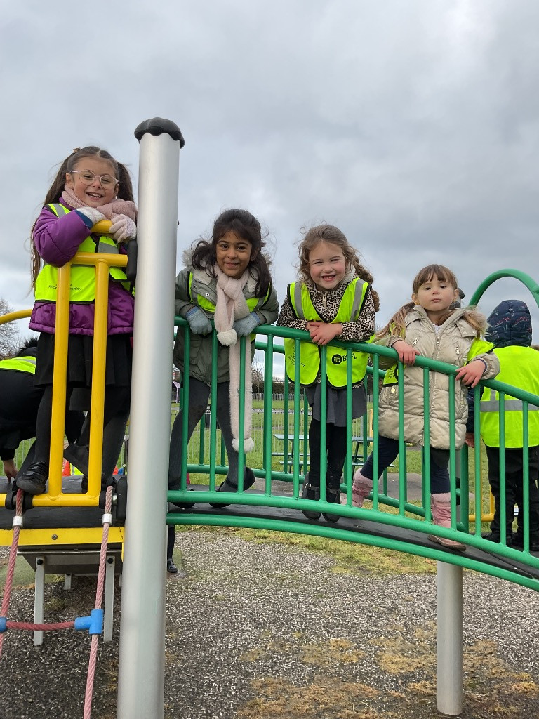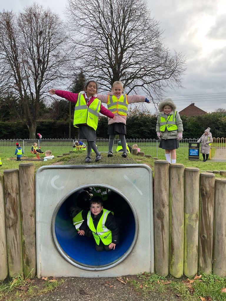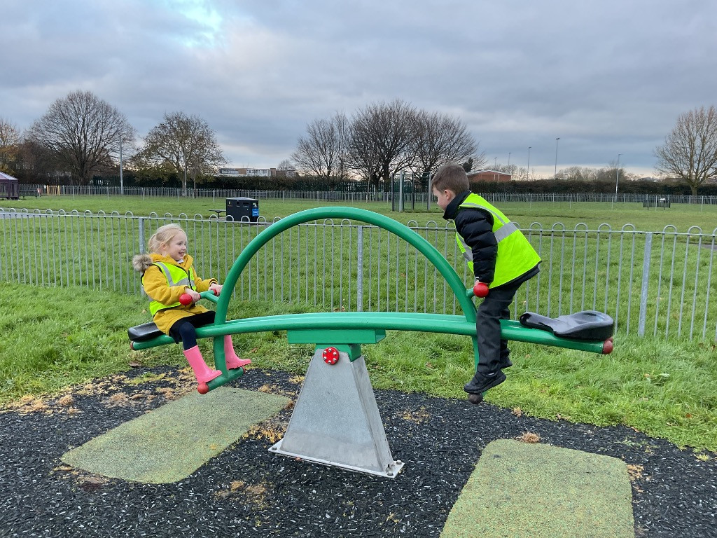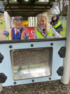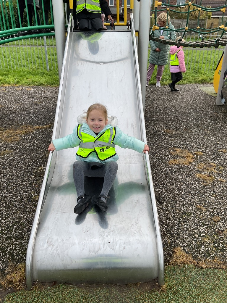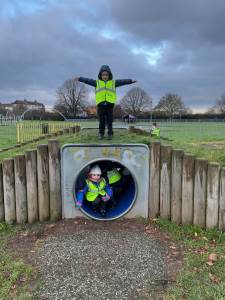This afternoon, we had a trip to the park! We spotted some familiar landmarks such as the zebra crossing, the tall Christmas tree and St Francis Church. Once at the park, we were able to play on the equipment, demonstrating how we could use our gross motor skills to climb, slide and balance. It was a little bit muddy! (apologies for muddy clothes and shoes but we had so much fun!).