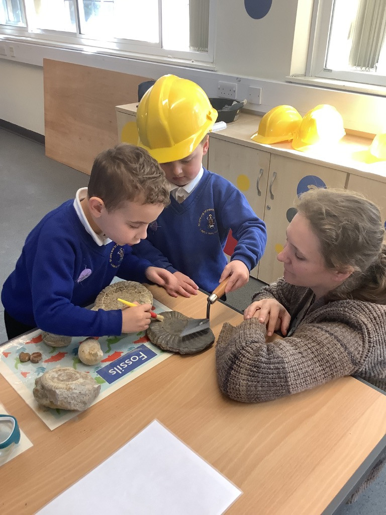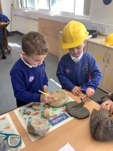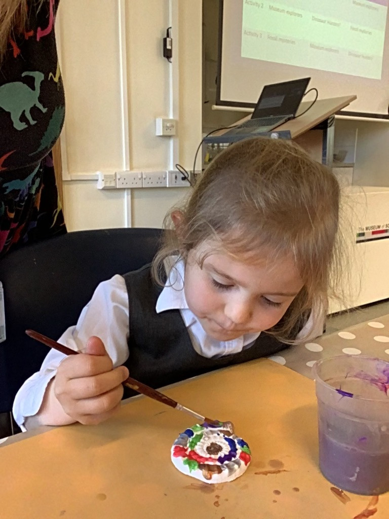We have had a wonderful day visiting the museum, as a finale to our dinosaur topic. We found lots of different fossils as well as other artefacts such as old coins, swords, skeletons, stone sculptures from a church, an old fire engine and old bicycles, as well as much more! We also had the opportunity to take part in some workshops where we became palaeontologists, digging for fossils, and painted our own ammonite.