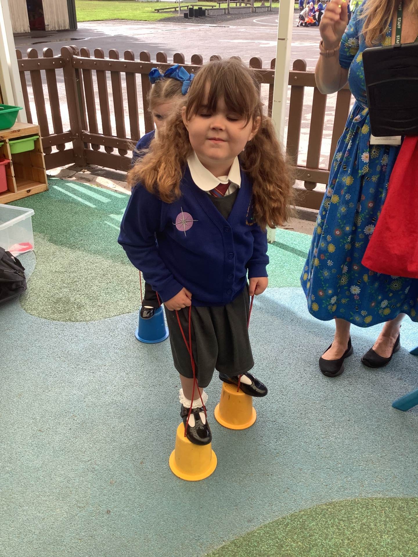 As part of our health and sport week we had a session learning circus skills with Steve. We tried activities such as balance beam, flower sticks, hoops, ribbons and steppers. We all persevered!