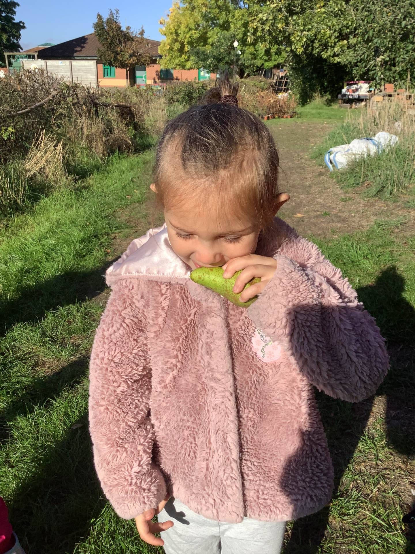 The children also got the opportunity to look at all our fruit trees, pick fruit for themselves and even try it which they really liked, We tried pears, apples and cherry plums🍏🍐.
