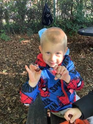 We went on a ‘treasure hunt’ and found conkers, conker shells, acorns and snail shells. The children were taking in all the information Mrs Nurcombe was sharing about the different types of snails, the. found it particularly amusing that there was such a thing as a Cheese Snail🐌.