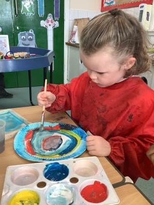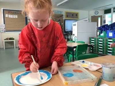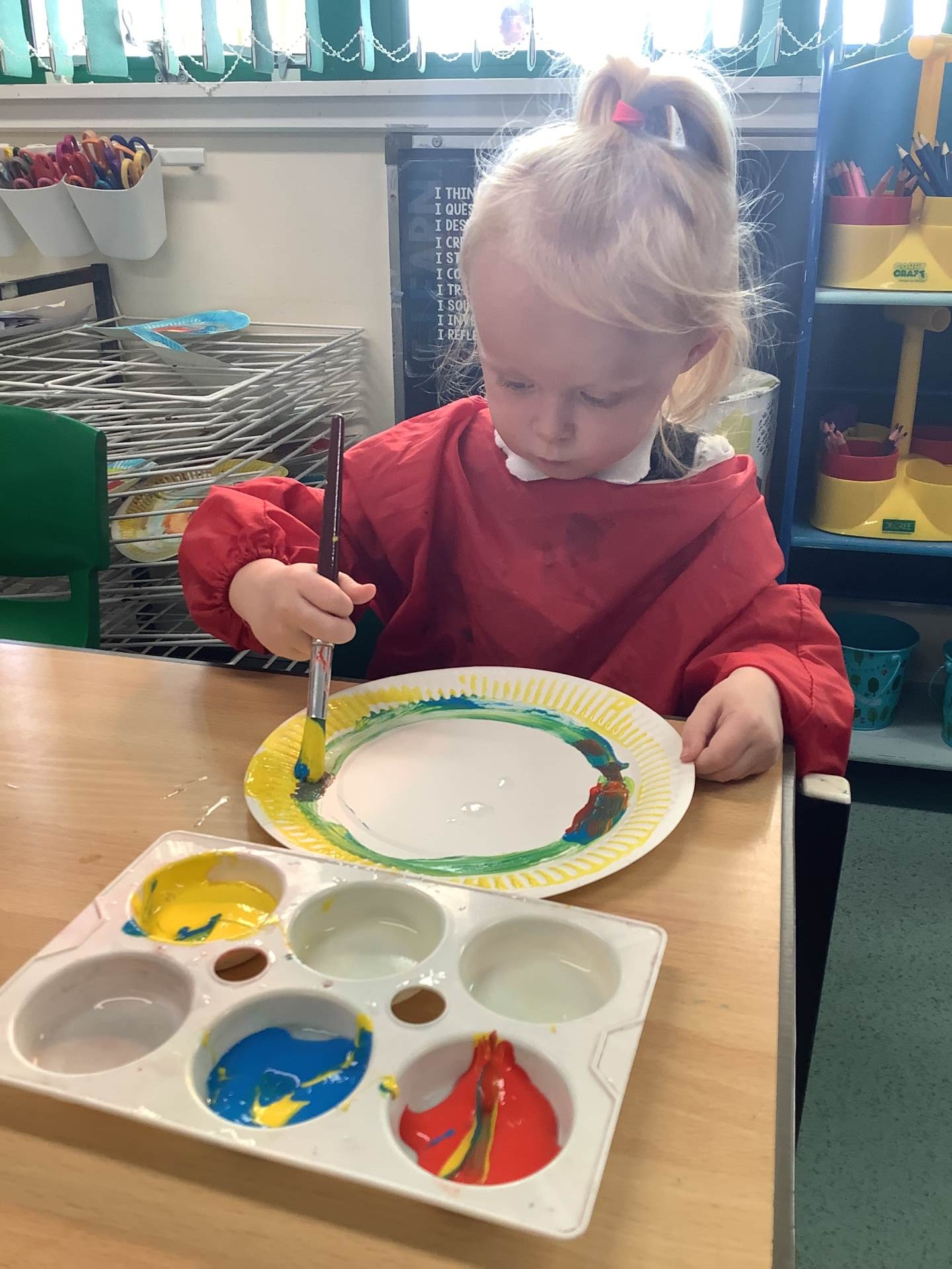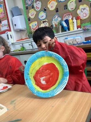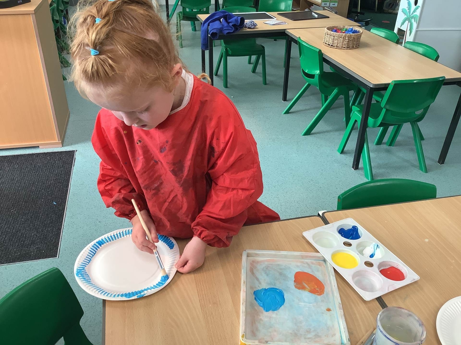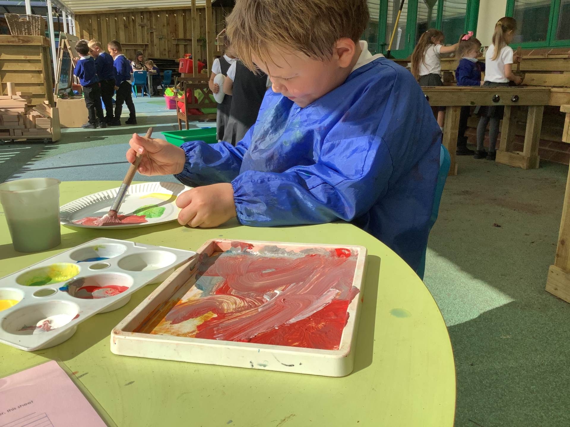 We have been learning a little bit about the famous artist Kandinsky, who lived a long time ago. We looked at some of his paintings and learned the word ‘abstract’. This means that they do not look like ‘things’. We noticed that he liked to use bright colours and different shapes. We had a go at creating our own painting, in the style of Kandinsky’s concentric circles. We mixed our own colours of paint and made circles, starting from the centre and moving outwards. Here are some pictures to show our masterpieces!