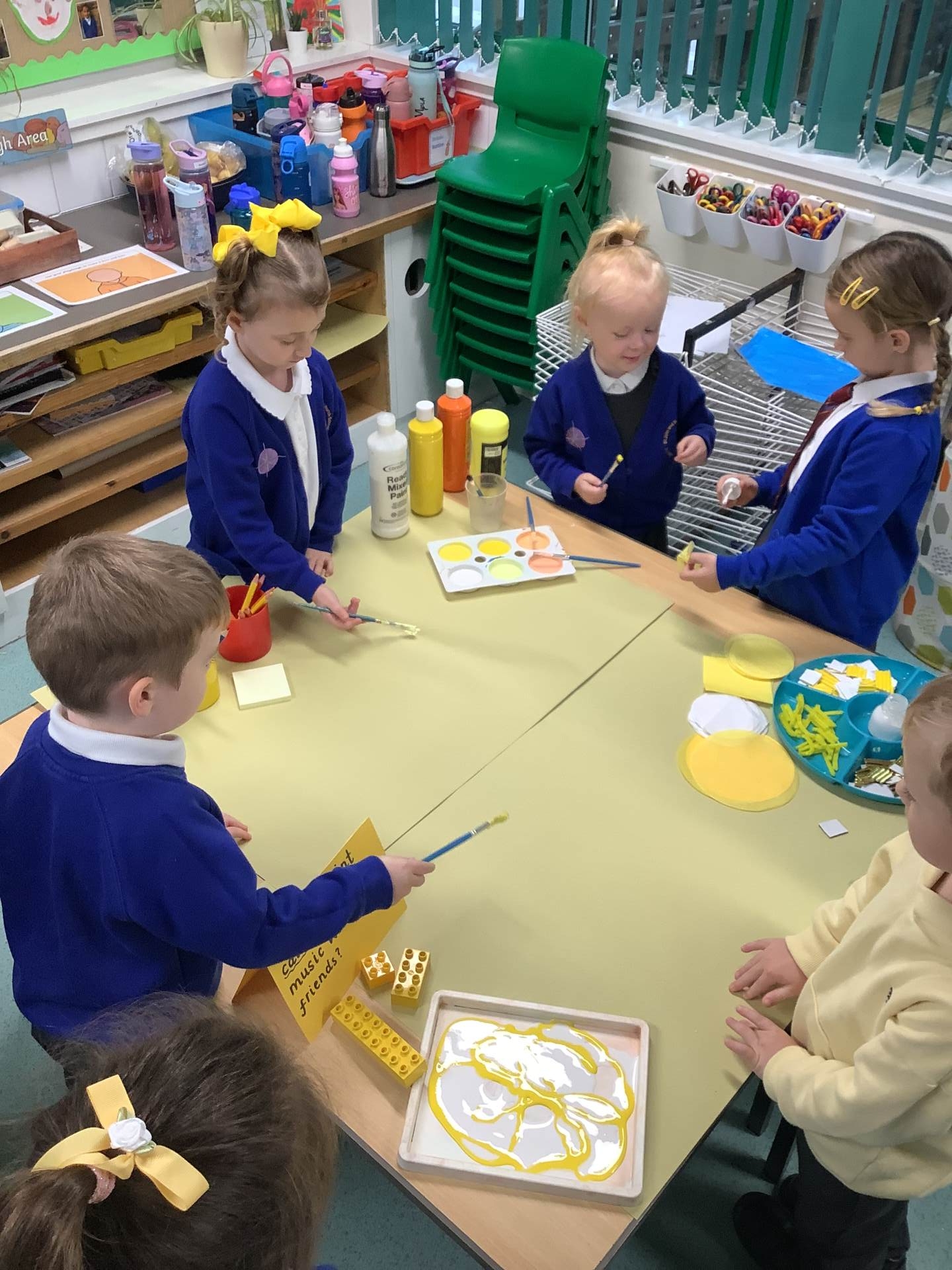 Friday was mental health awareness day and we were able to wear yellow in support of raising awareness of mental health and reducing the stigma (yellow is a symbol of hope and optimism). We learnt that it is important to keep our brain healthy as well as our body and this is called our mental health. We practised some grounding techniques, using breathing to help calm ourselves and anchor our mind in the present. We created a collobarive piece of art using all things yellow the children loved the freeness of this piece of art.