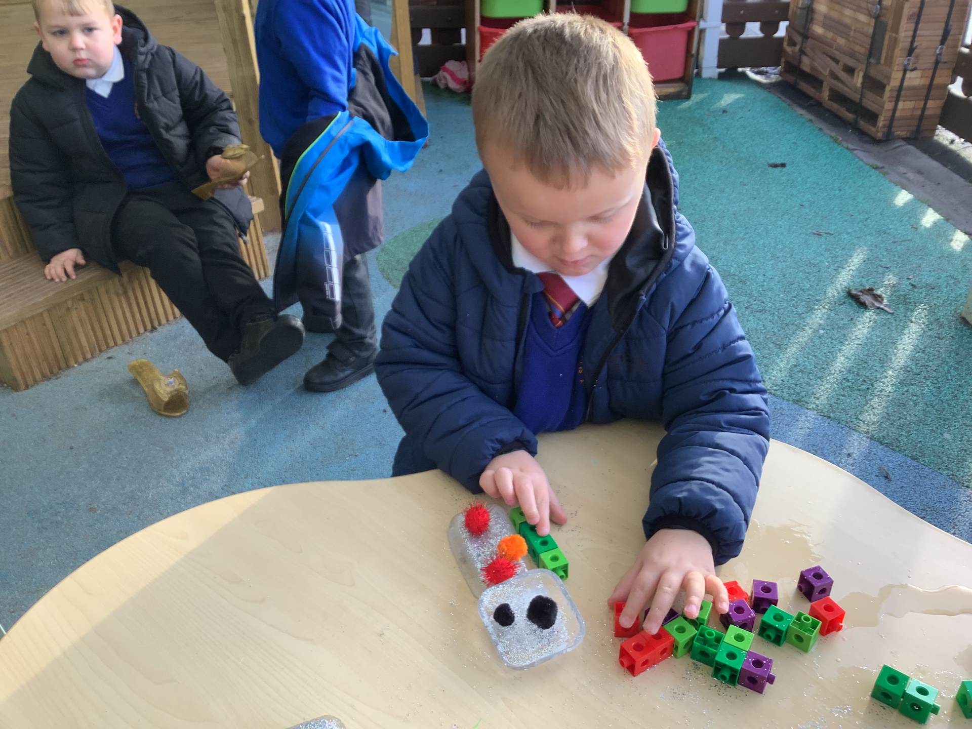 We had great fun making our own snowmen and using the cubes to measure them. We used our mathematical vocabularly of length and height. It was a lovely practical and festive maths activity.