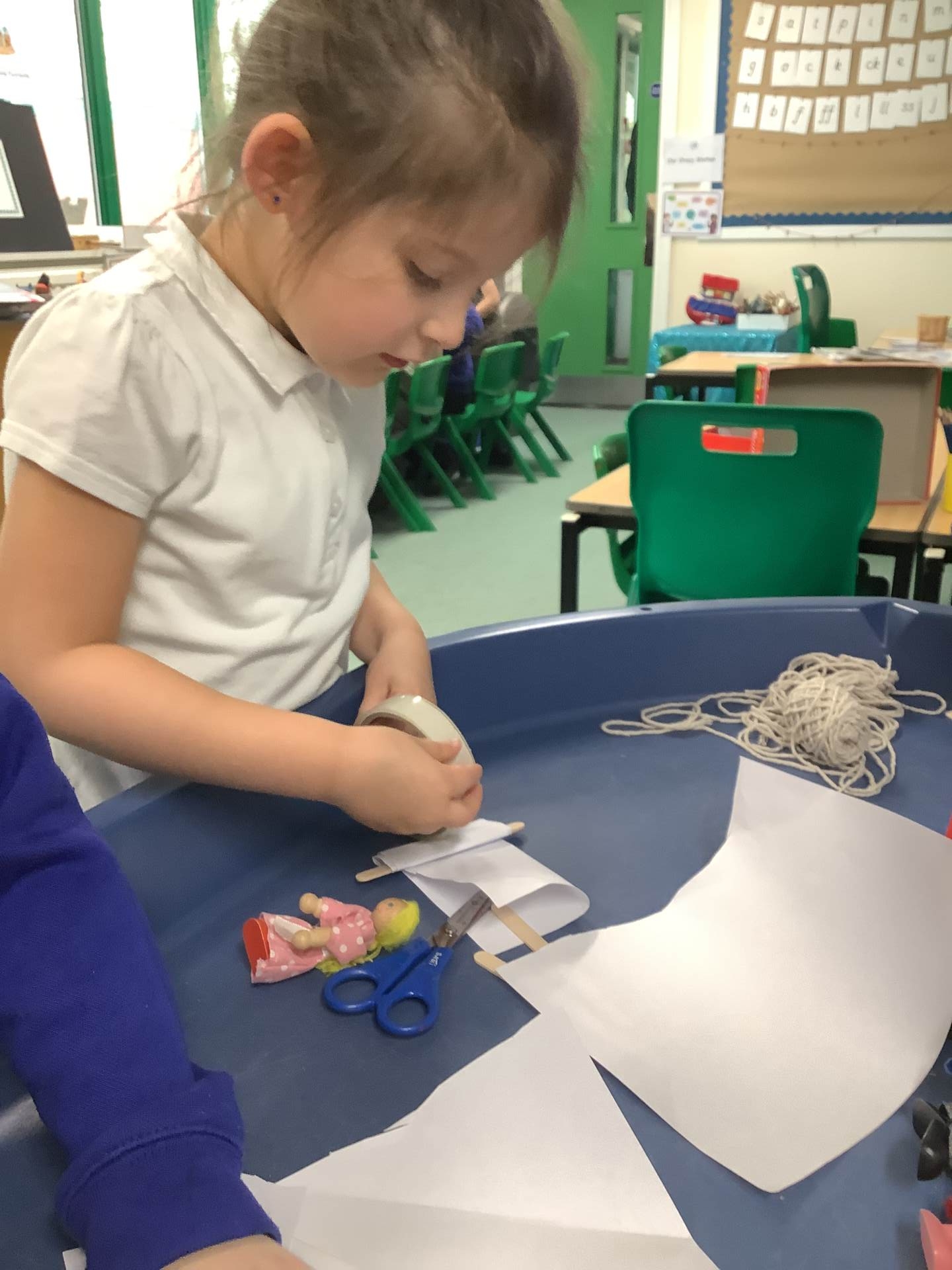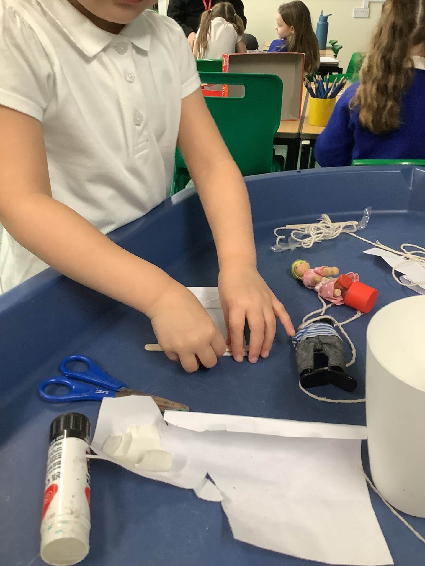 As part of our RE we have been learning about stories with Jesus. We have been learning about how Jesus healed the paralysed man and in a cross curricular approach made stretchers in paper crafting. We tested these out and used the dolls house to lower our stretchers through the roof as in the story. We had to use our problem solving skills as sometimes our man fell off of his stretcher!