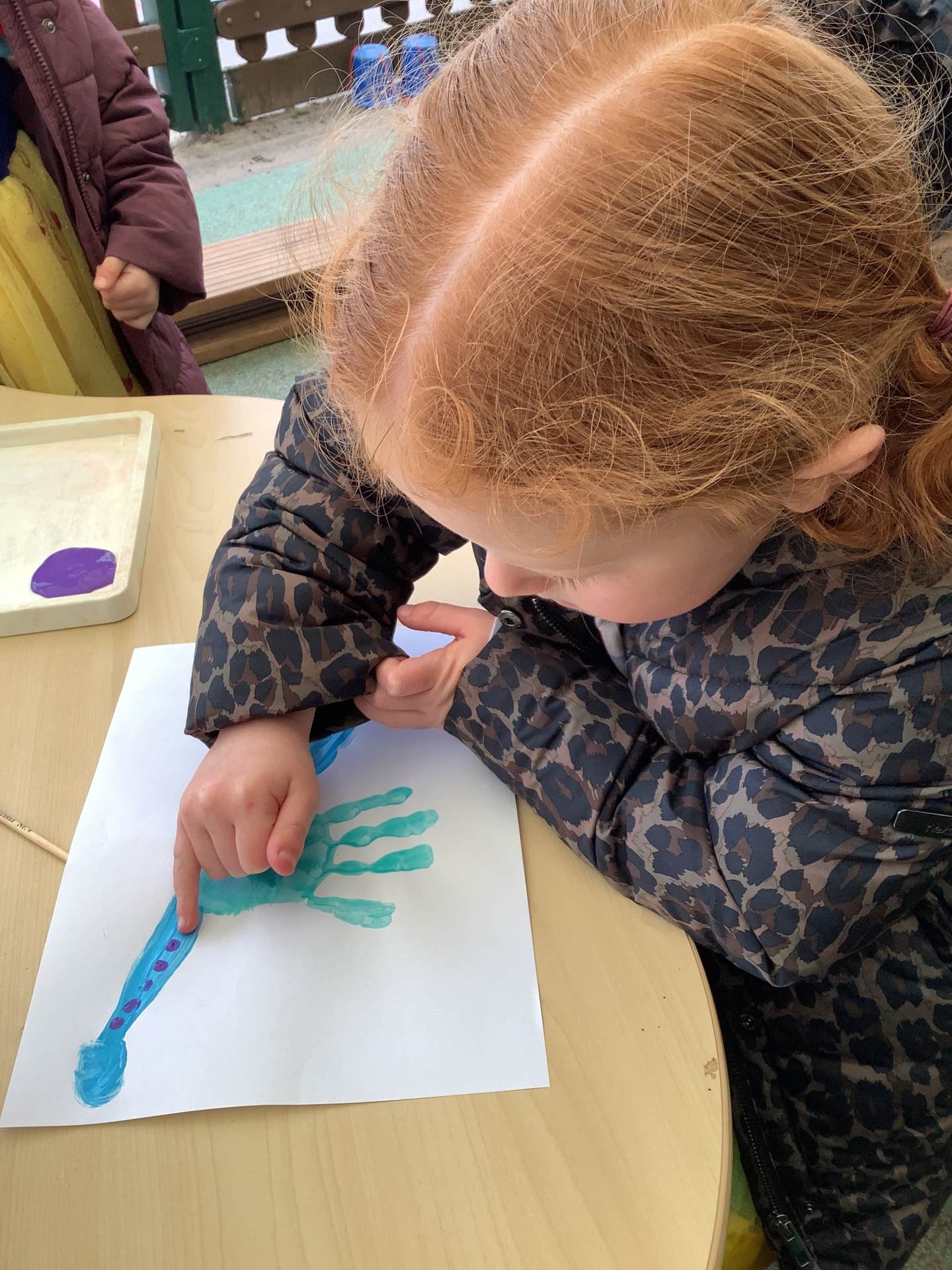 We also thought about the different emotions that we might feel and how it is important to ask for help when our feelings are overwhelming and to keep ourselves calm. We listened to the story of ‘The color monster’ by Anna Llenas and then we decorated our own color monster, talking about how it was feeling and why this might be.