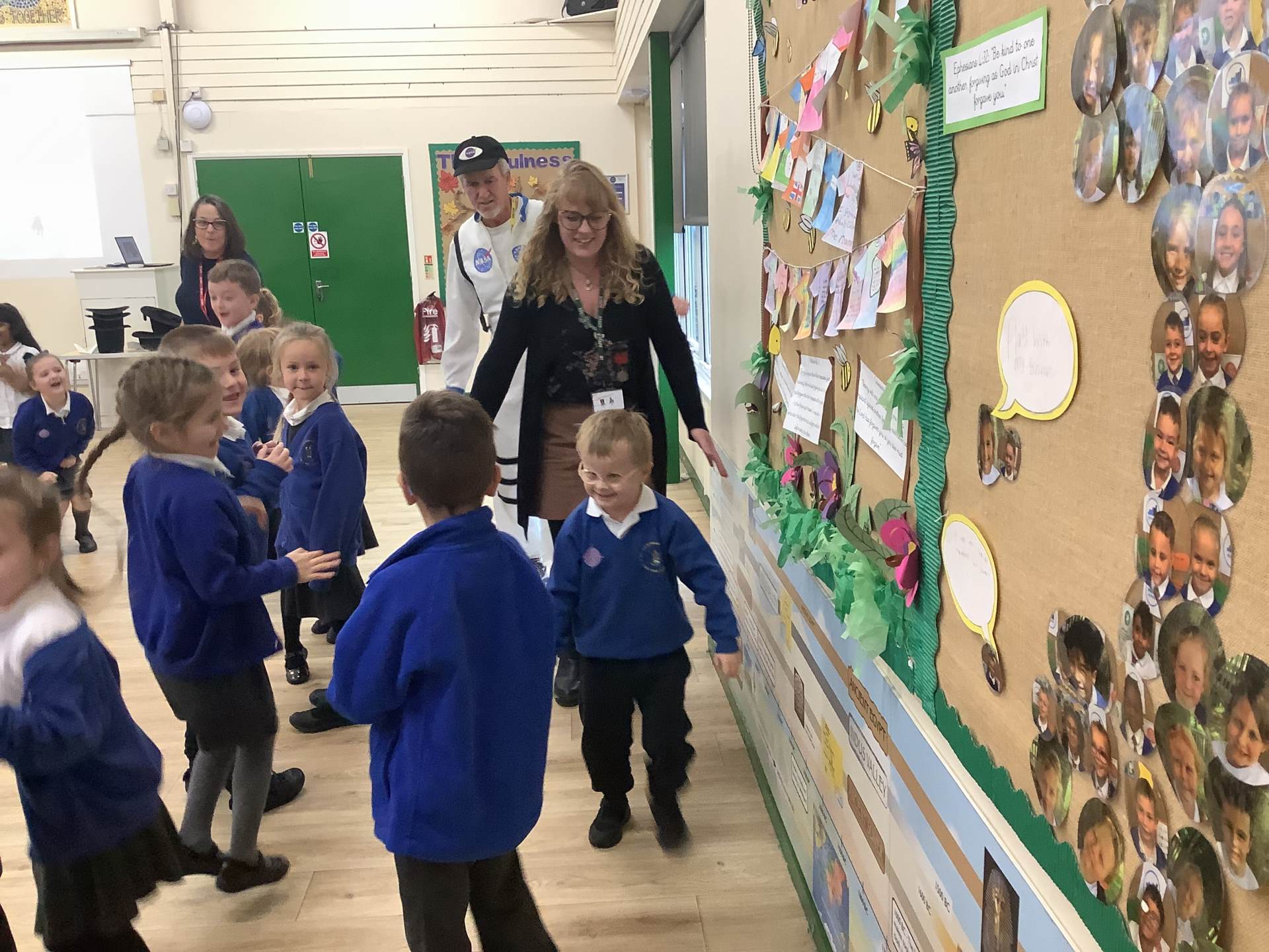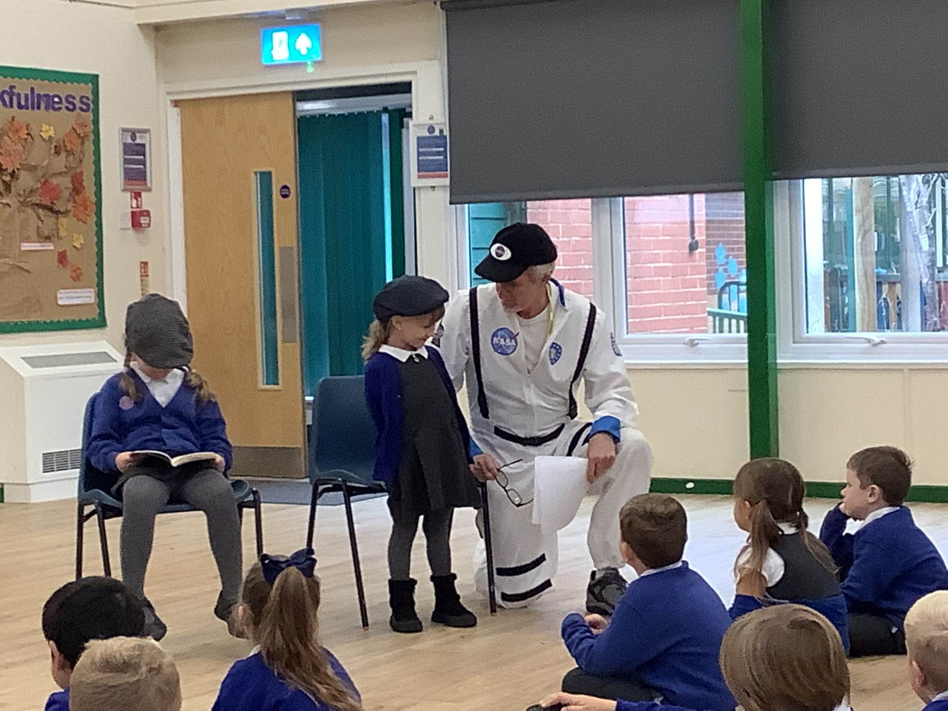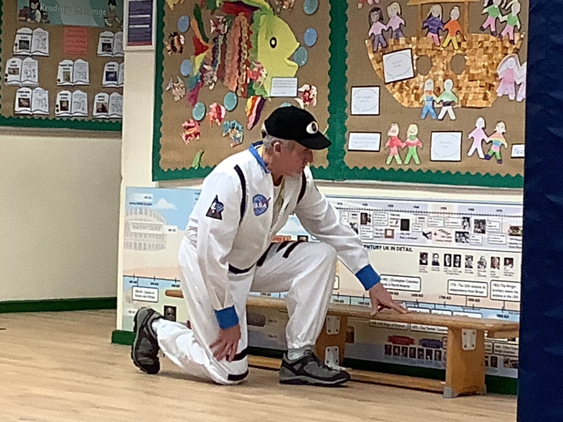 This morning we had a visit from Don Thomas. He was a pilot who worked for the Air force and flew very fast planes. Don was also an astronaut and had also travelled in space rockets.