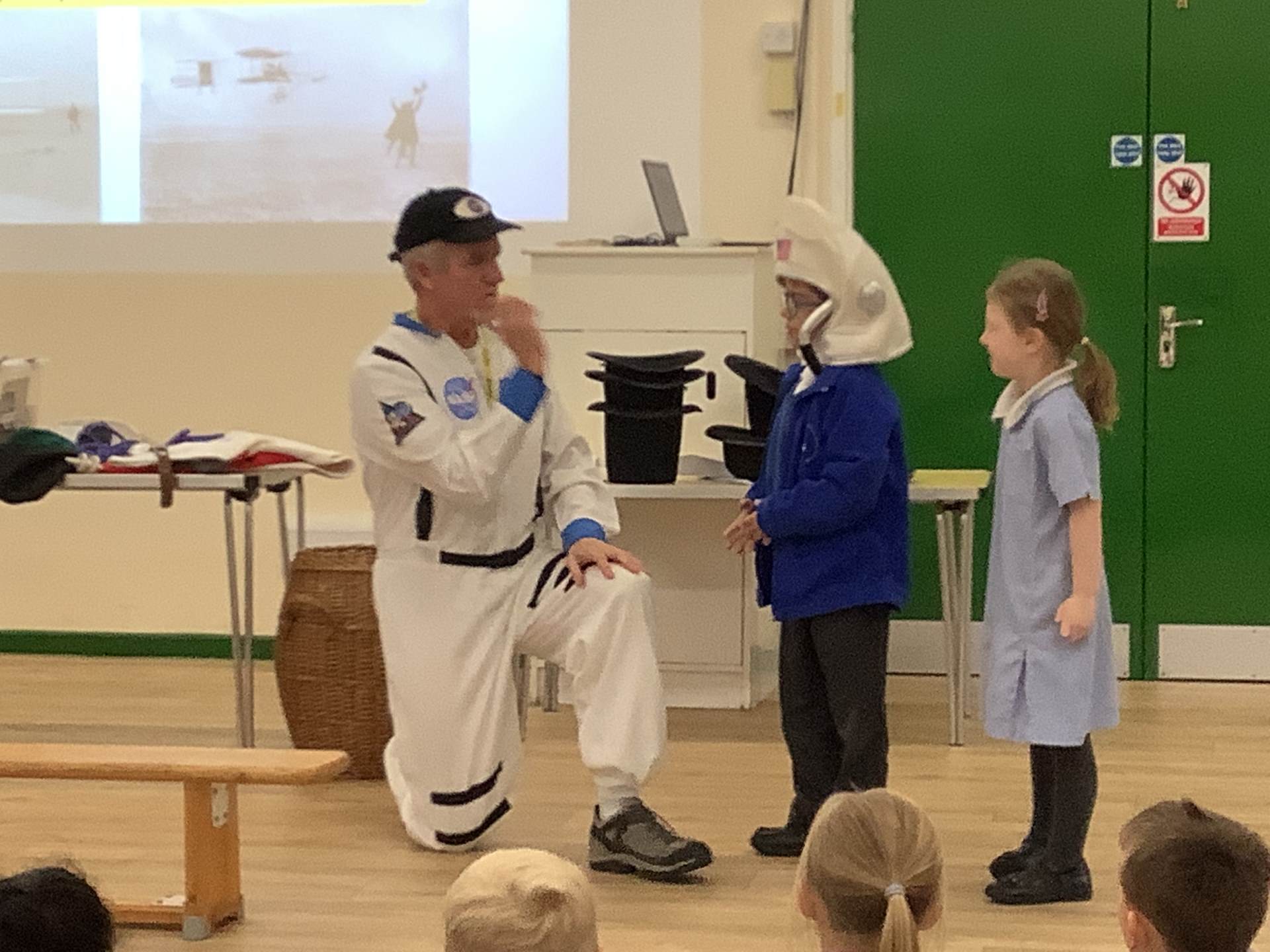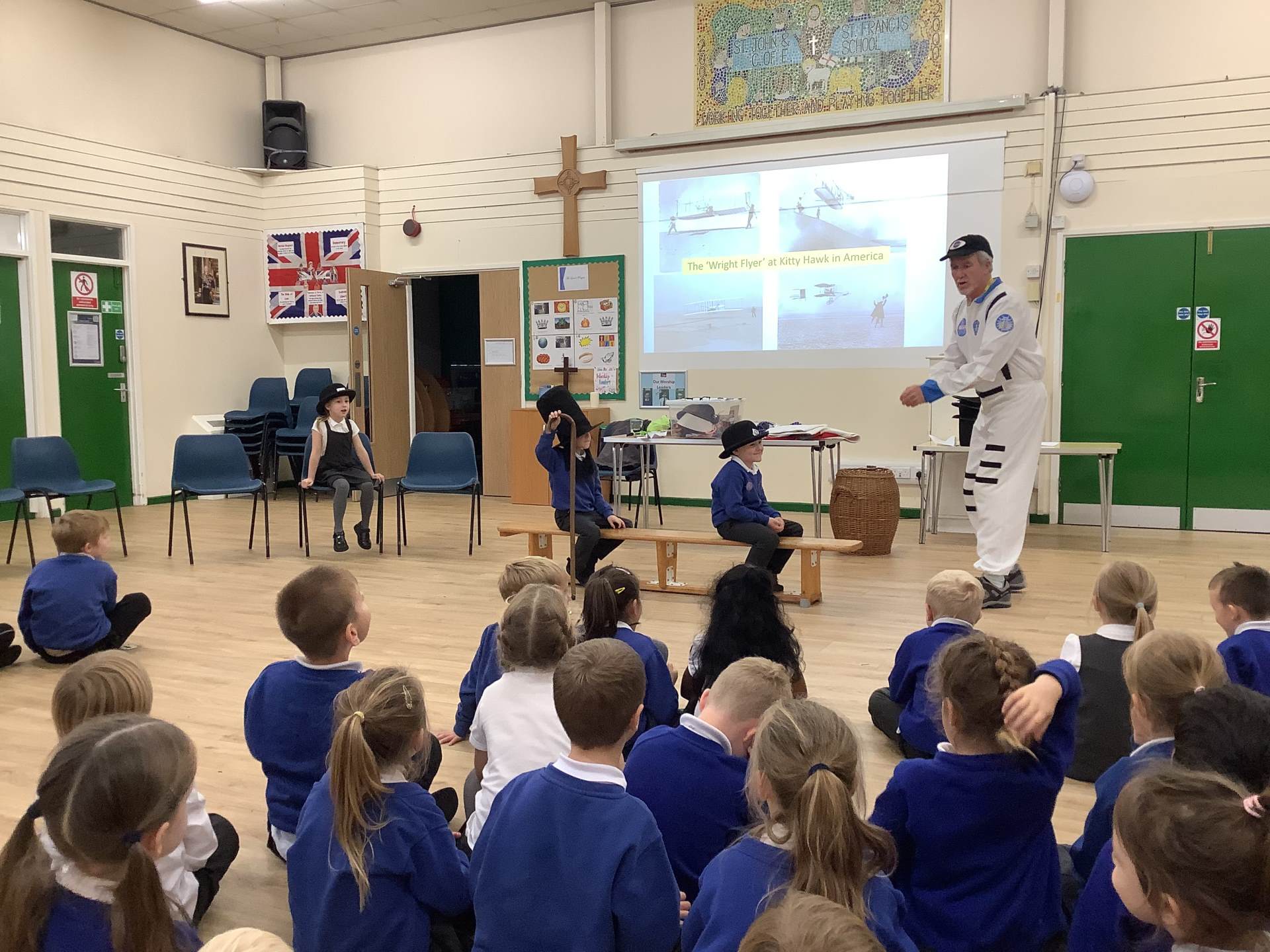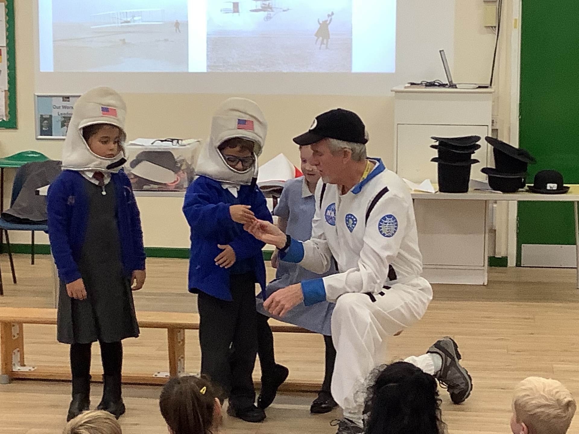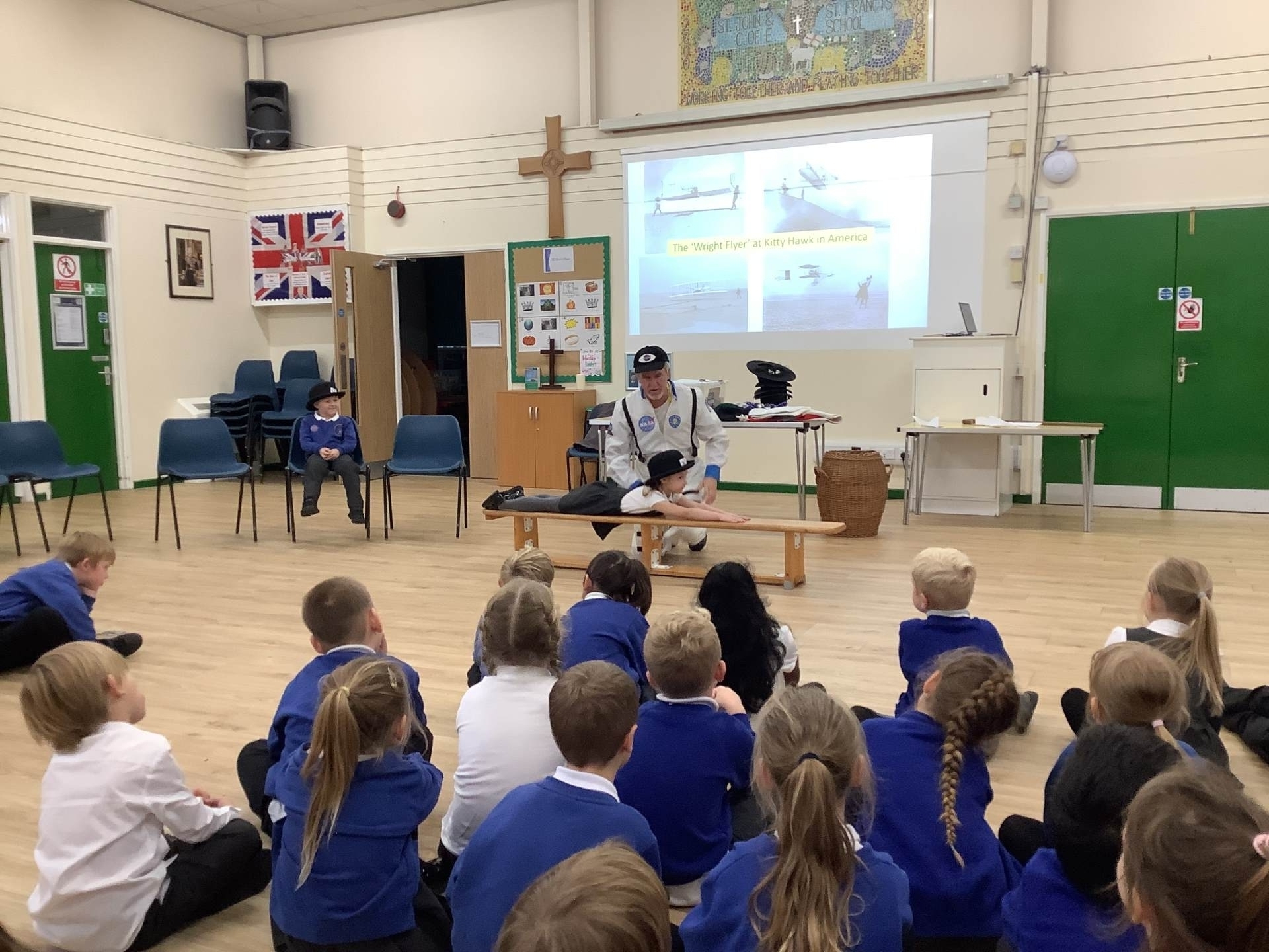 The children were able to get into character and help Don retell the life story of The Wright Brothers and to learn about first flight.