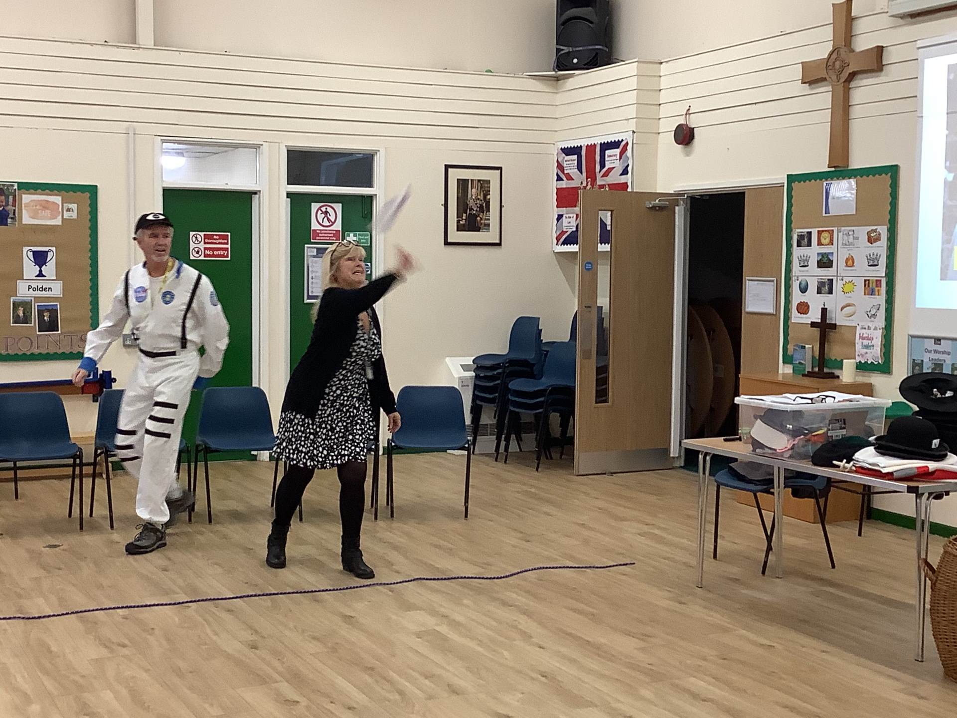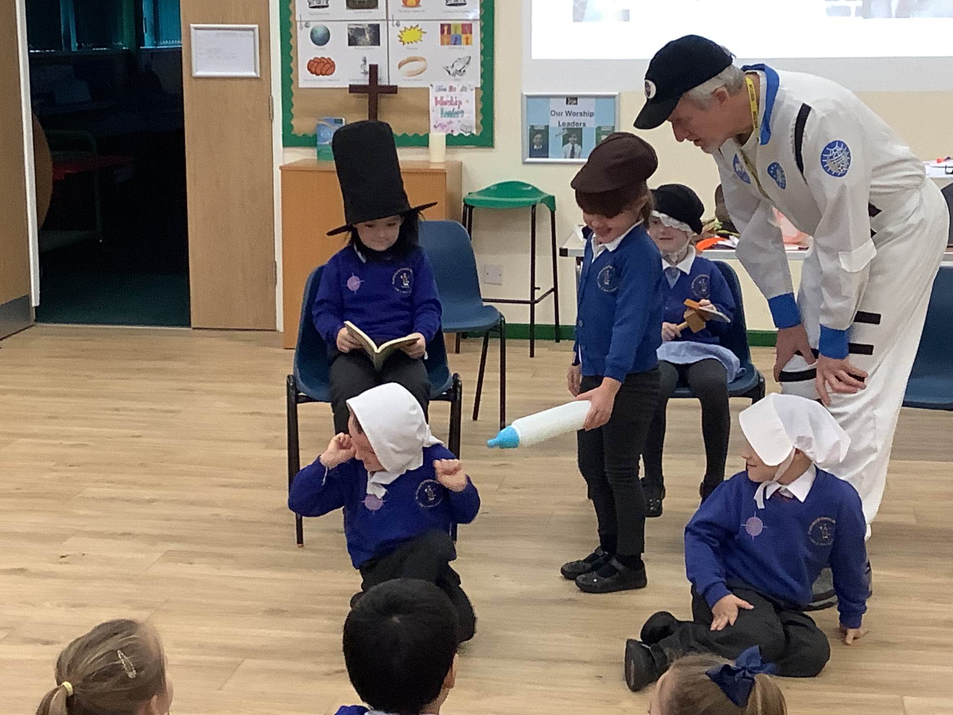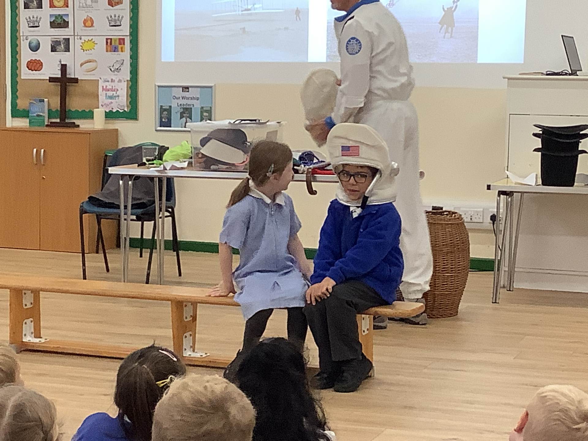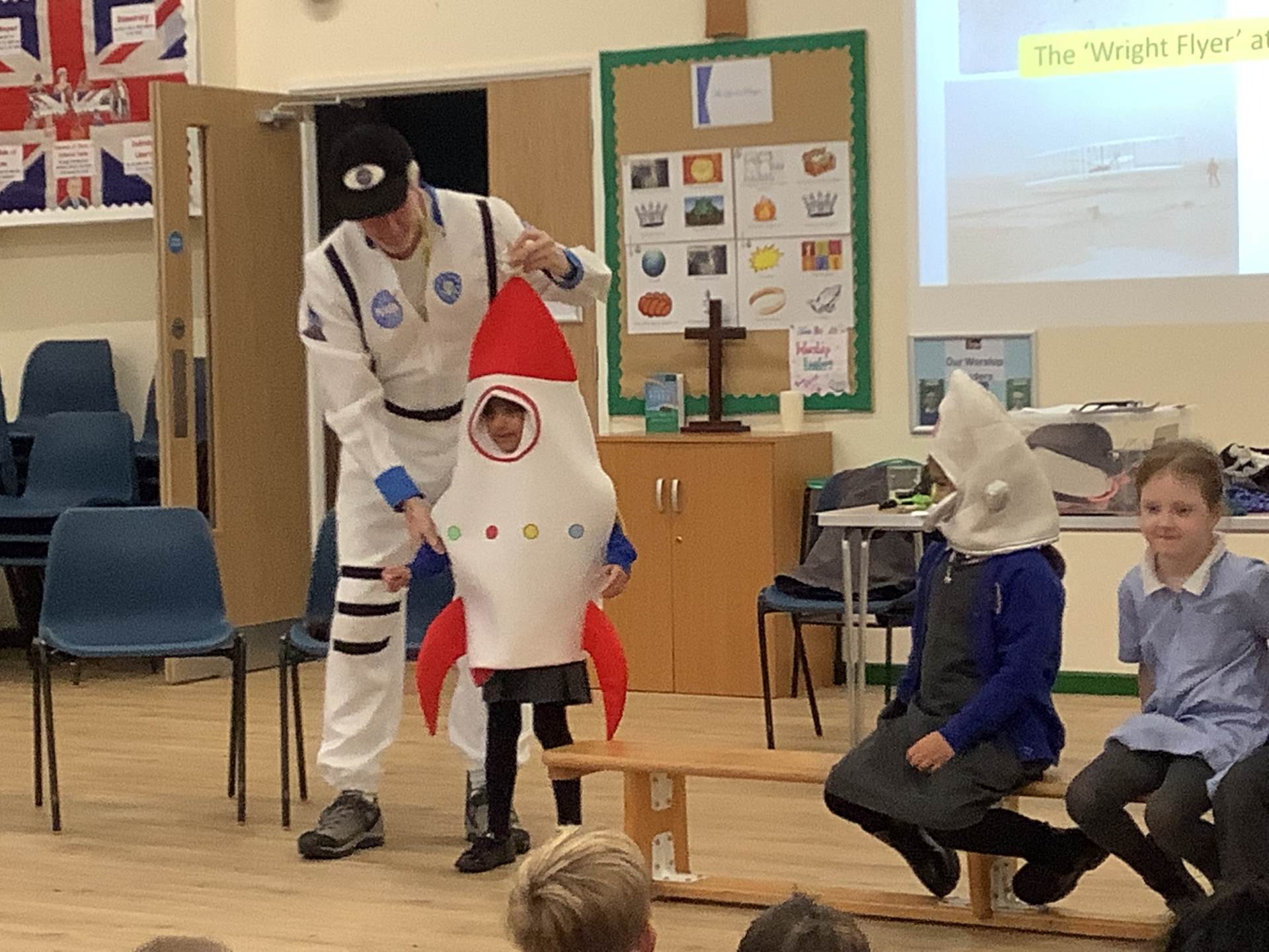 The children were able to get into character and help Don retell the life story of The Wright Brothers and to learn about first flight.