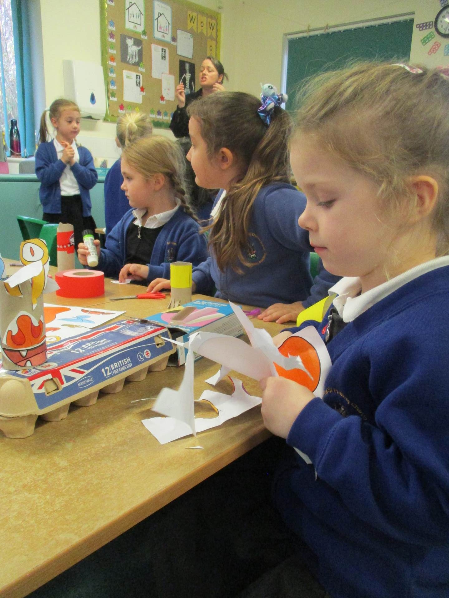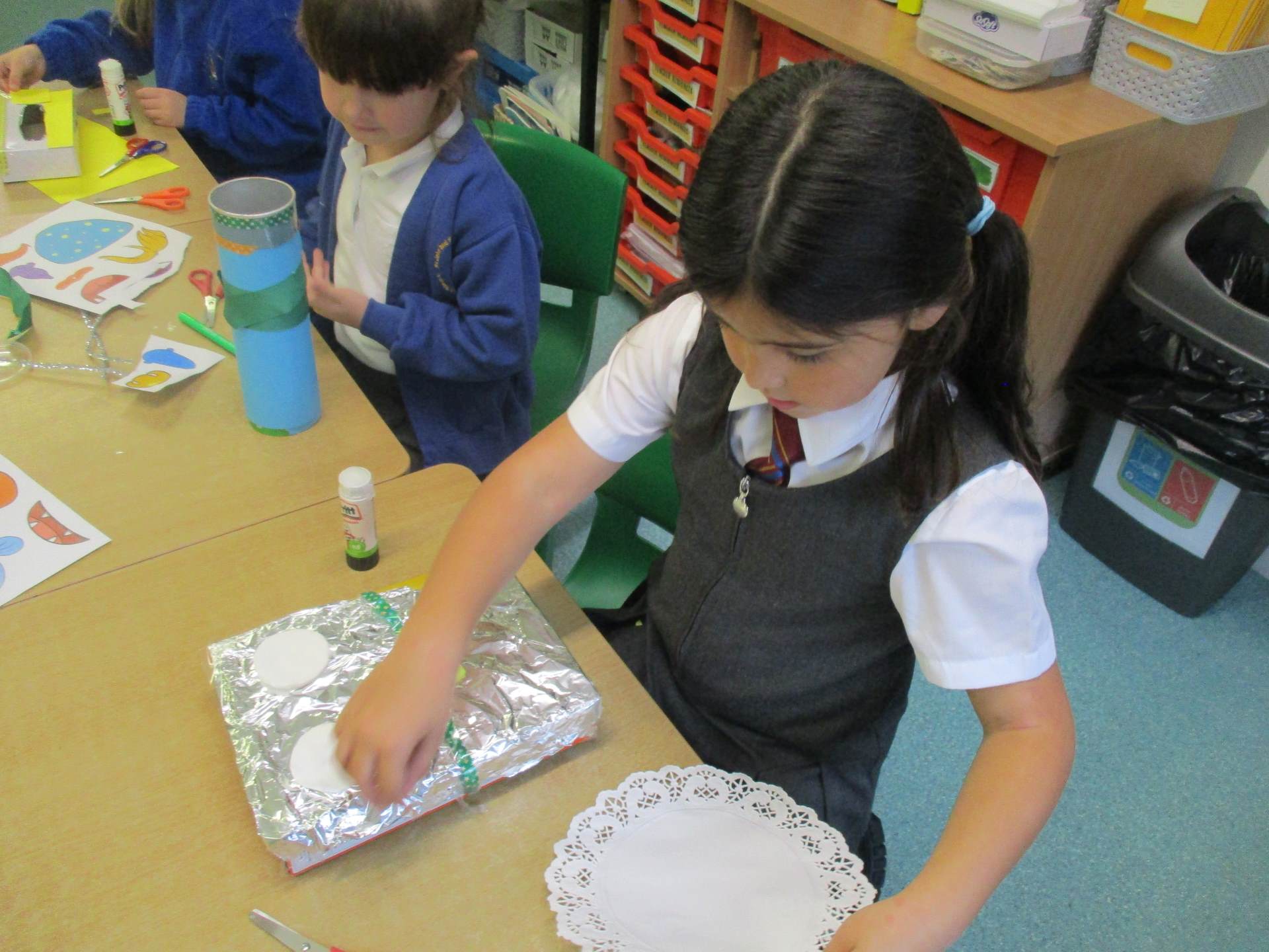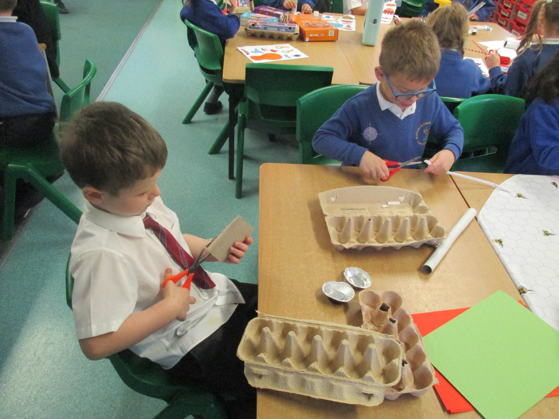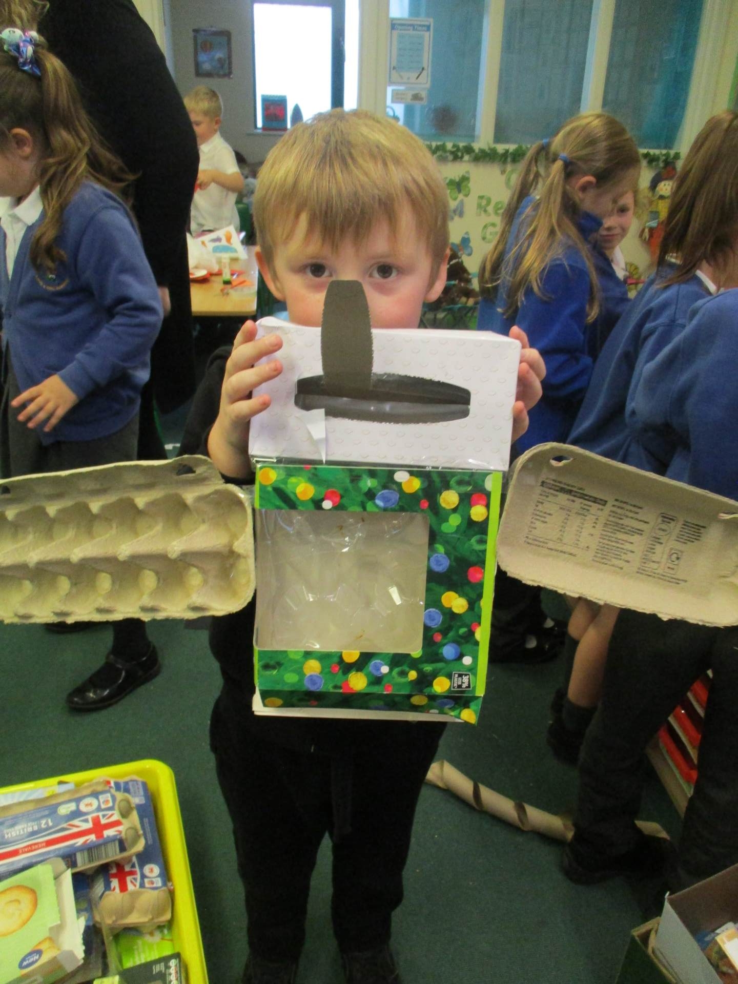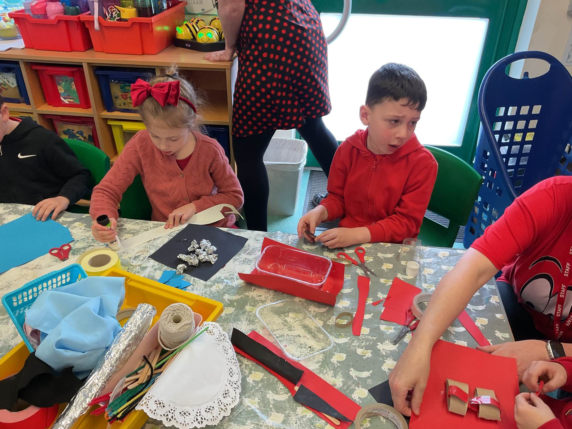 Today we listened to the story of Where the Wild Things Are. We then looked at some pictures of different cartoon monsters and agreed that a monster was quite unique and could have all kinds of different features. look at the fantastic monsters that we have created today using recyclable materials.