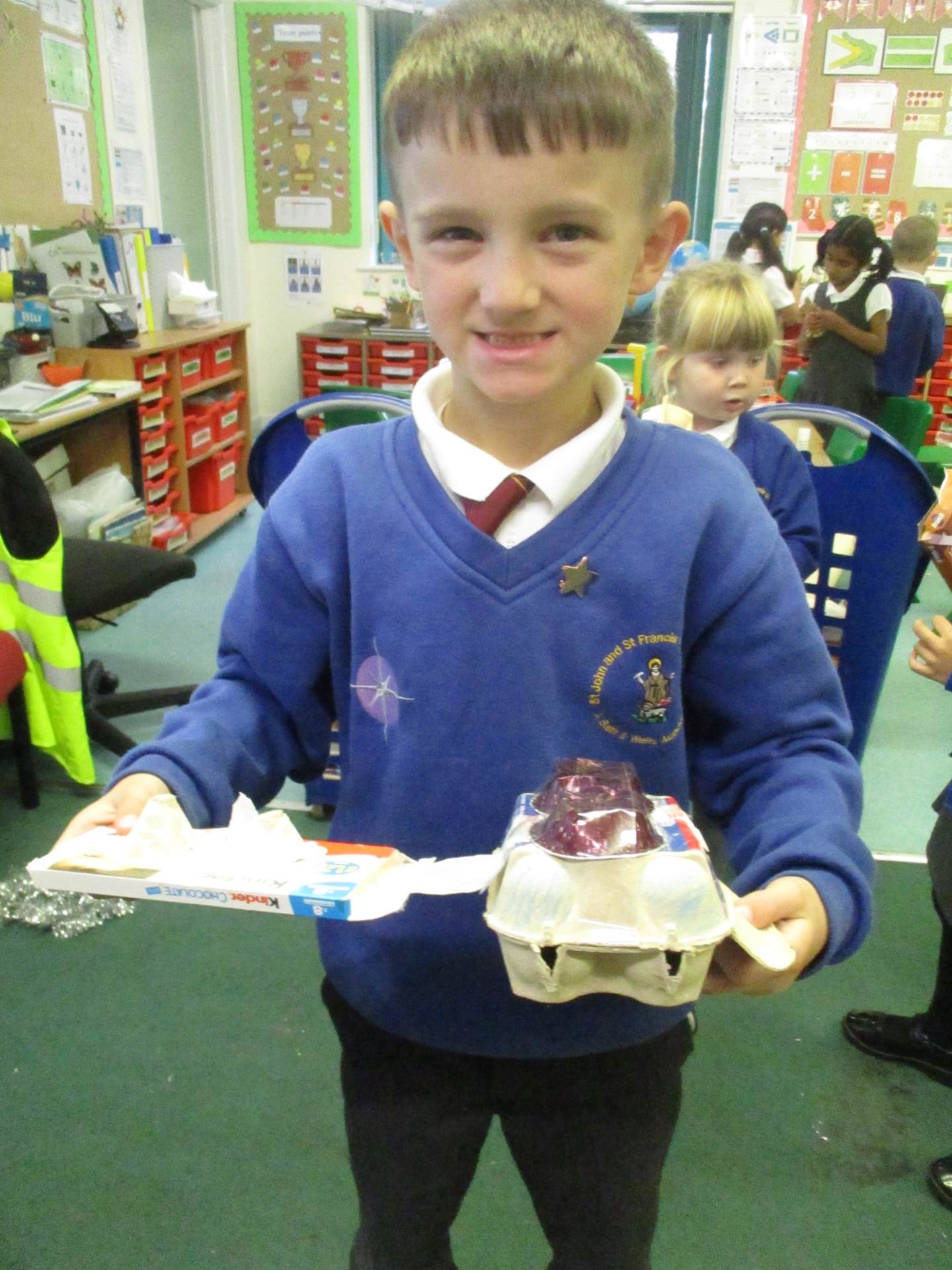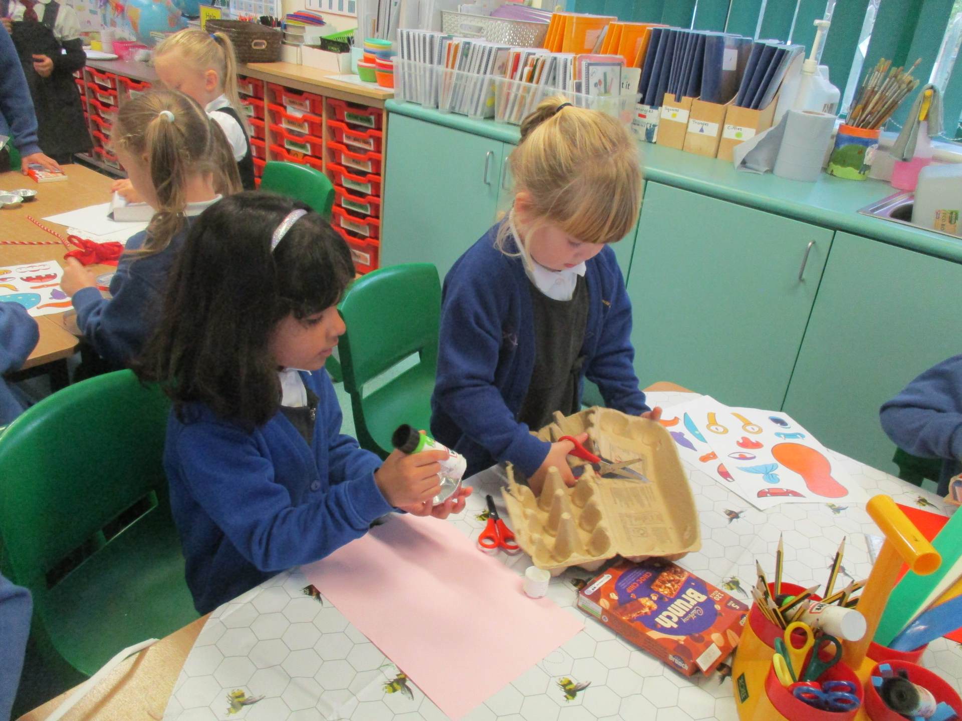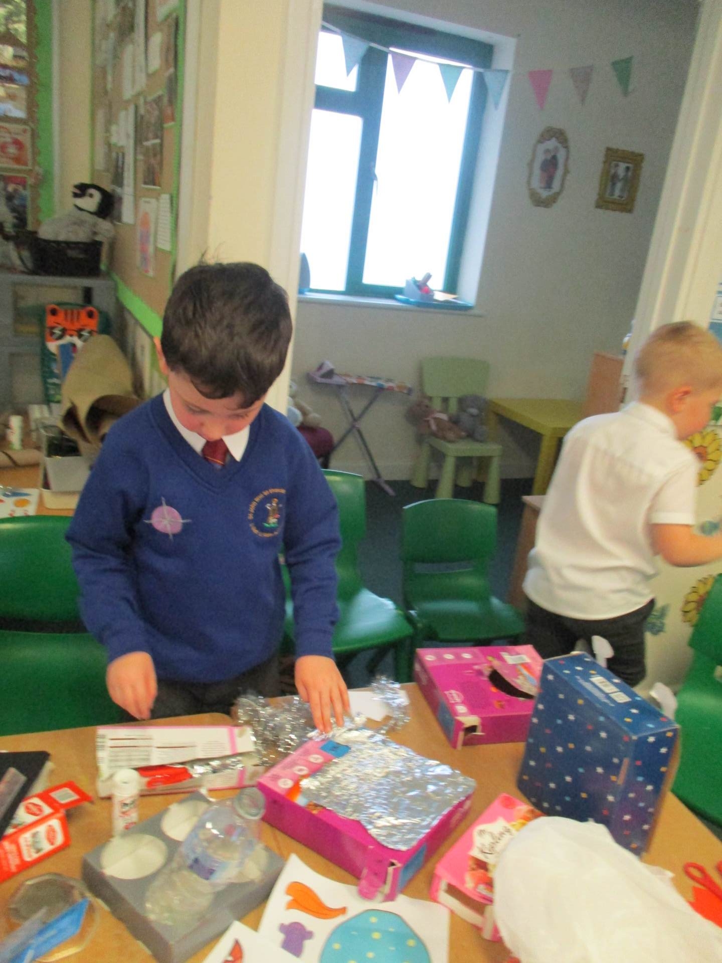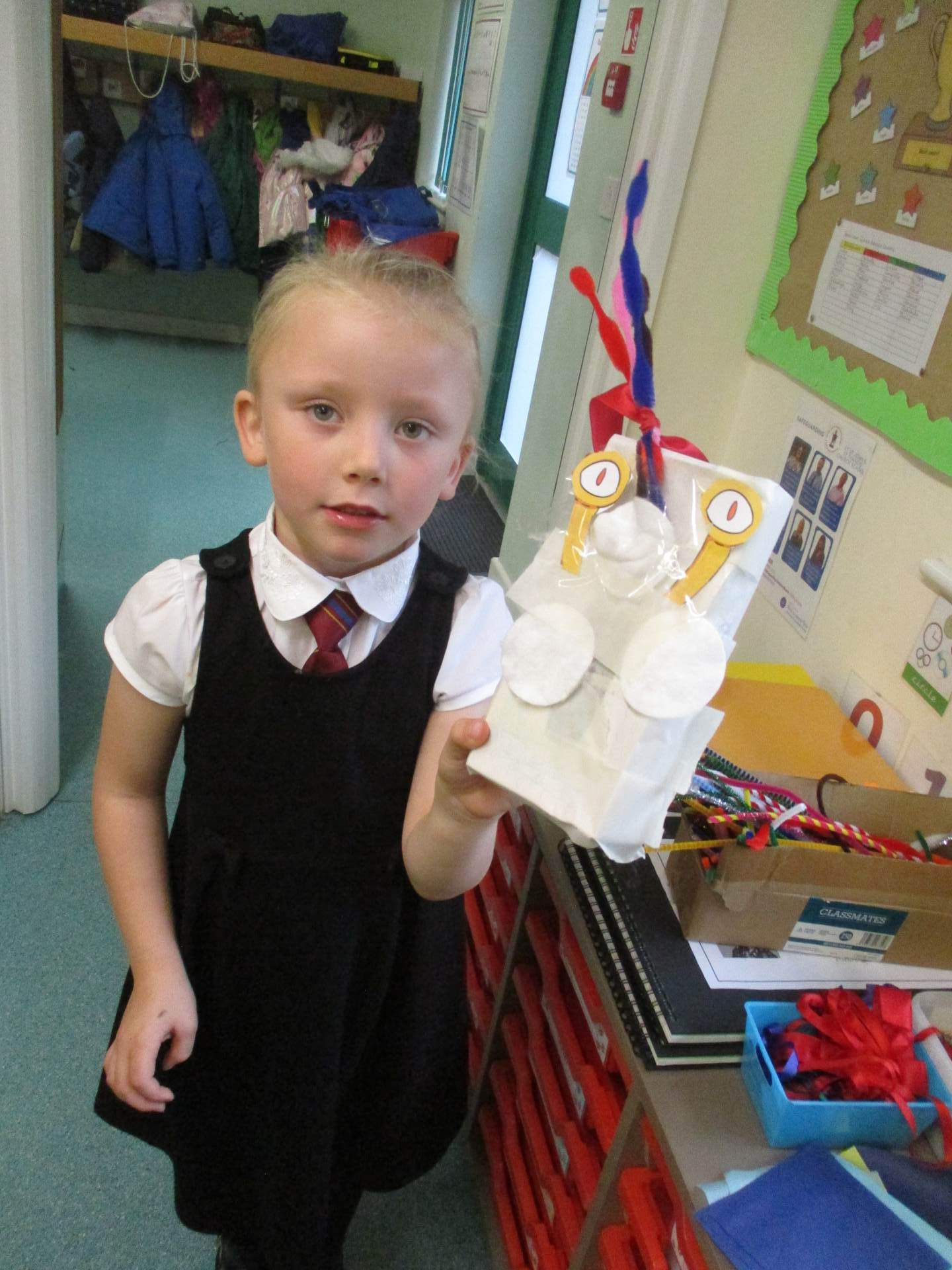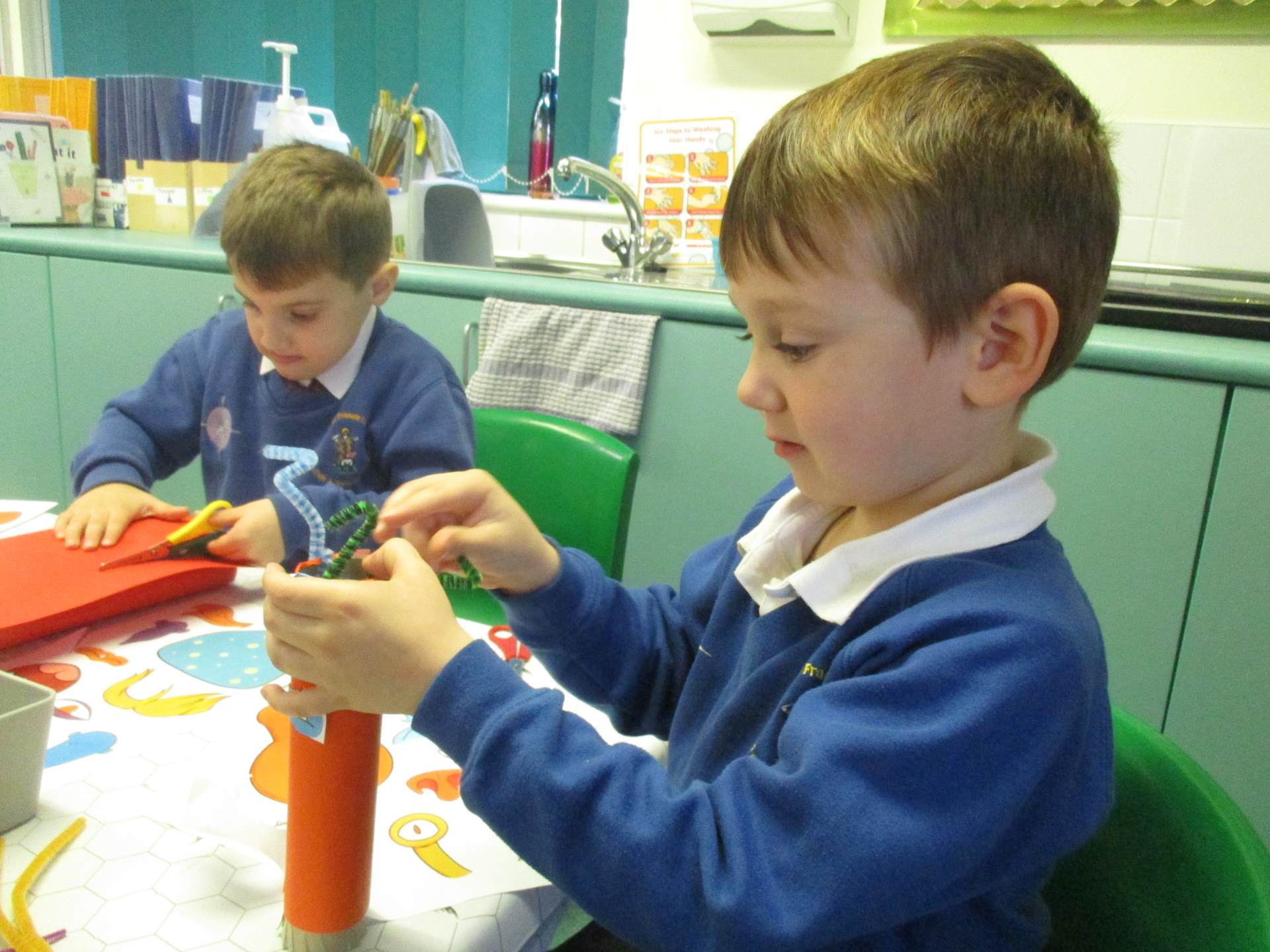 Today we listened to the story of Where the Wild Things Are. We then looked at some pictures of different cartoon monsters and agreed that a monster was quite unique and could have all kinds of different features. look at the fantastic monsters that we have created today using recyclable materials.