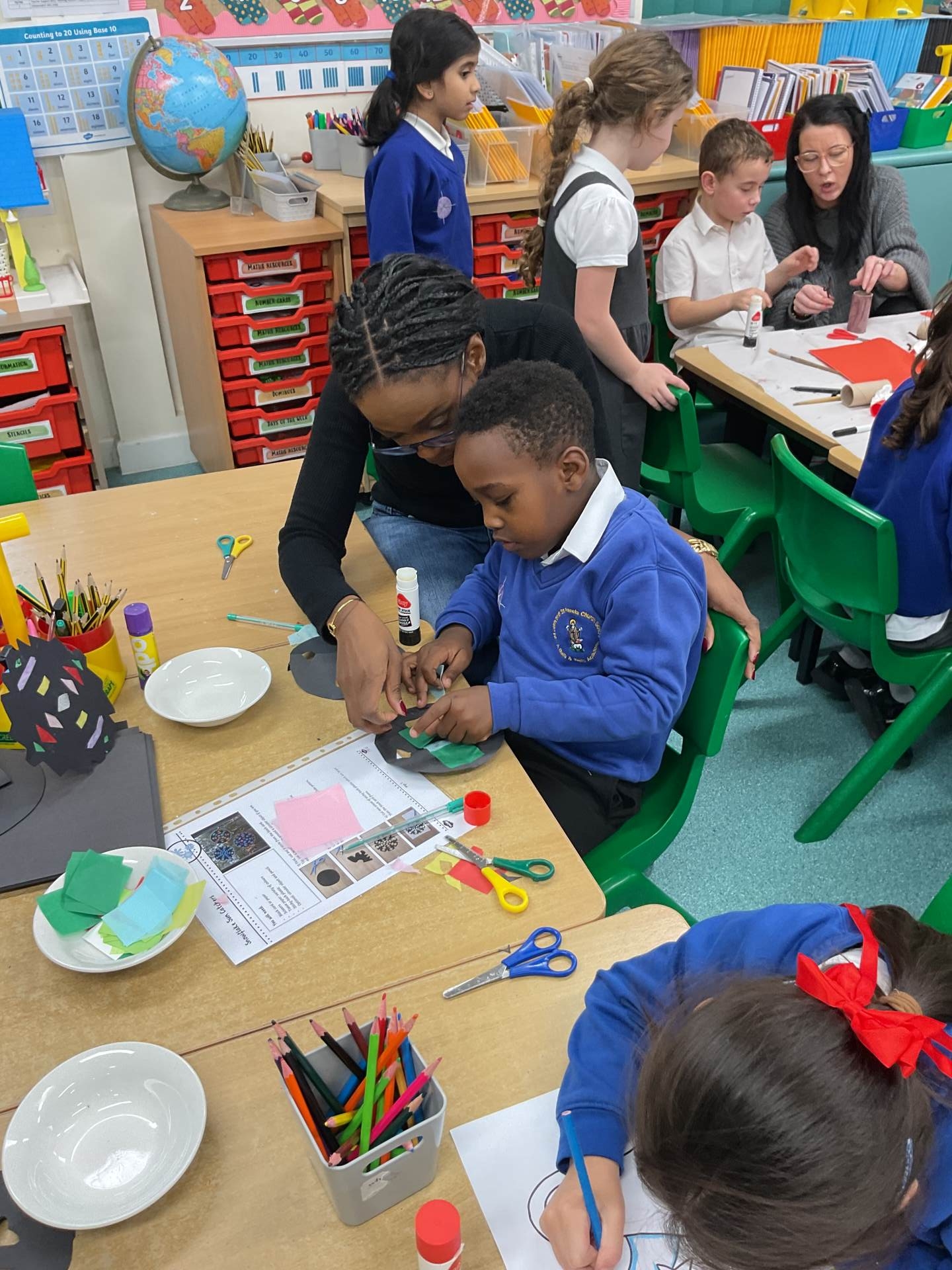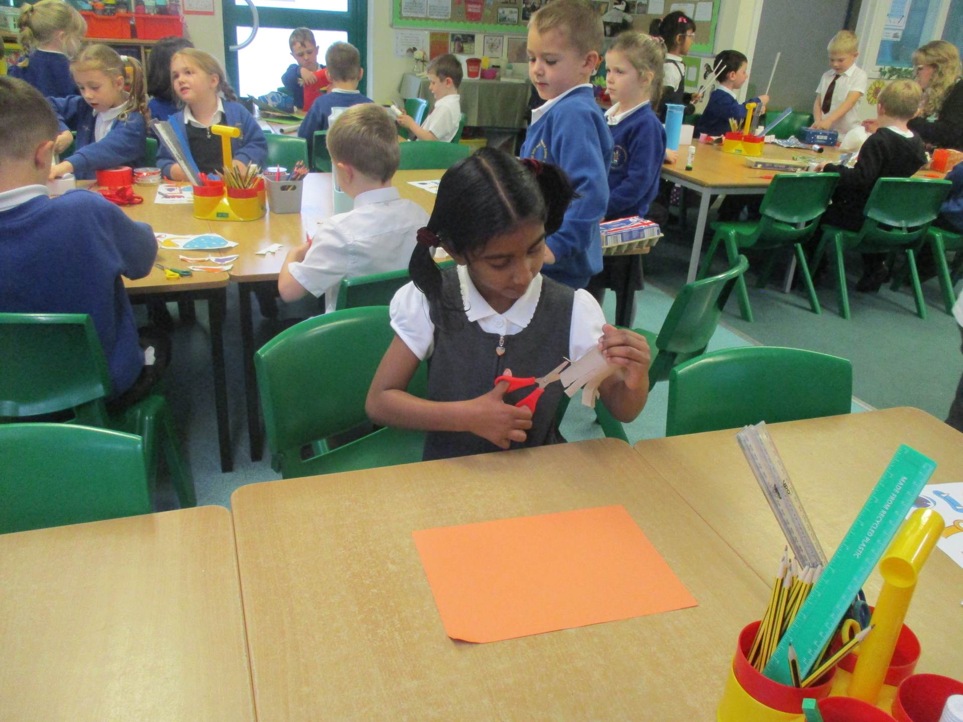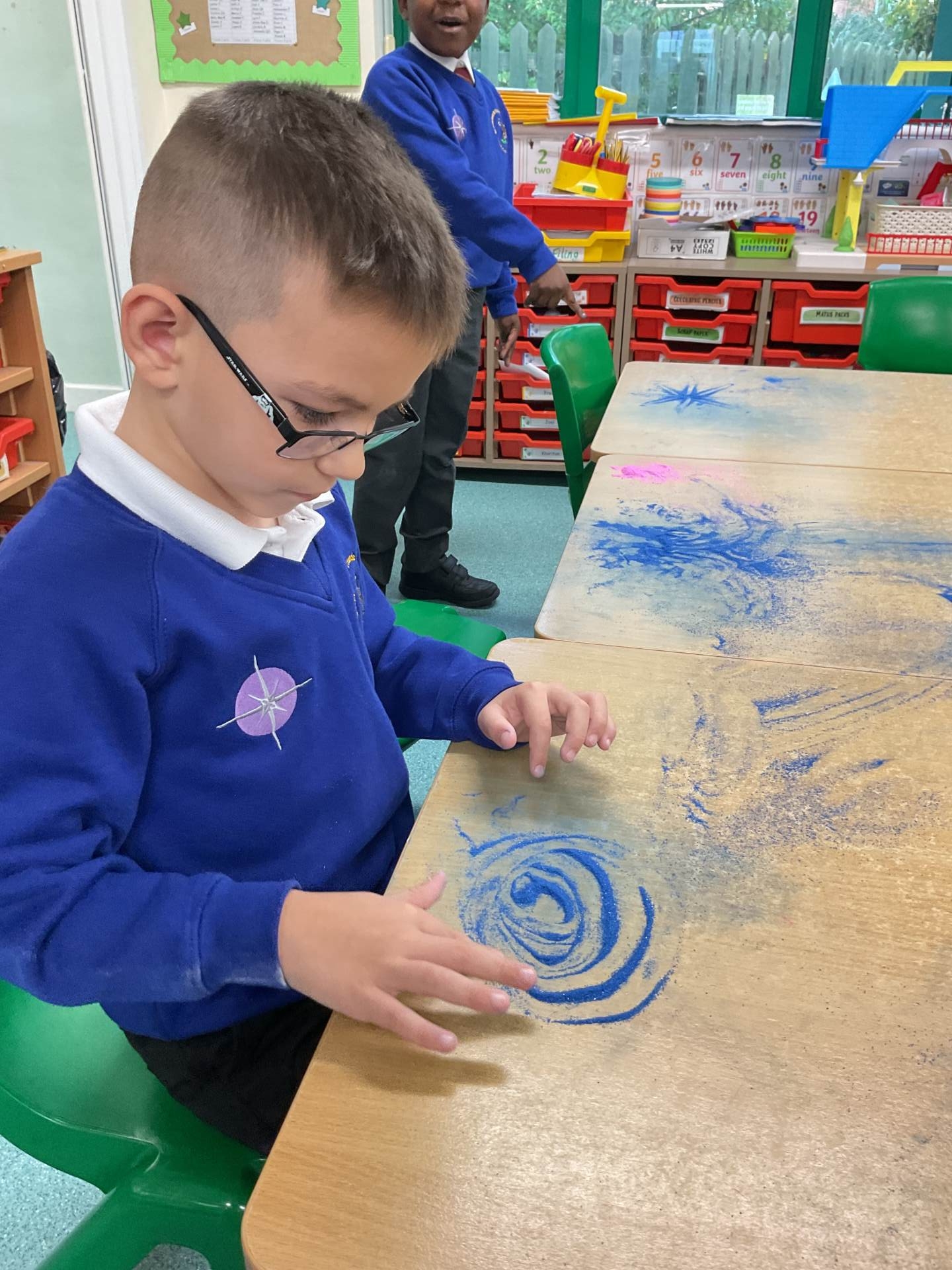 We learnt lots from her fantastic visit. We discovered that it is celebrated a little bit like Christmas where they have a lovely family meal, dress in their best clothes ( Mrs Malhi's dress looked very different to the clothes that we wear), they share sweets and gifts, they decorate their homes and even have fireworks. We were very lucky as we got to make our own Diva lamps to take home. We then created some of our own pictures and patterns using some Rangoli powder and Mrs Edwards and Mrs Leach even had a Mendi pattern drawn on their hands. Mrs Malhi even gave us some sweet treats and the staff some freshly backed spring rolls and samosas which tasted delicious.