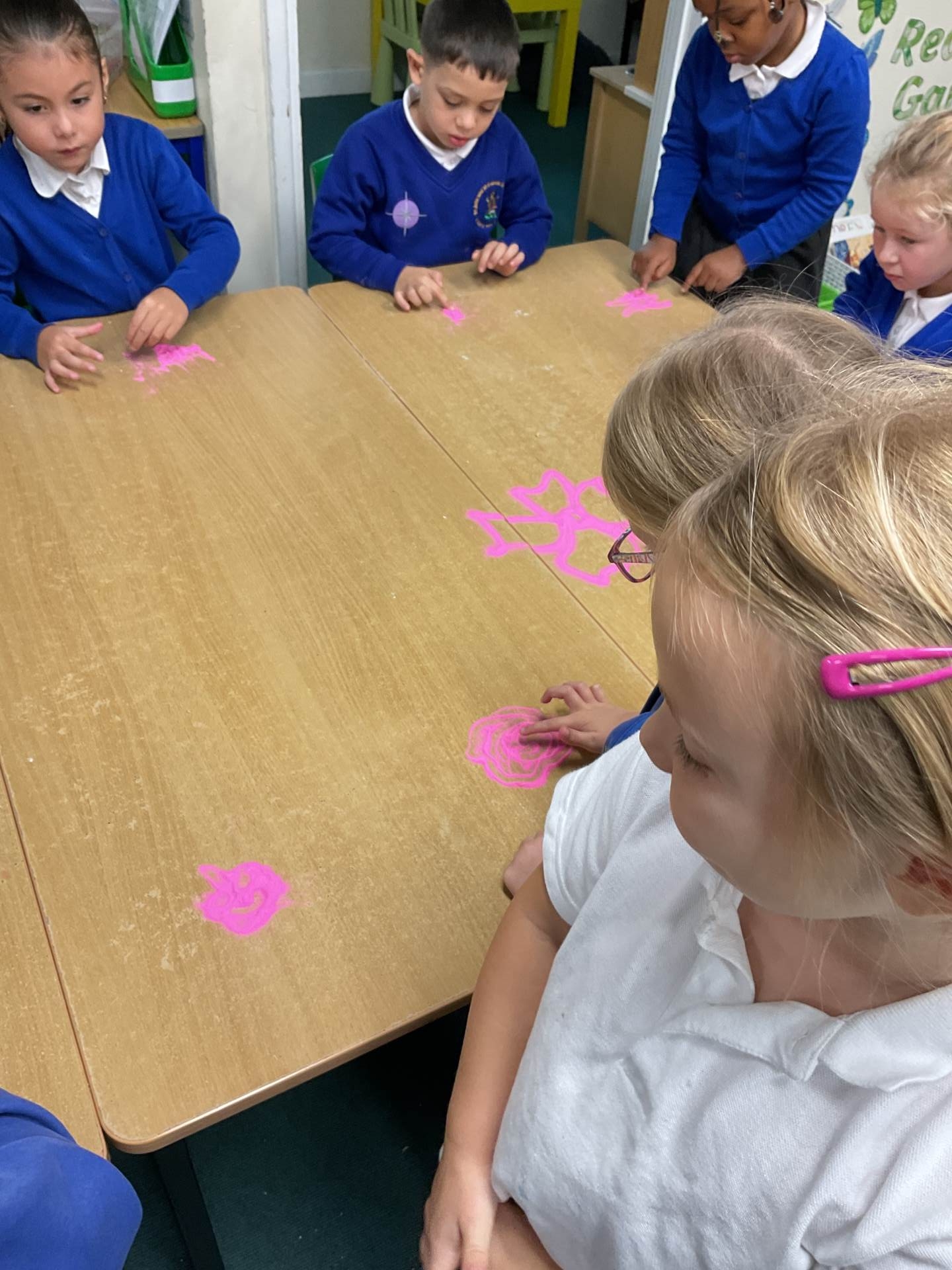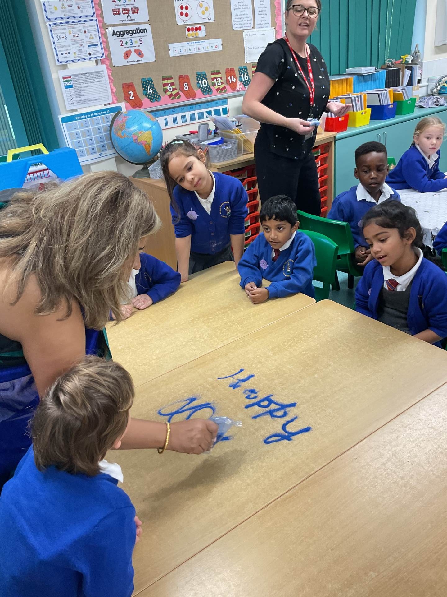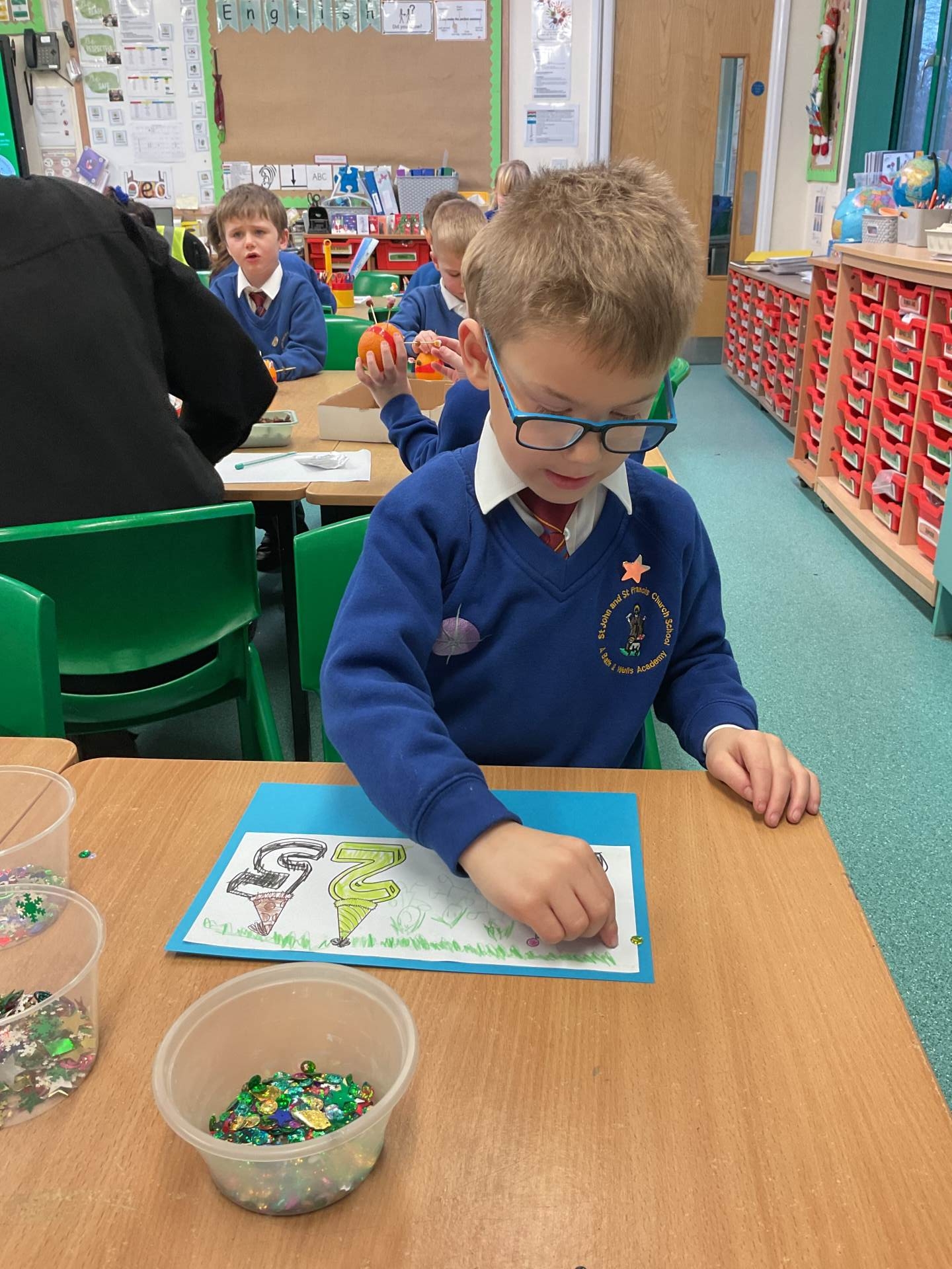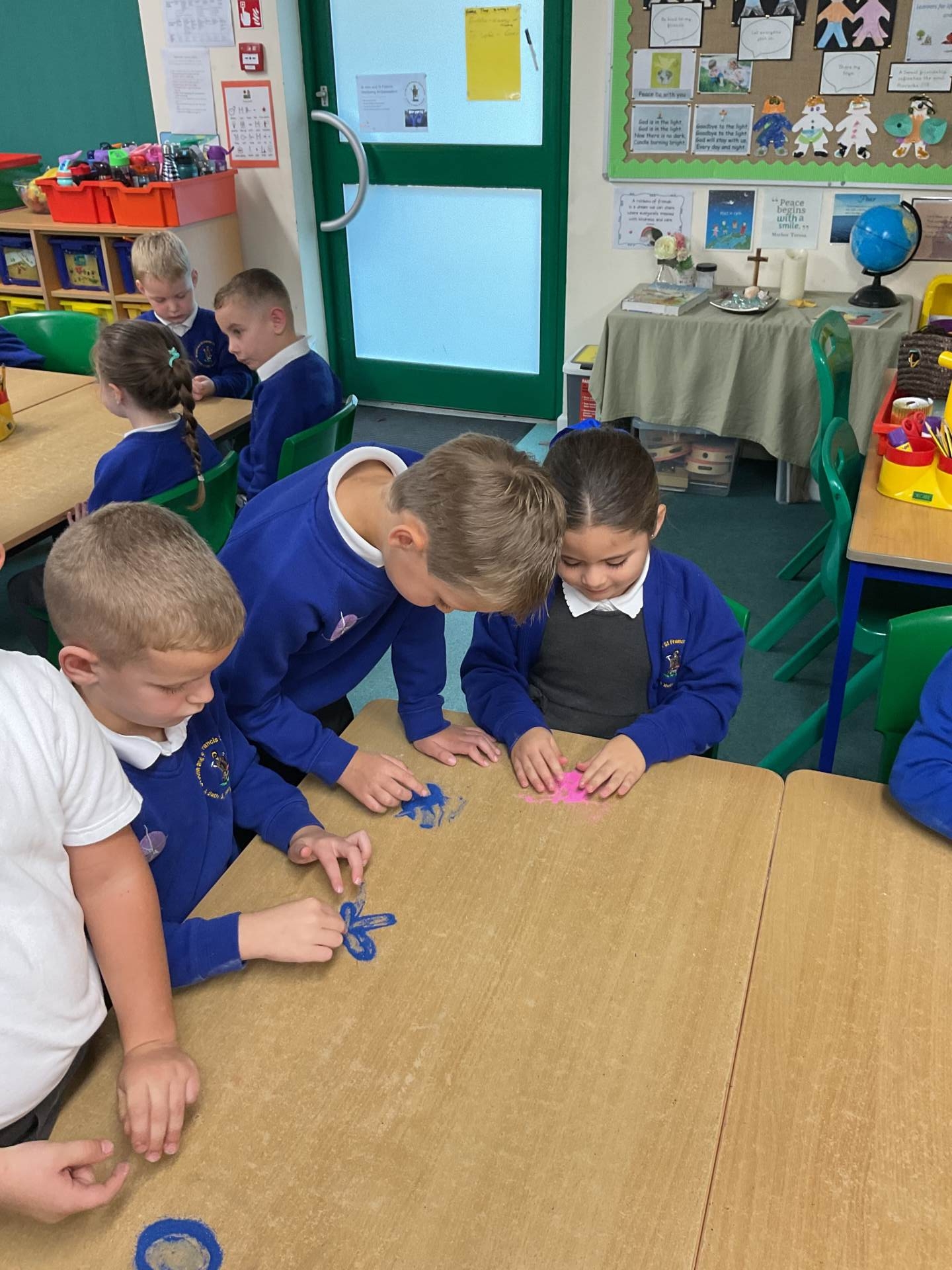 We learnt lots from her fantastic visit. We discovered that it is celebrated a little bit like Christmas where they have a lovely family meal, dress in their best clothes ( Mrs Malhi's dress looked very different to the clothes that we wear), they share sweets and gifts, they decorate their homes and even have fireworks. We were very lucky as we got to make our own Diva lamps to take home. We then created some of our own pictures and patterns using some Rangoli powder and Mrs Edwards and Mrs Leach even had a Mendi pattern drawn on their hands. Mrs Malhi even gave us some sweet treats and the staff some freshly backed spring rolls and samosas which tasted delicious.