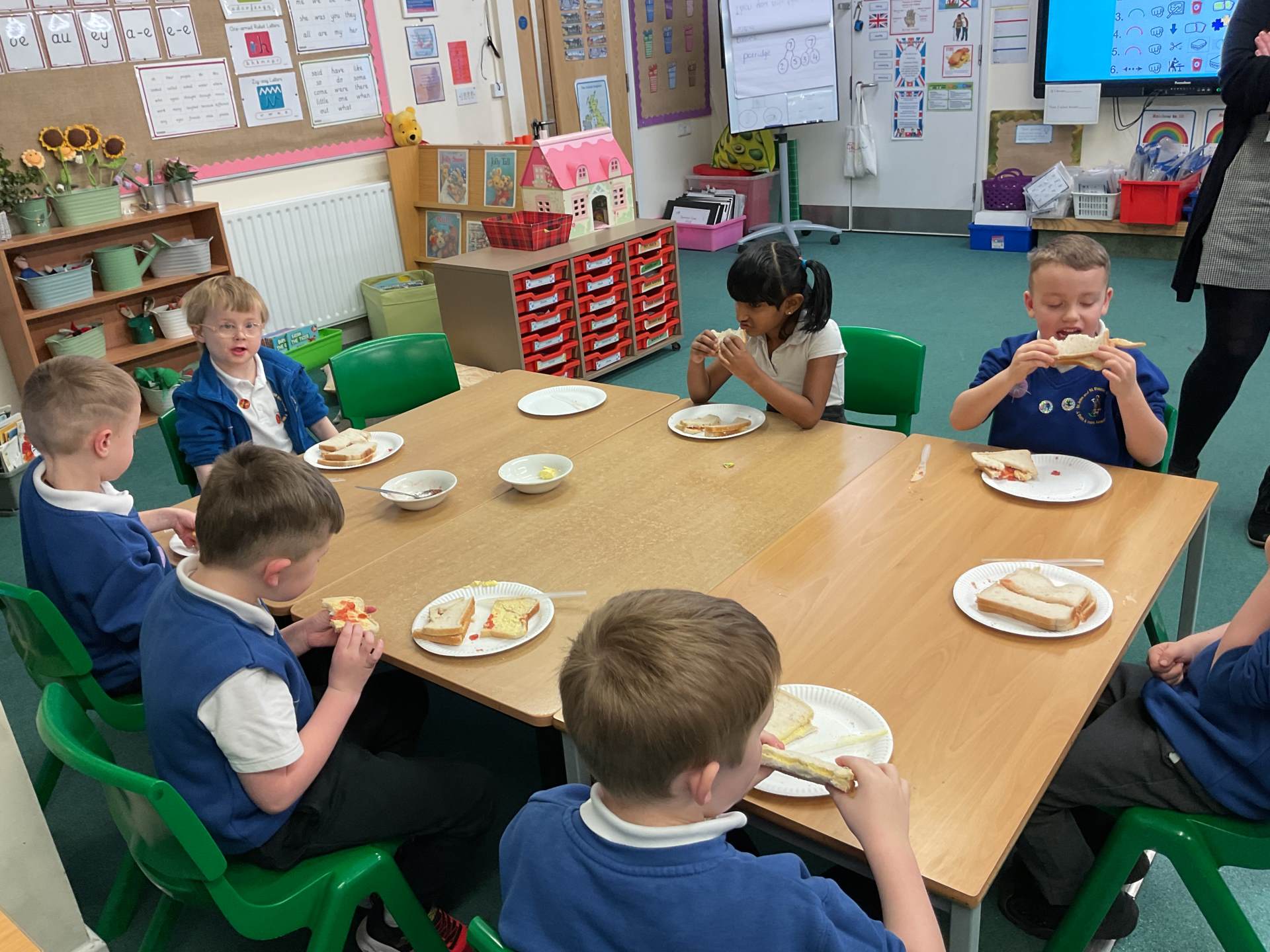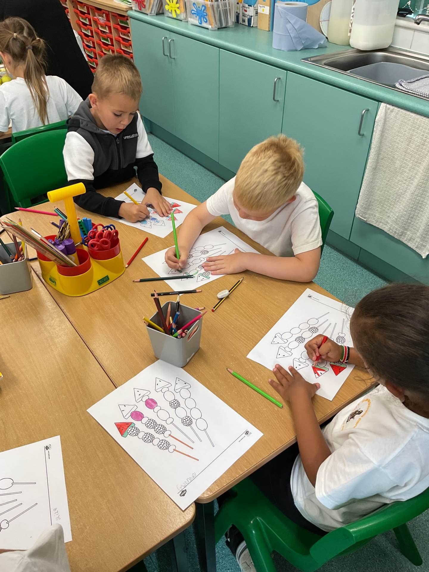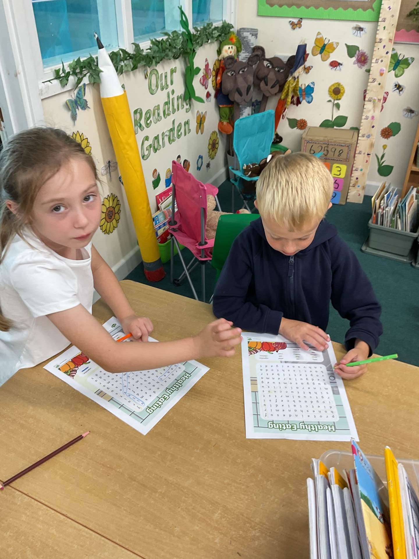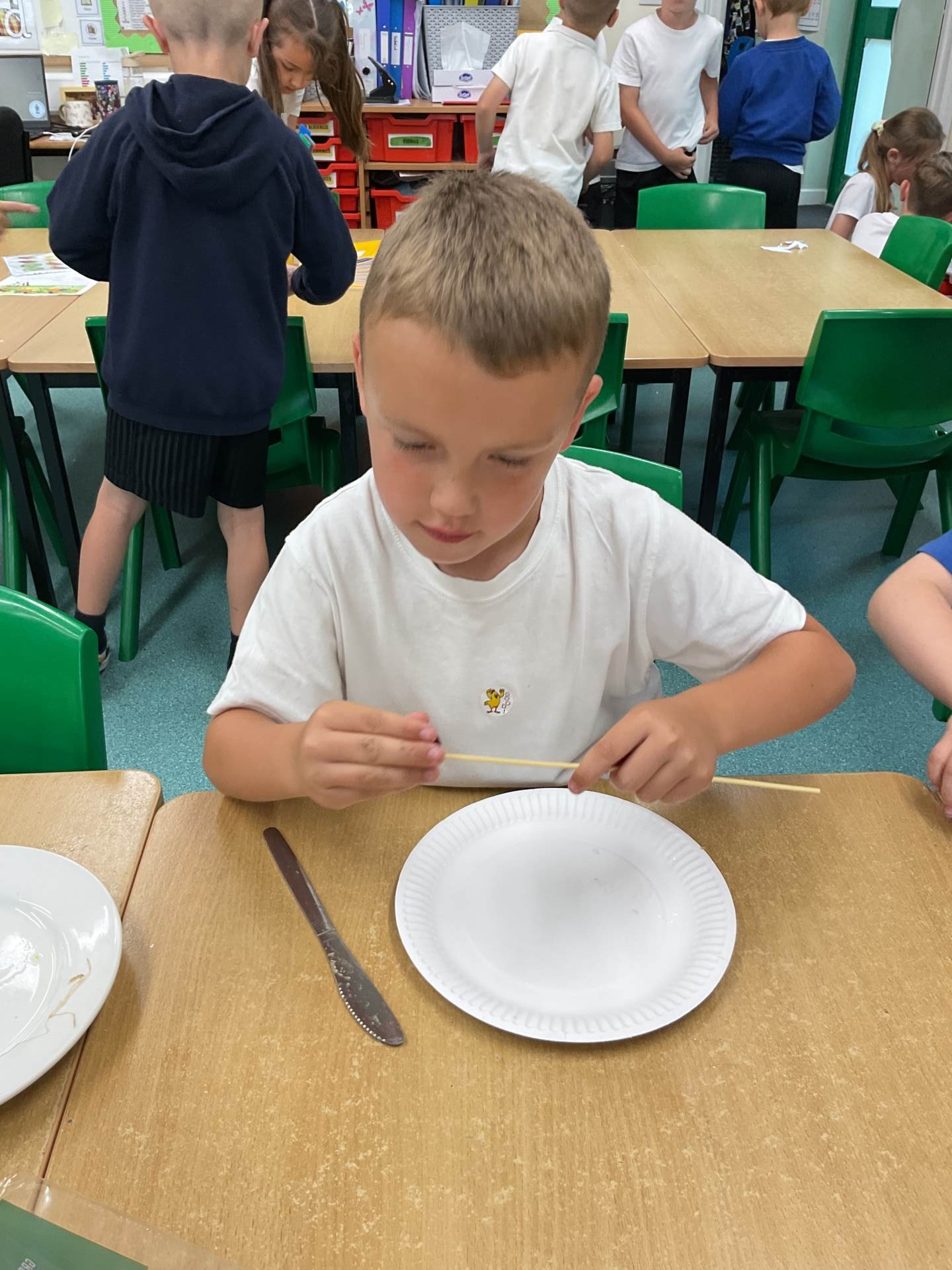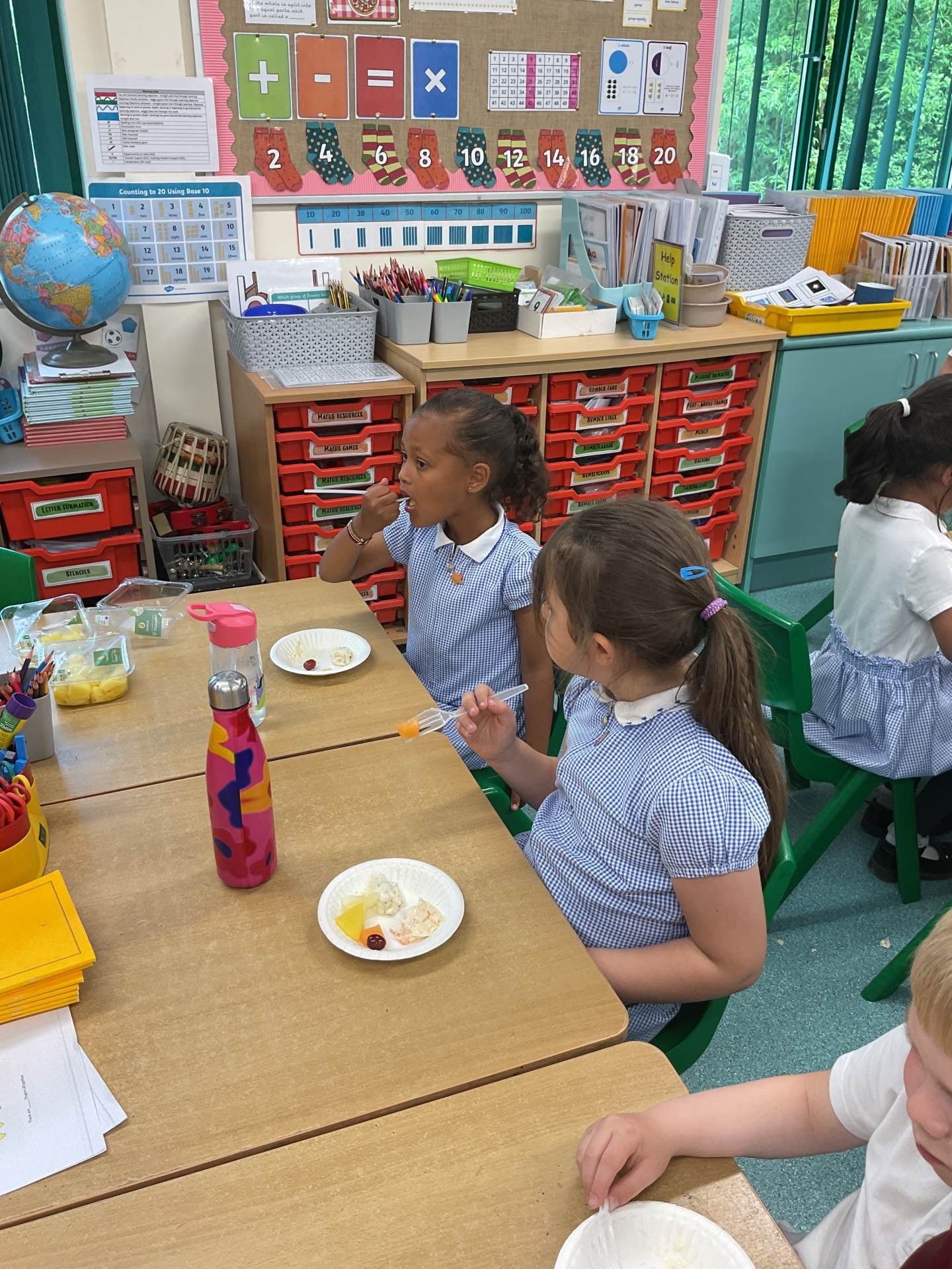This morning in Sparrow class we have been thinking about healthy eating and how the different food groups support different parts of our bodies. We then made our own fruit kebabs. They tasted delicious. We also engaged in a range of healthy eating activities.