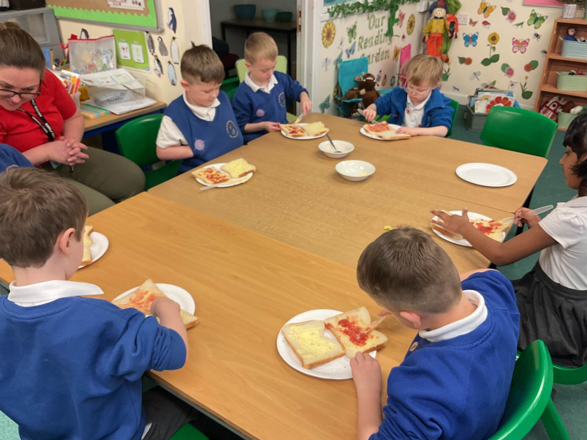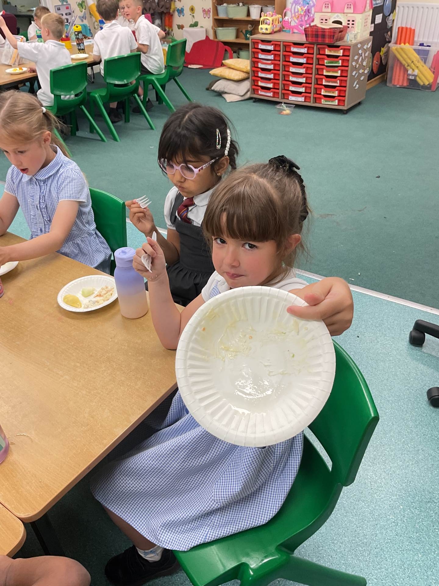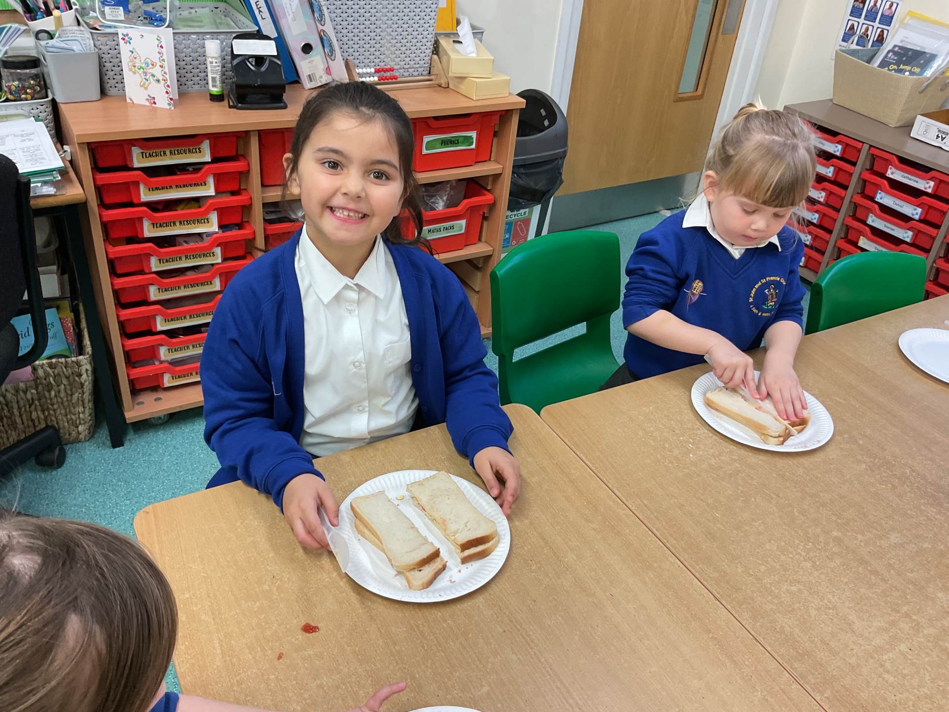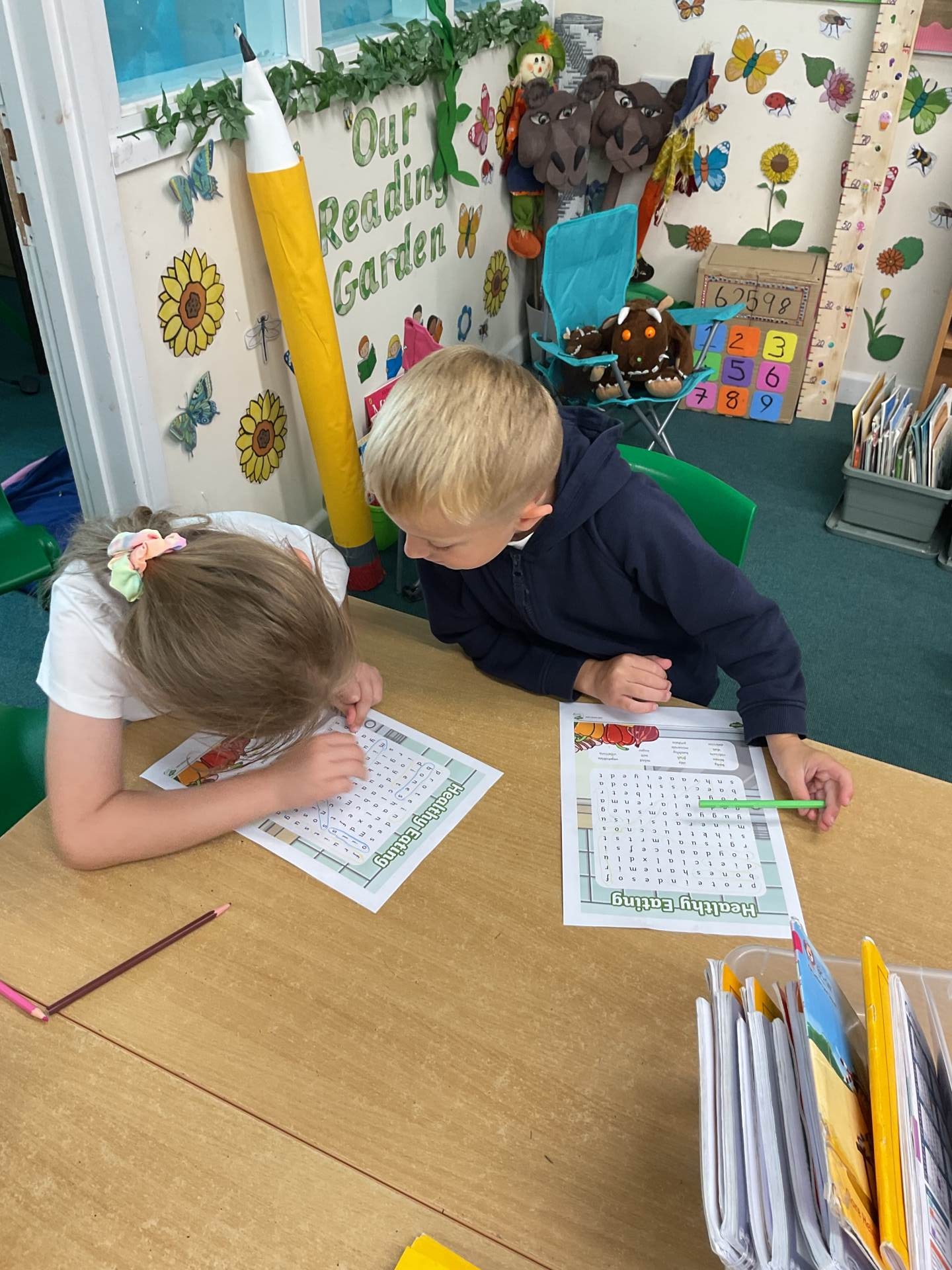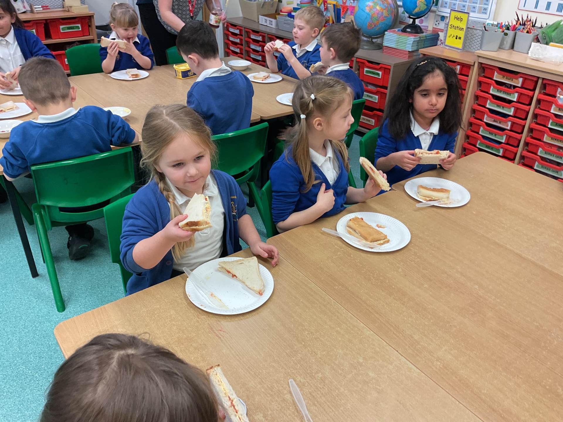 This morning in Sparrow class we have been thinking about healthy eating and how the different food groups support different parts of our bodies. We then made our own fruit kebabs. They tasted delicious. We also engaged in a range of healthy eating activities.