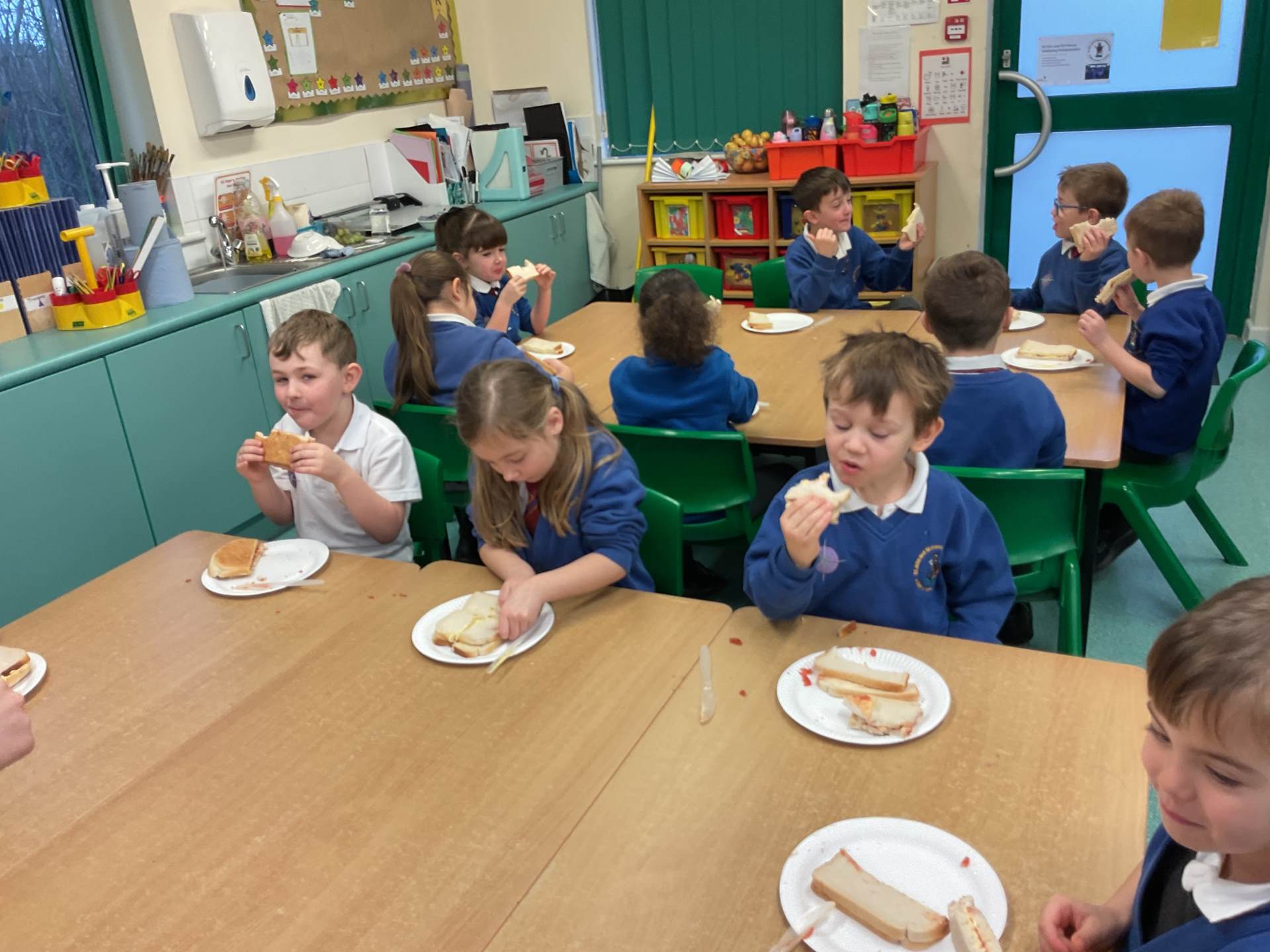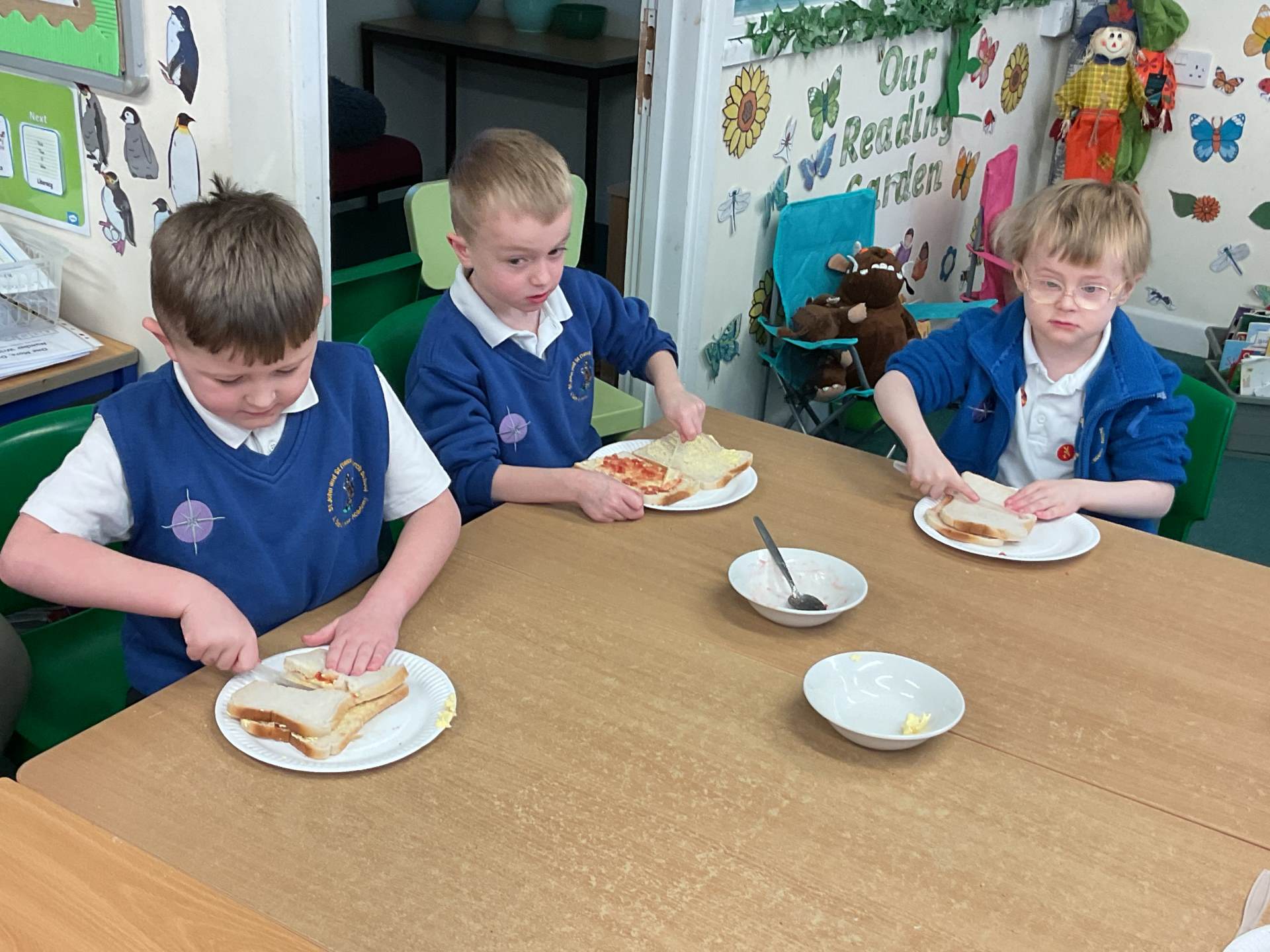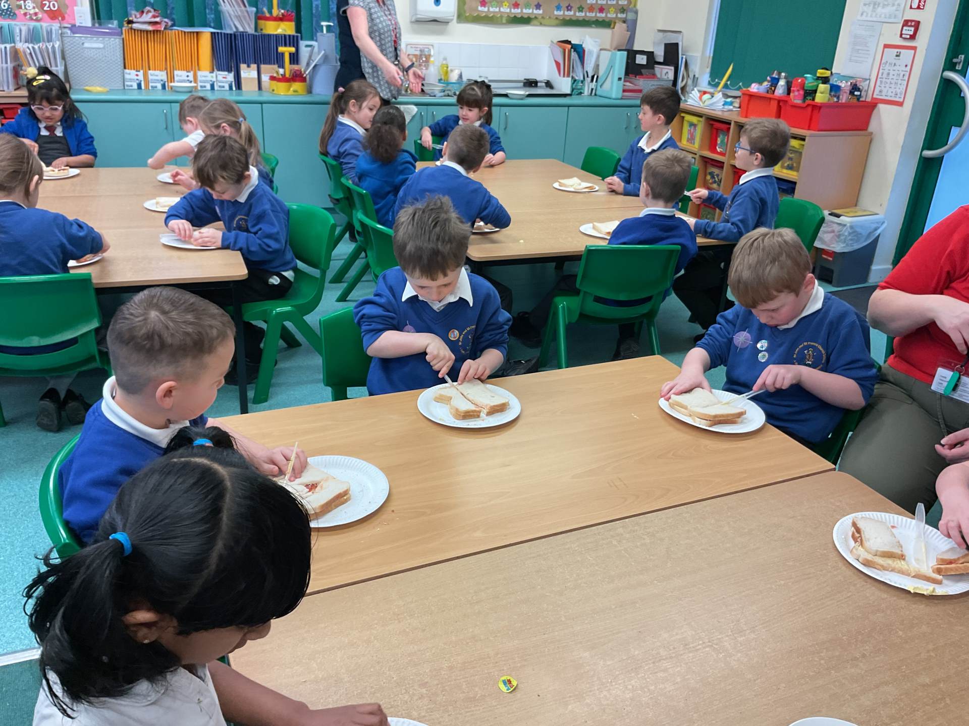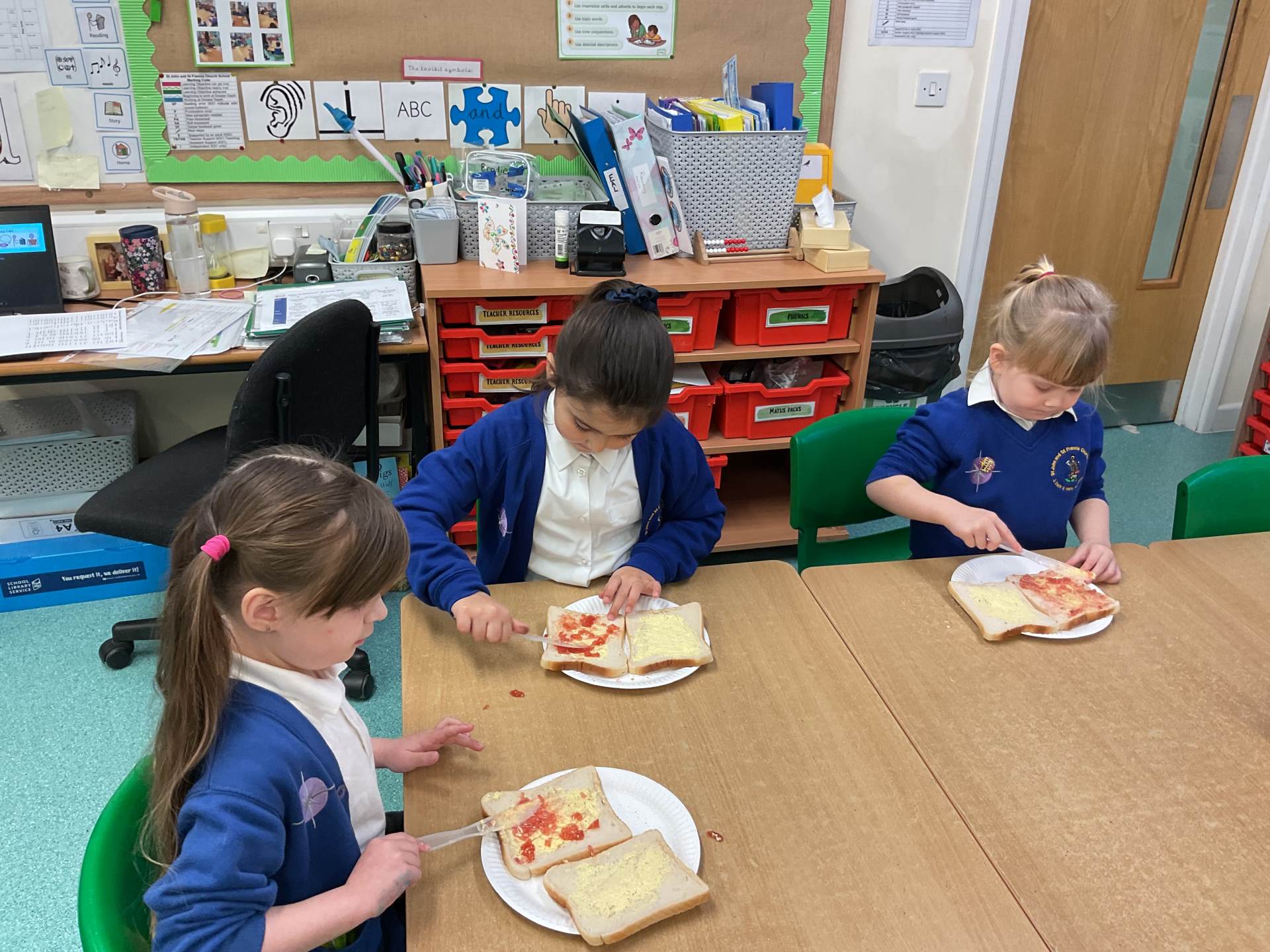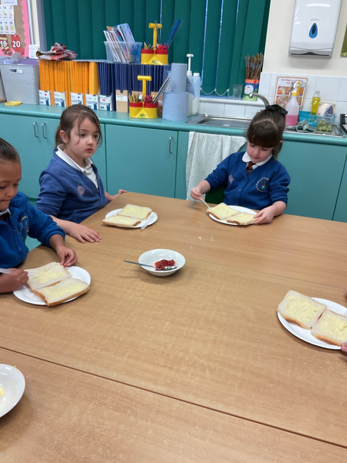 This morning in Sparrow class we have been thinking about healthy eating and how the different food groups support different parts of our bodies. We then made our own fruit kebabs. They tasted delicious. We also engaged in a range of healthy eating activities.