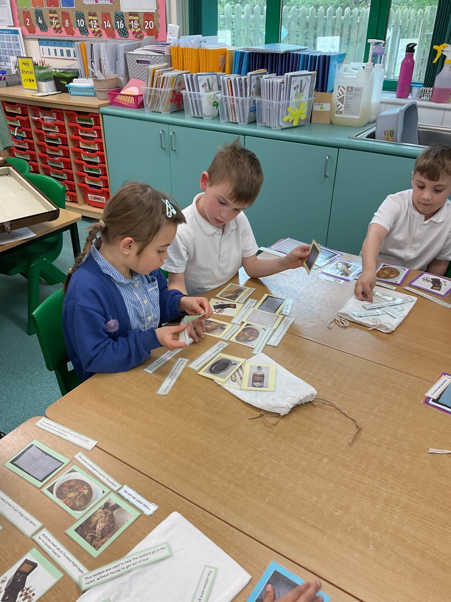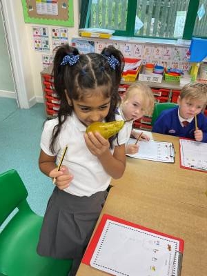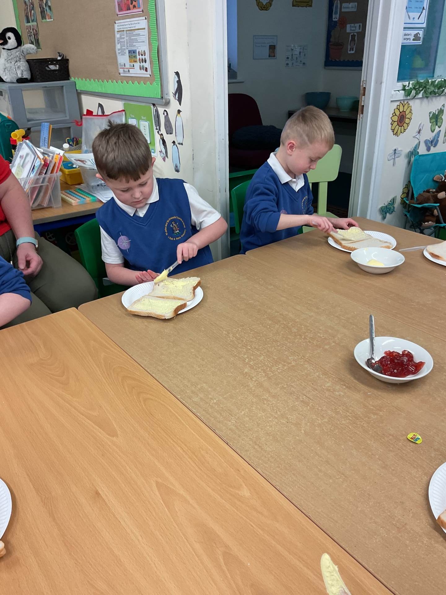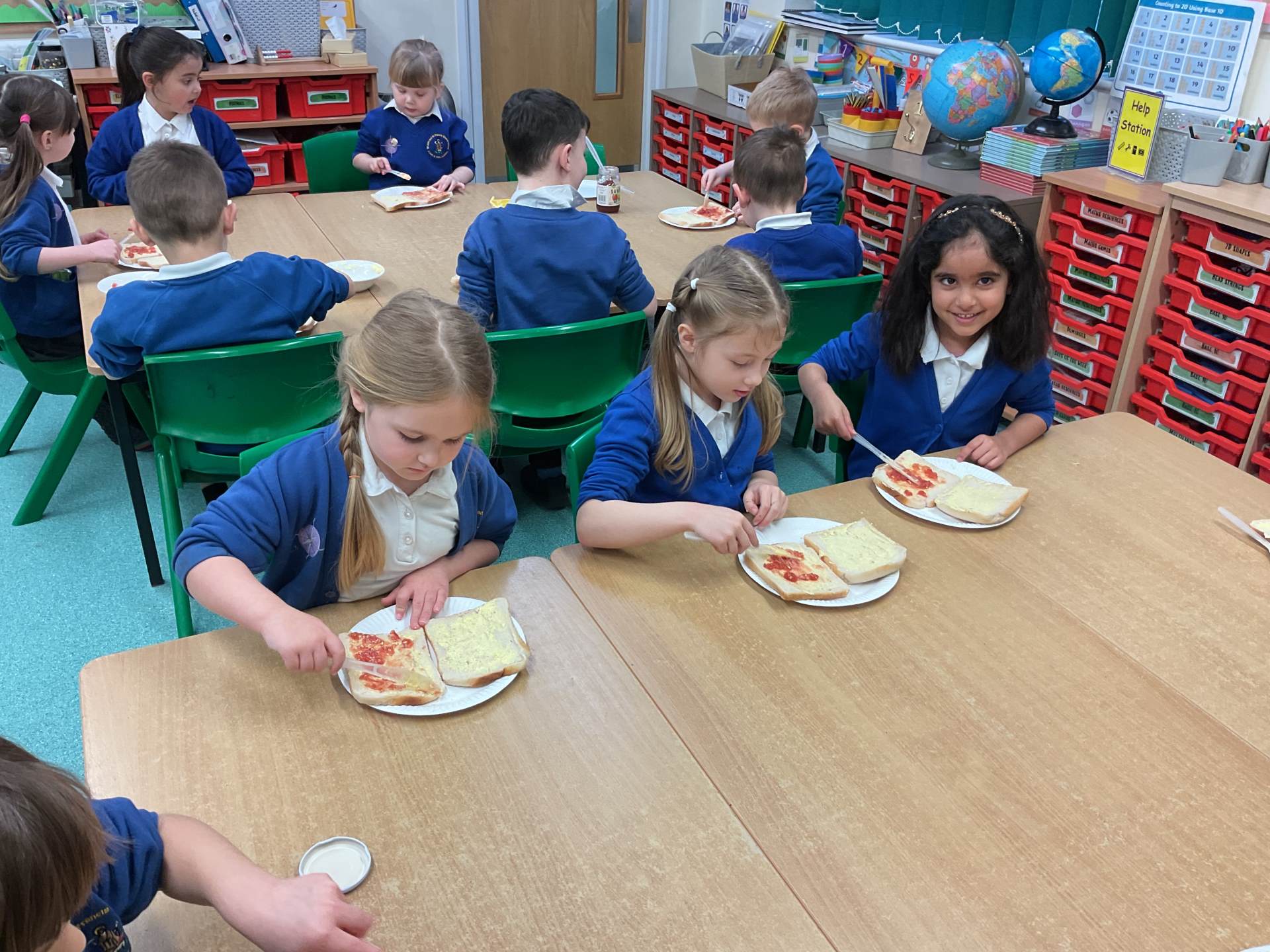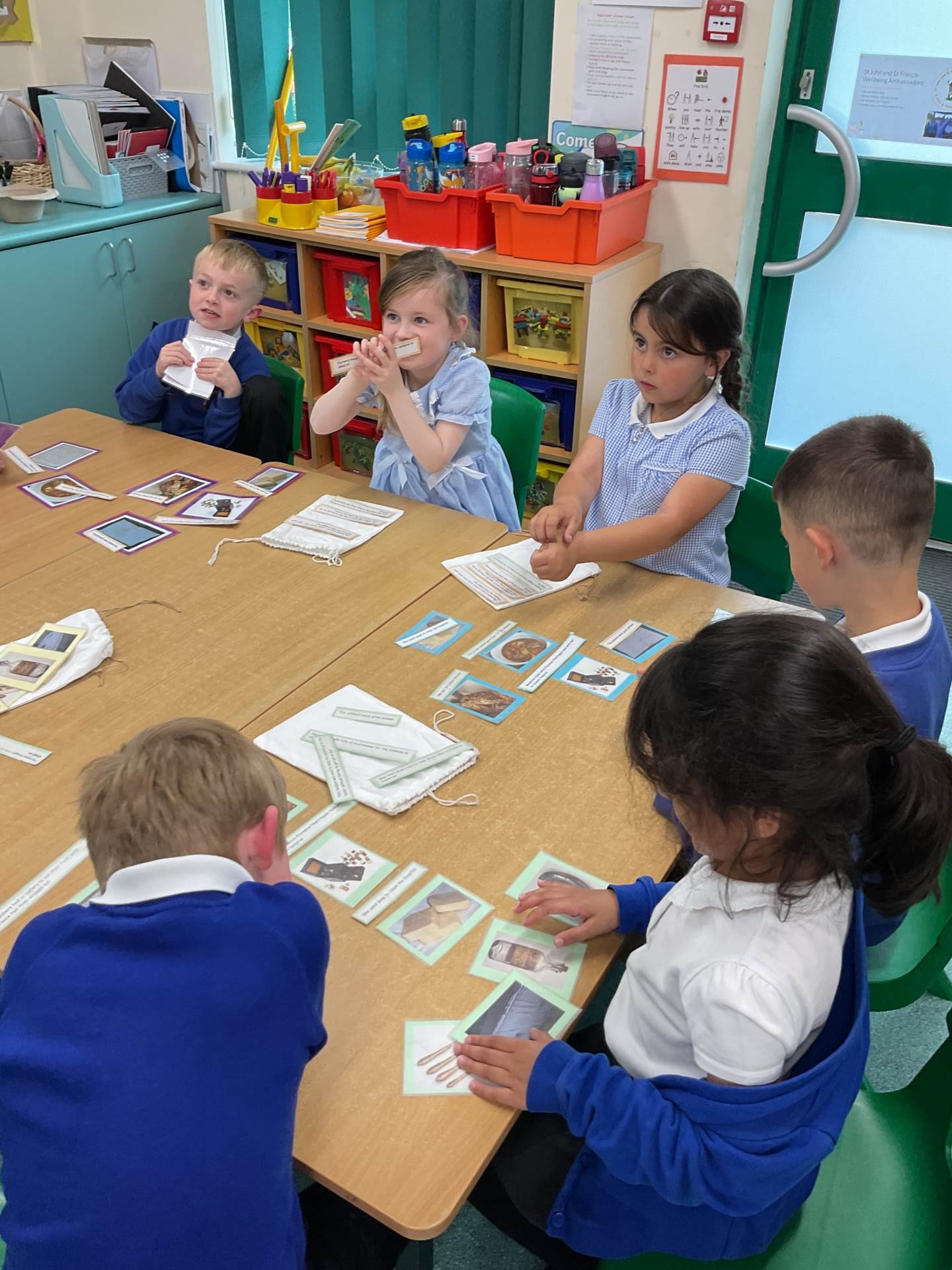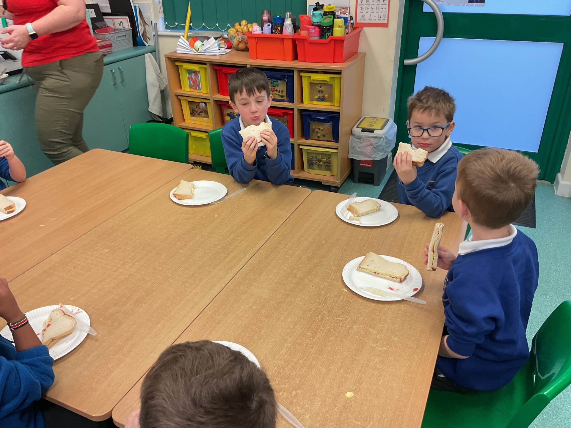 This morning in Sparrow class we have been thinking about healthy eating and how the different food groups support different parts of our bodies. We then made our own fruit kebabs. They tasted delicious. We also engaged in a range of healthy eating activities.