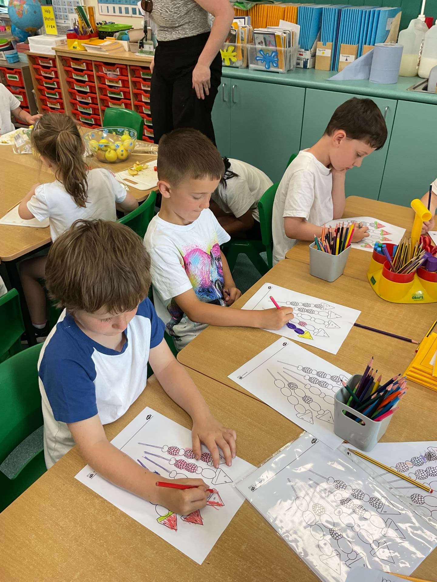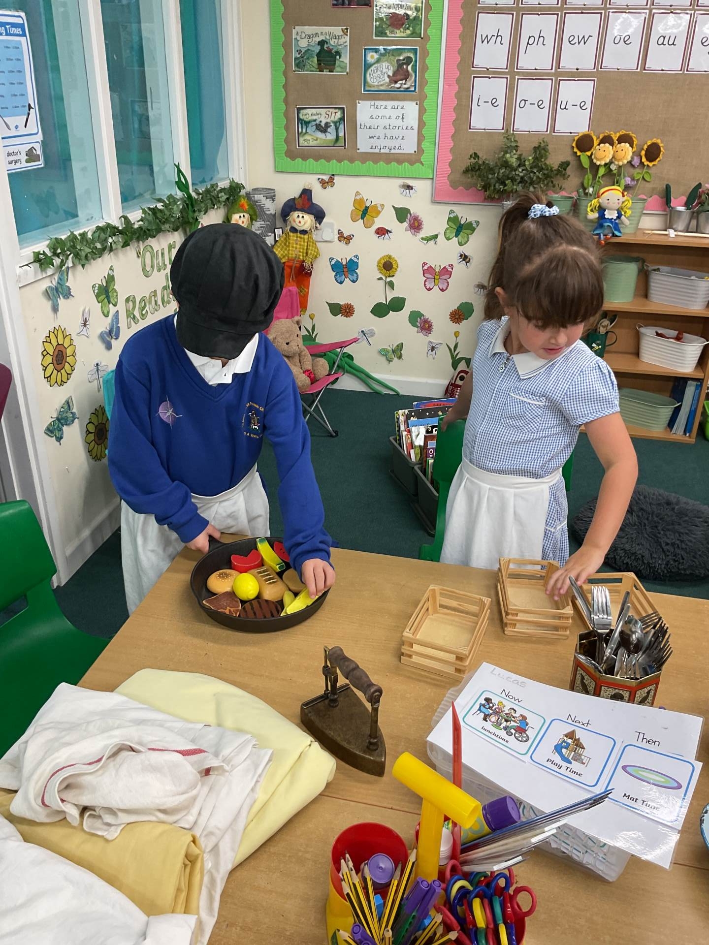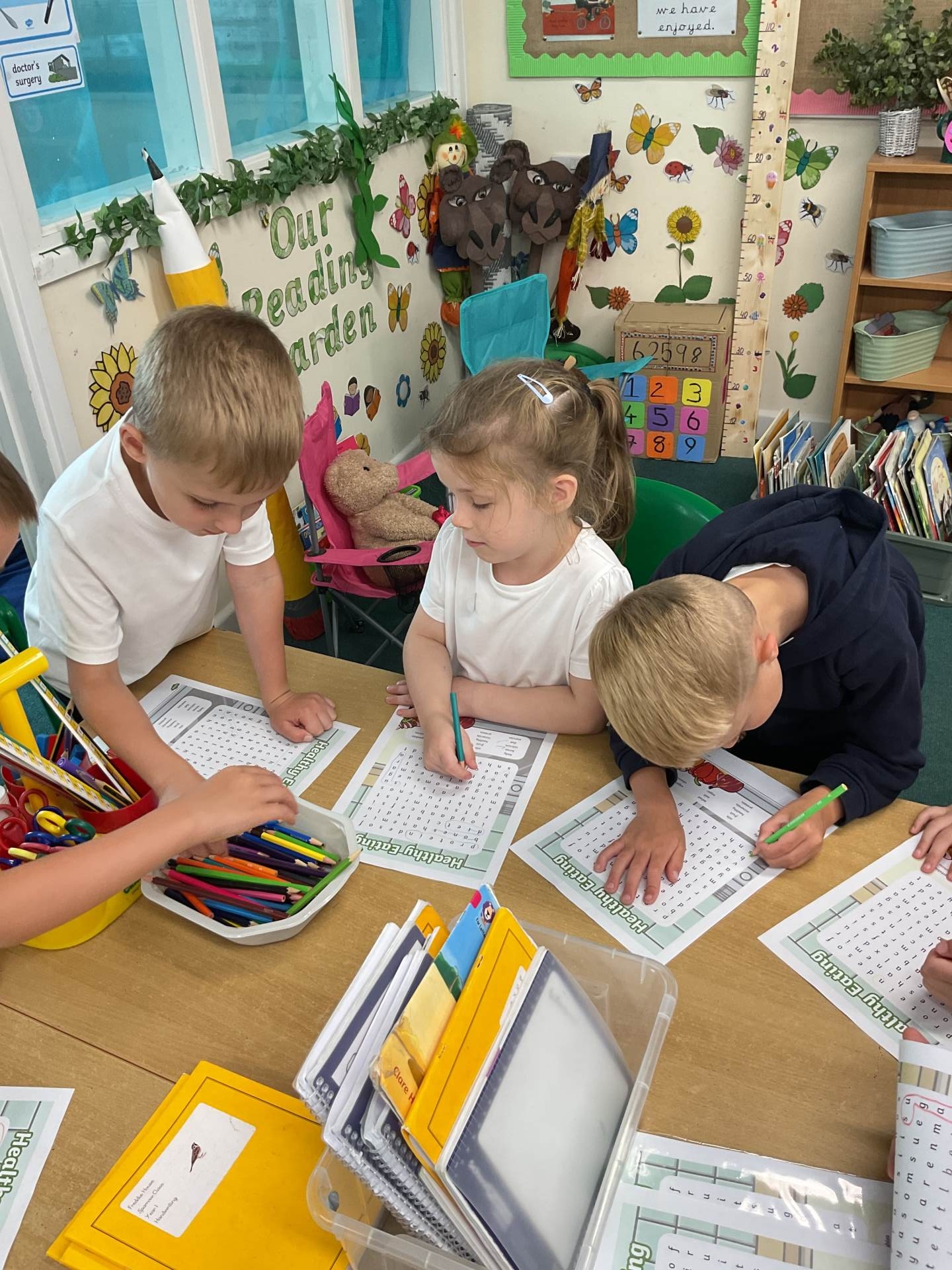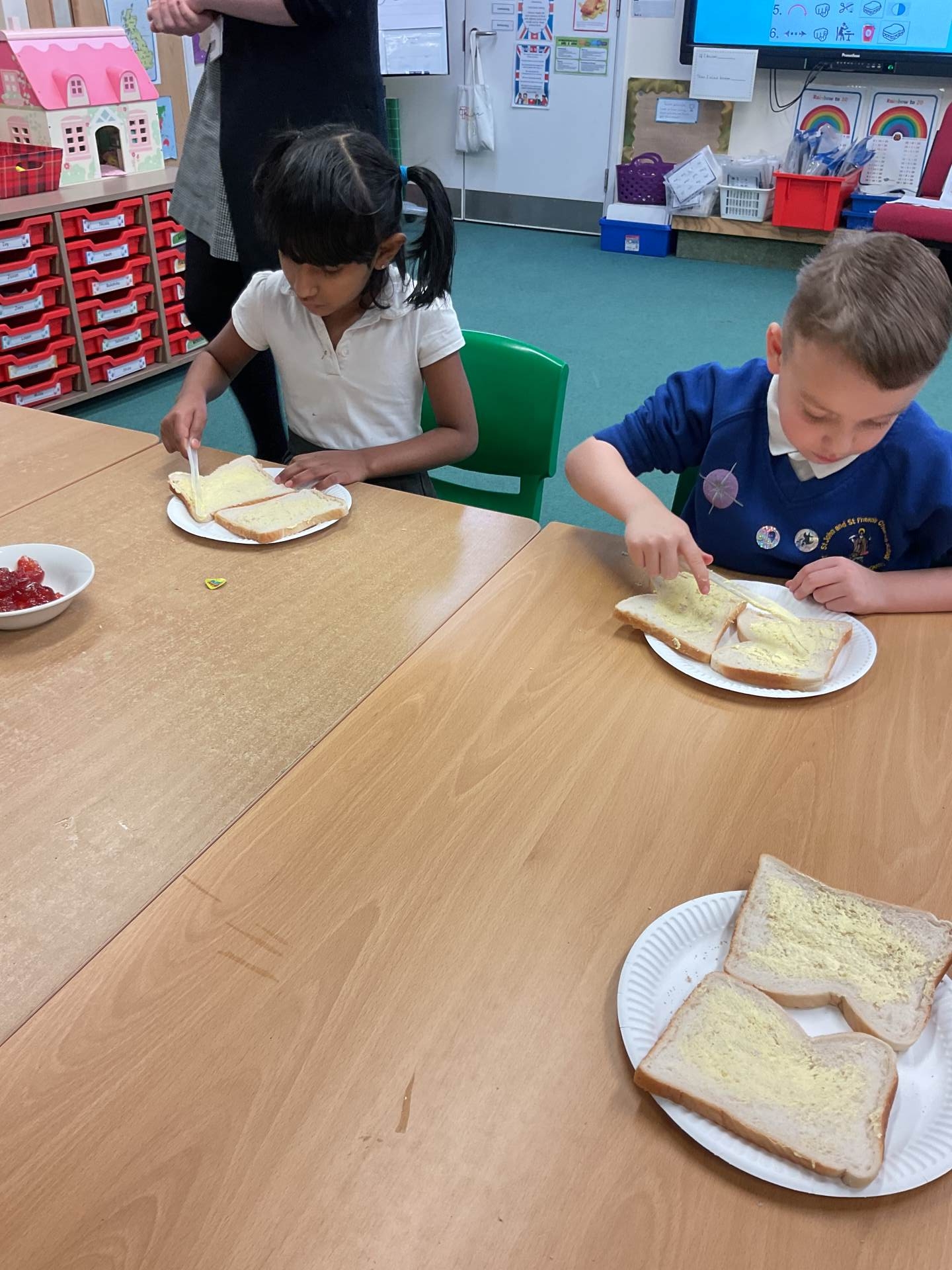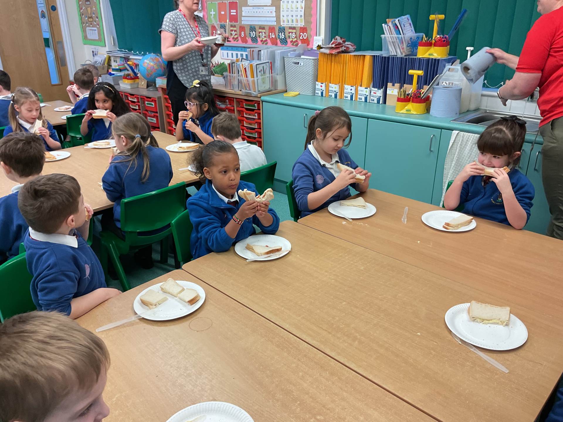 This morning in Sparrow class we have been thinking about healthy eating and how the different food groups support different parts of our bodies. We then made our own fruit kebabs. They tasted delicious. We also engaged in a range of healthy eating activities.
