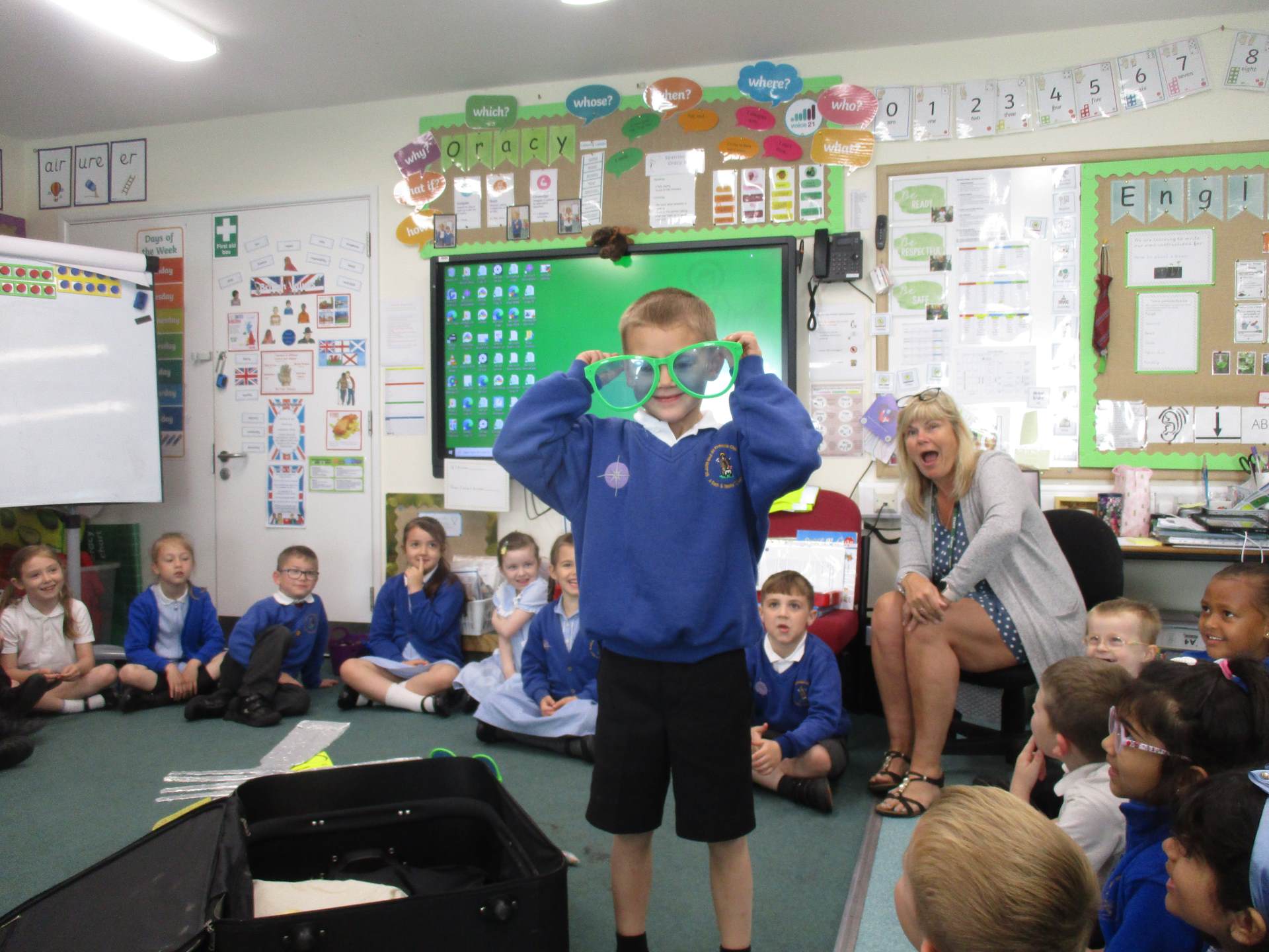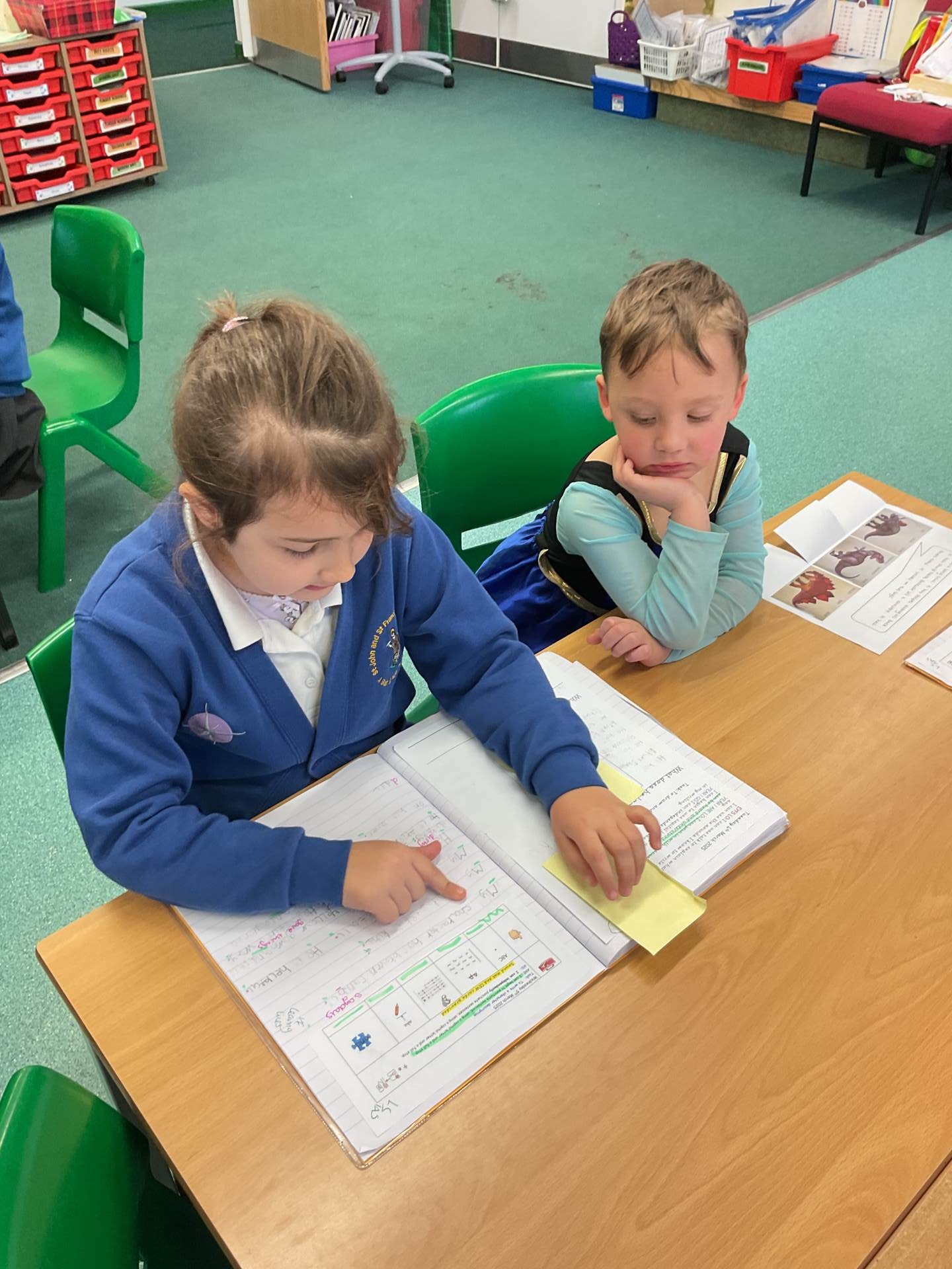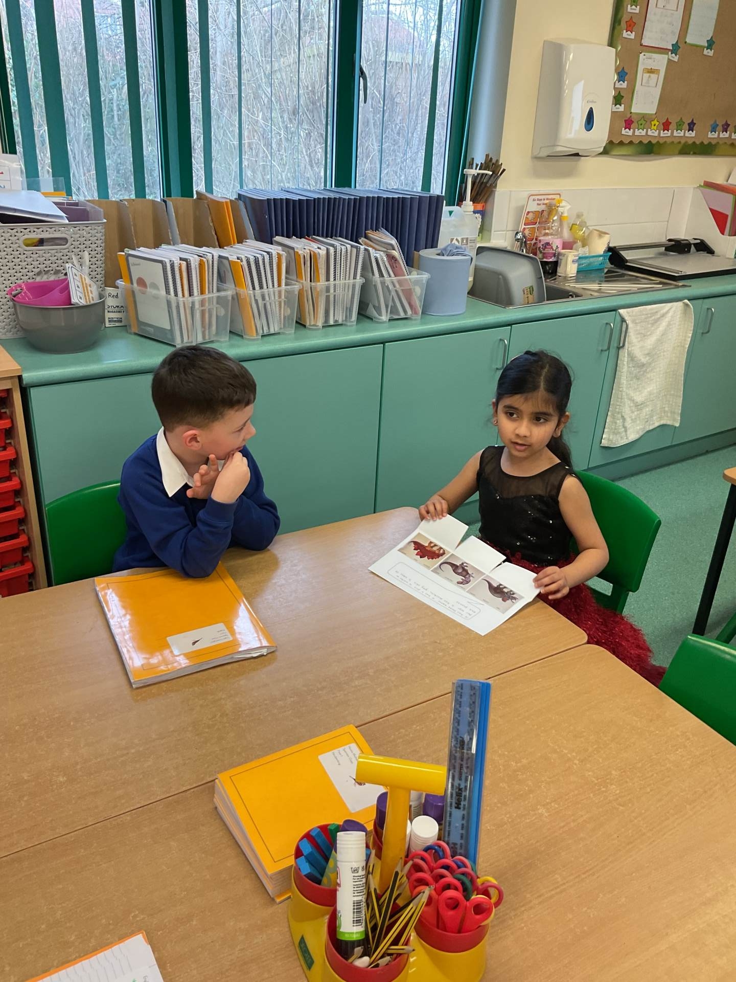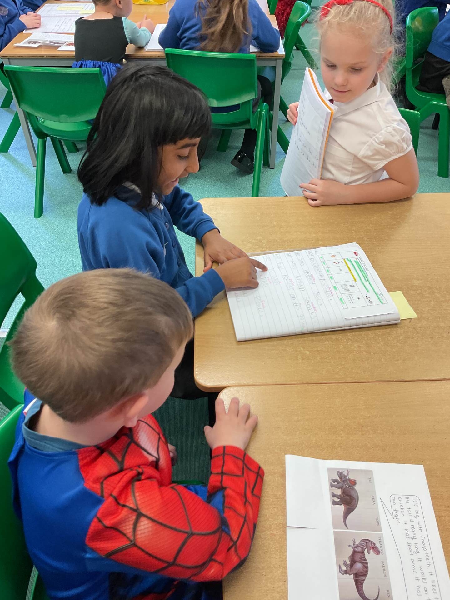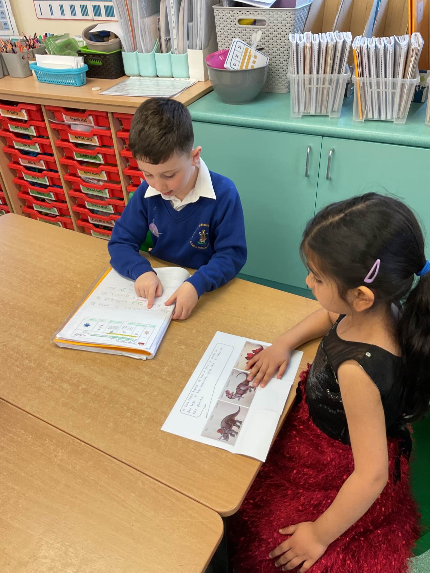 As part of our Oracy focus we have been looking at character descriptions across the school. In year 1 we focussed on George the giant in the story of The Smartest Giant in Town. We either described George before he got his lovely new smart clothes or after when he was really proud of how he looked. Today we worked across KS1 and EYFS and had the chance to read our descriptions to the other children and to see if they could guess which George we were describing. We also had the chance to listen to EYFS's descriptions of different dinosaurs and Year 2's descriptions of either a goat or a troll from the story- The Three Billy Goats Gruff. What a lovely time we had visiting differnt classes and working with different children.