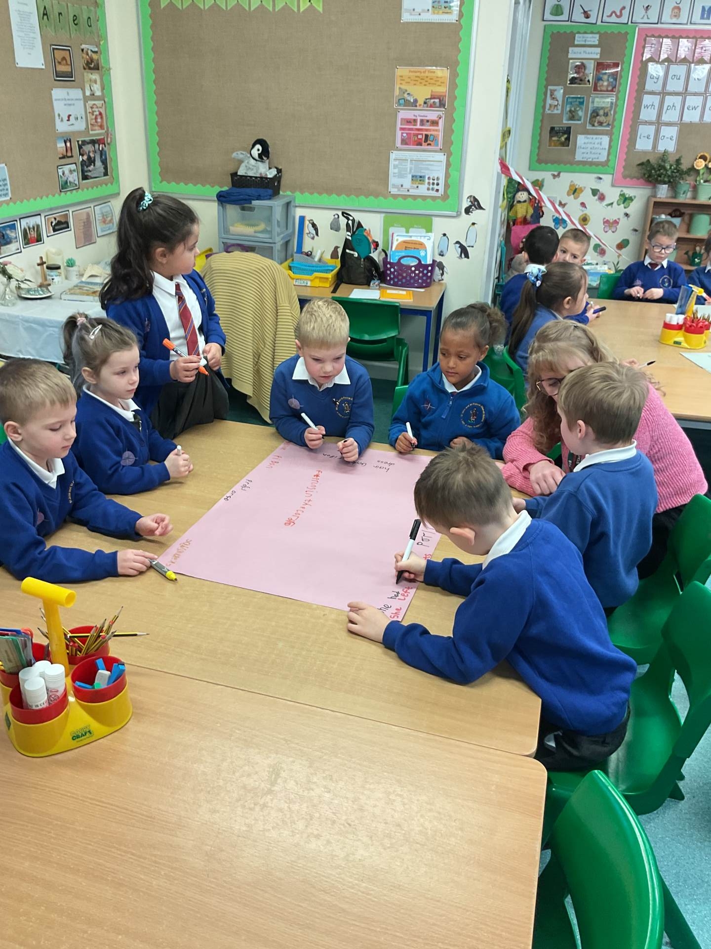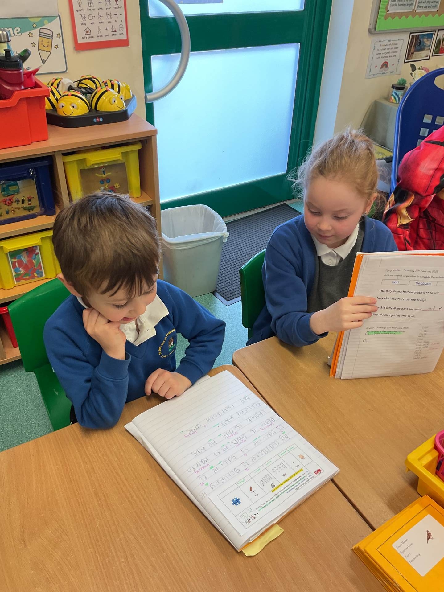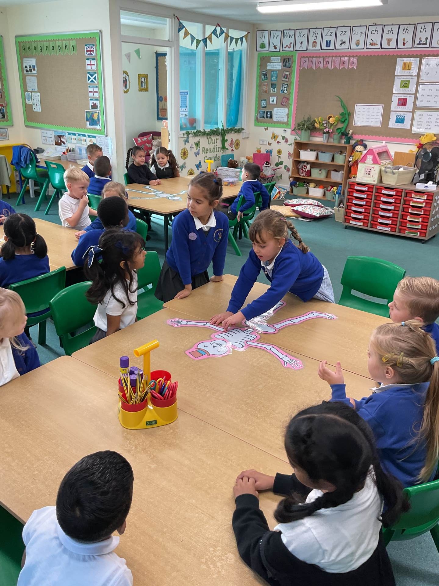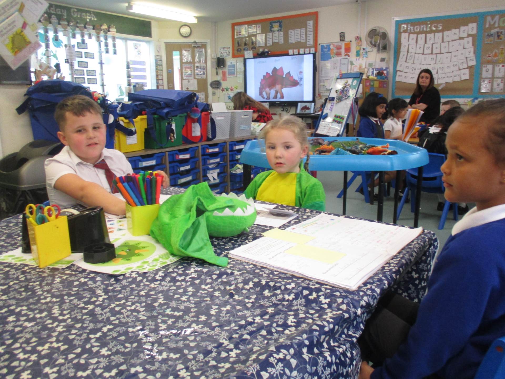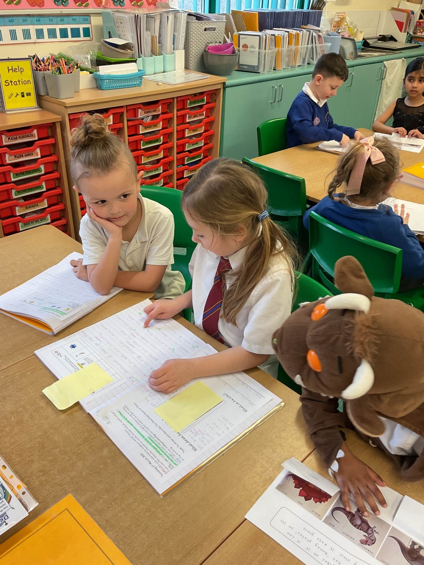 As part of our Oracy focus we have been looking at character descriptions across the school. In year 1 we focussed on George the giant in the story of The Smartest Giant in Town. We either described George before he got his lovely new smart clothes or after when he was really proud of how he looked. Today we worked across KS1 and EYFS and had the chance to read our descriptions to the other children and to see if they could guess which George we were describing. We also had the chance to listen to EYFS's descriptions of different dinosaurs and Year 2's descriptions of either a goat or a troll from the story- The Three Billy Goats Gruff. What a lovely time we had visiting differnt classes and working with different children.